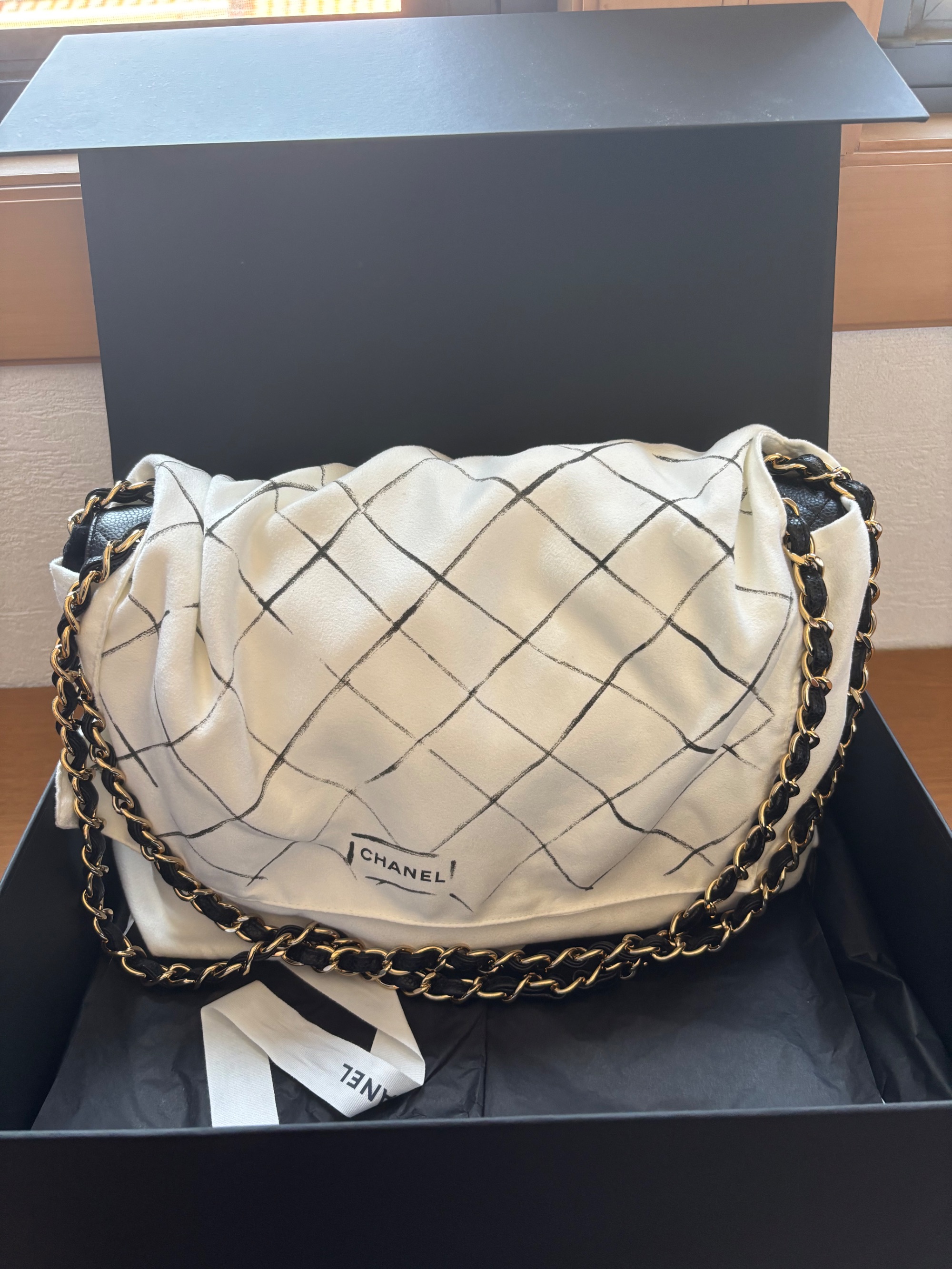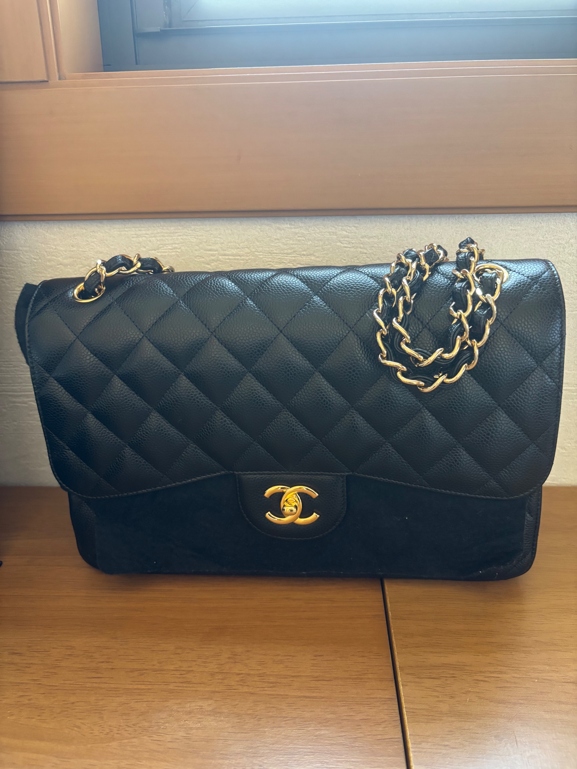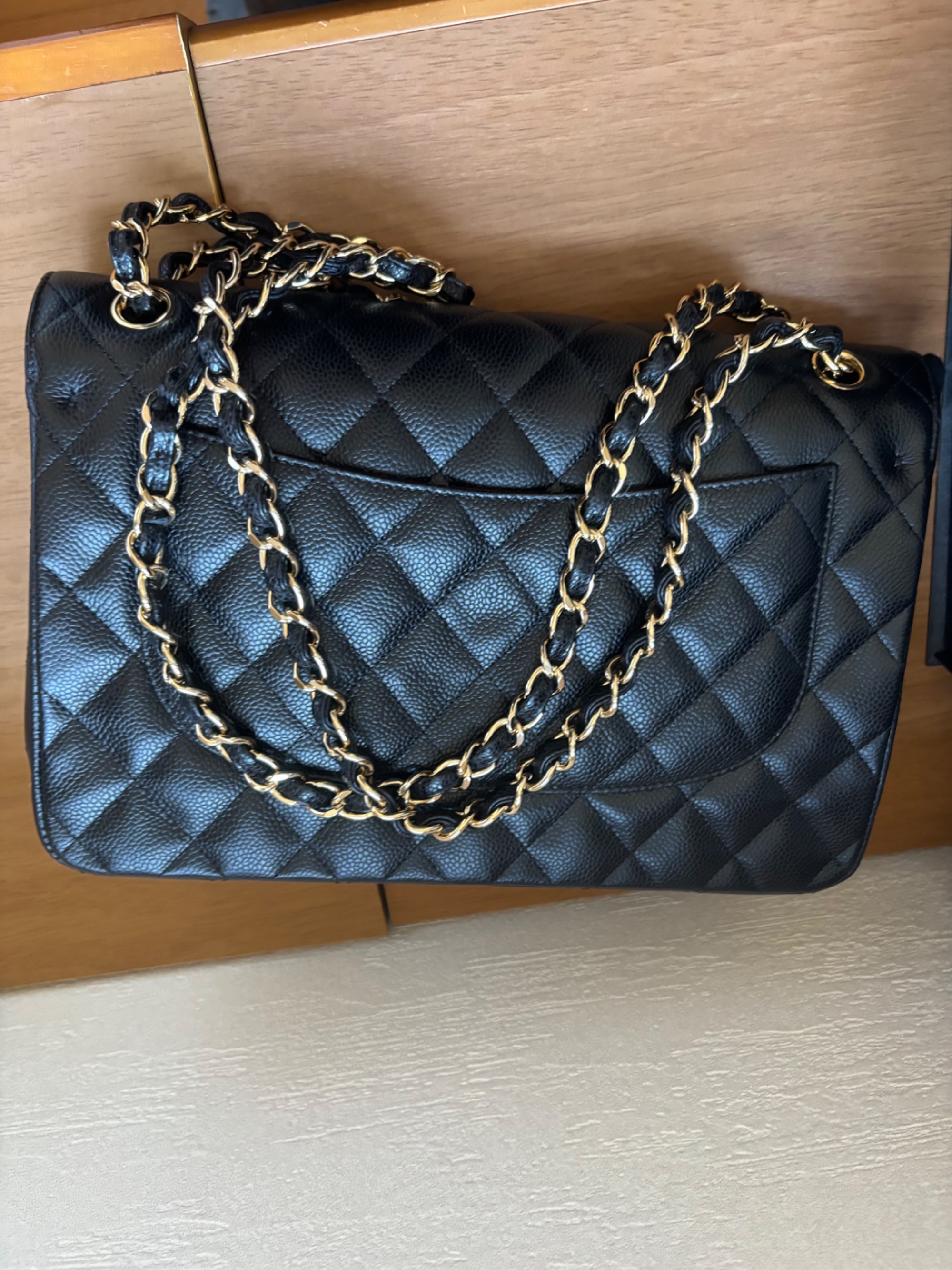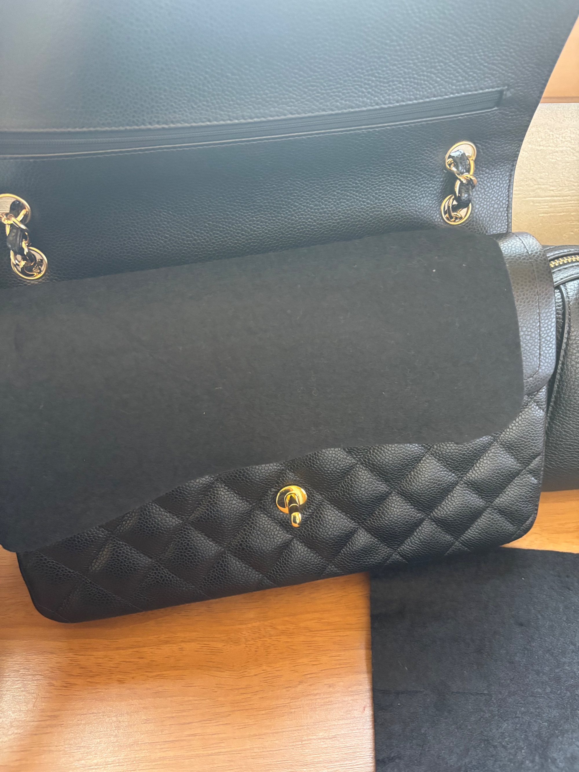 シャネル デカマトラッセ Wフラップ ショルダーバッグ 黒 キャビアスキン A5