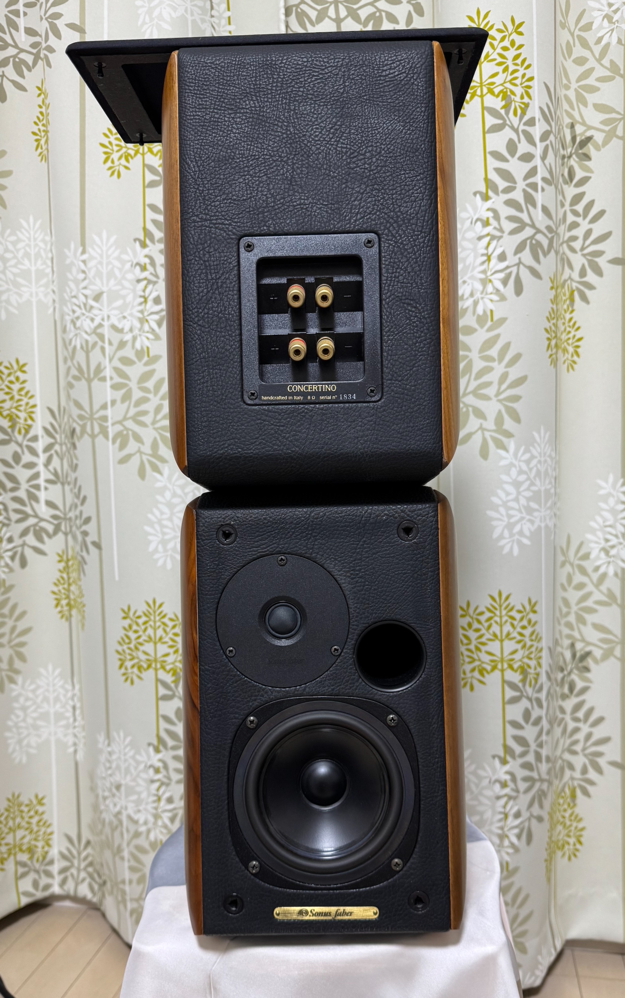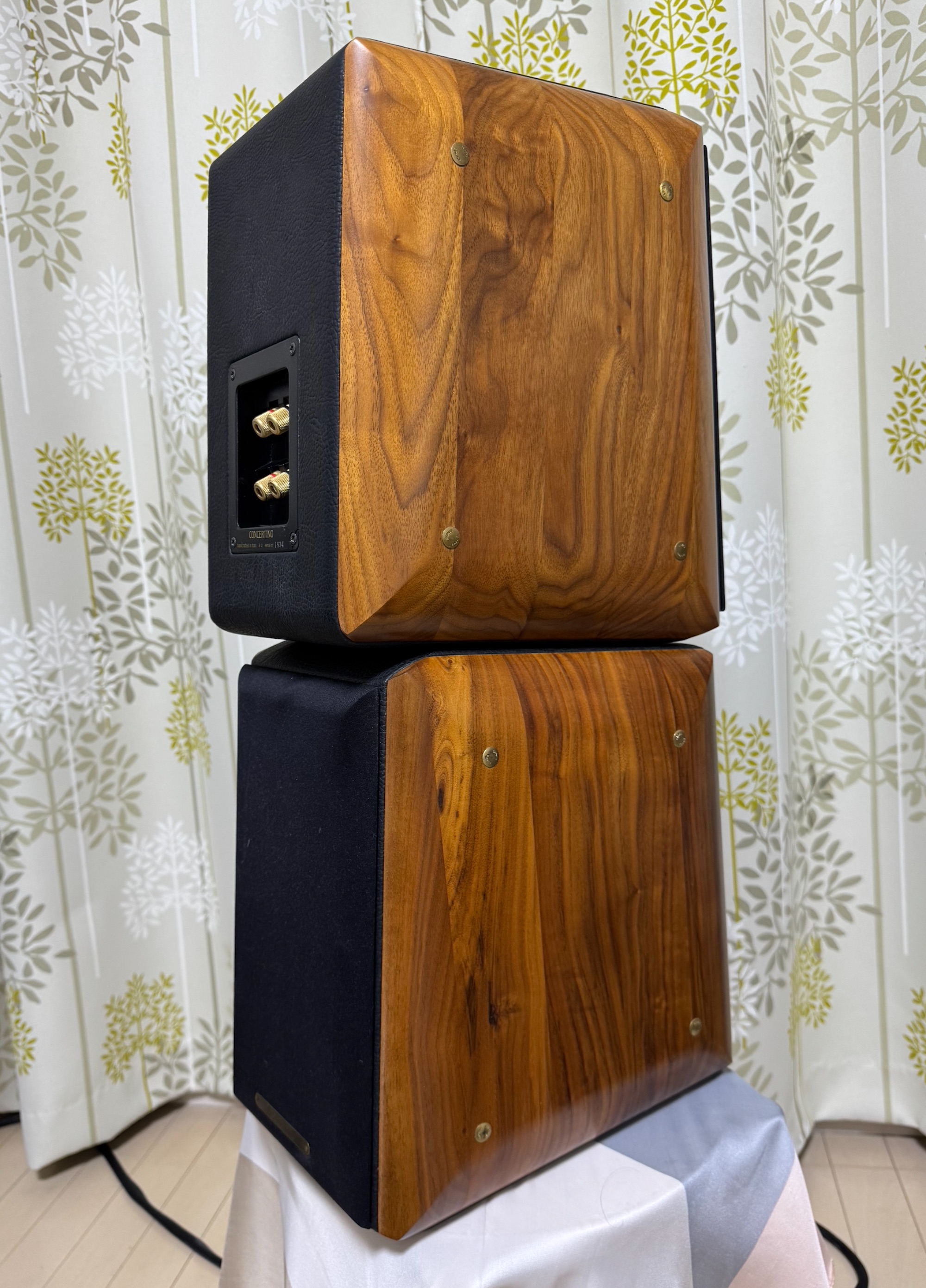 付属品はありません。購入時期は25年前ではないでしょうか。型番は写真でわかること以上はありません、完全にイタリア製のConcertino。説明書はありません。商品状態は数週間前まで現役で使っており、あまりにいい音でなるため、マンションの近所遠慮して、かなり小型の安いスピーカに変えました。音はイ...