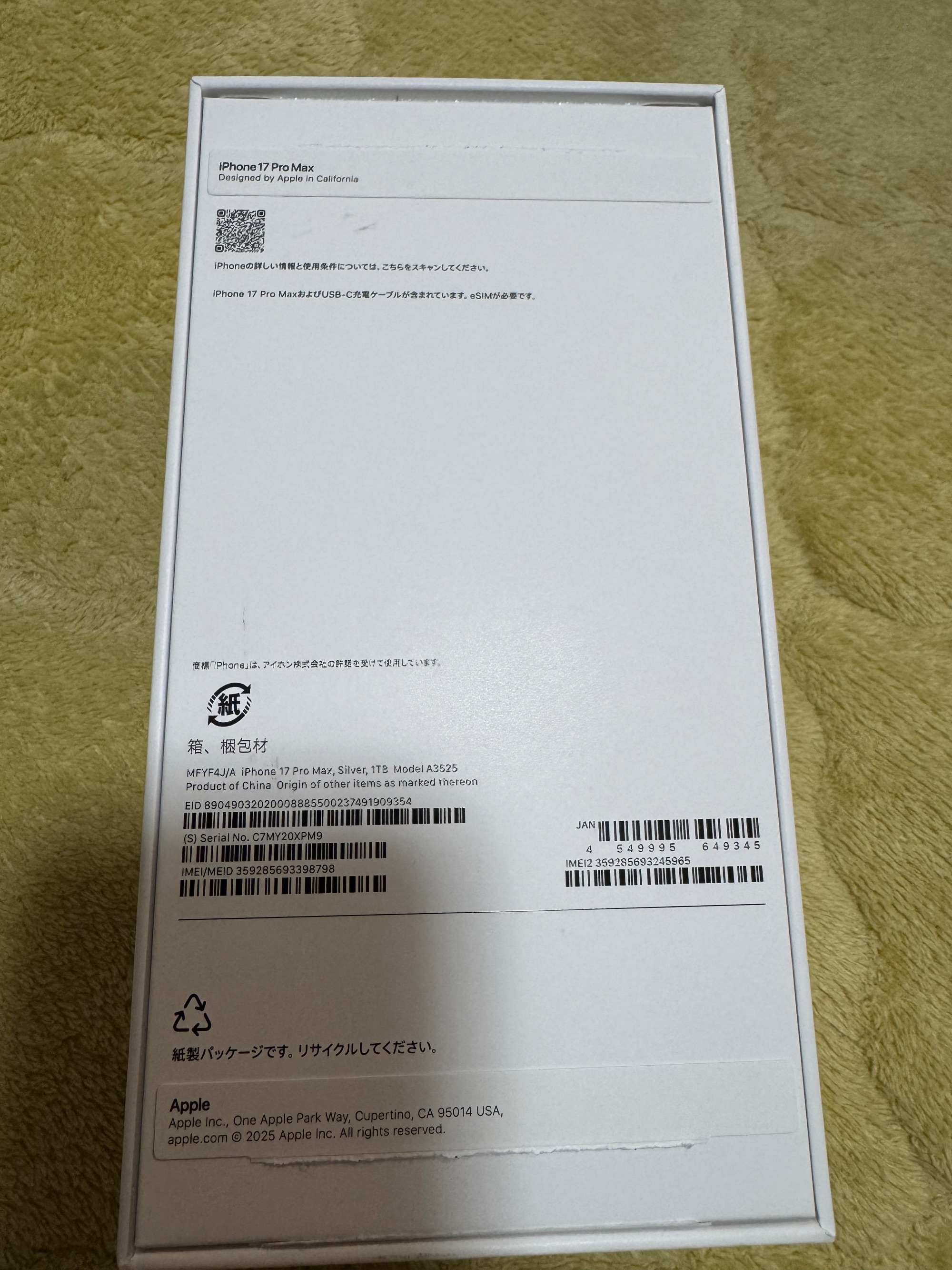その際、傷の確認のため箱のテープを剥がしています。