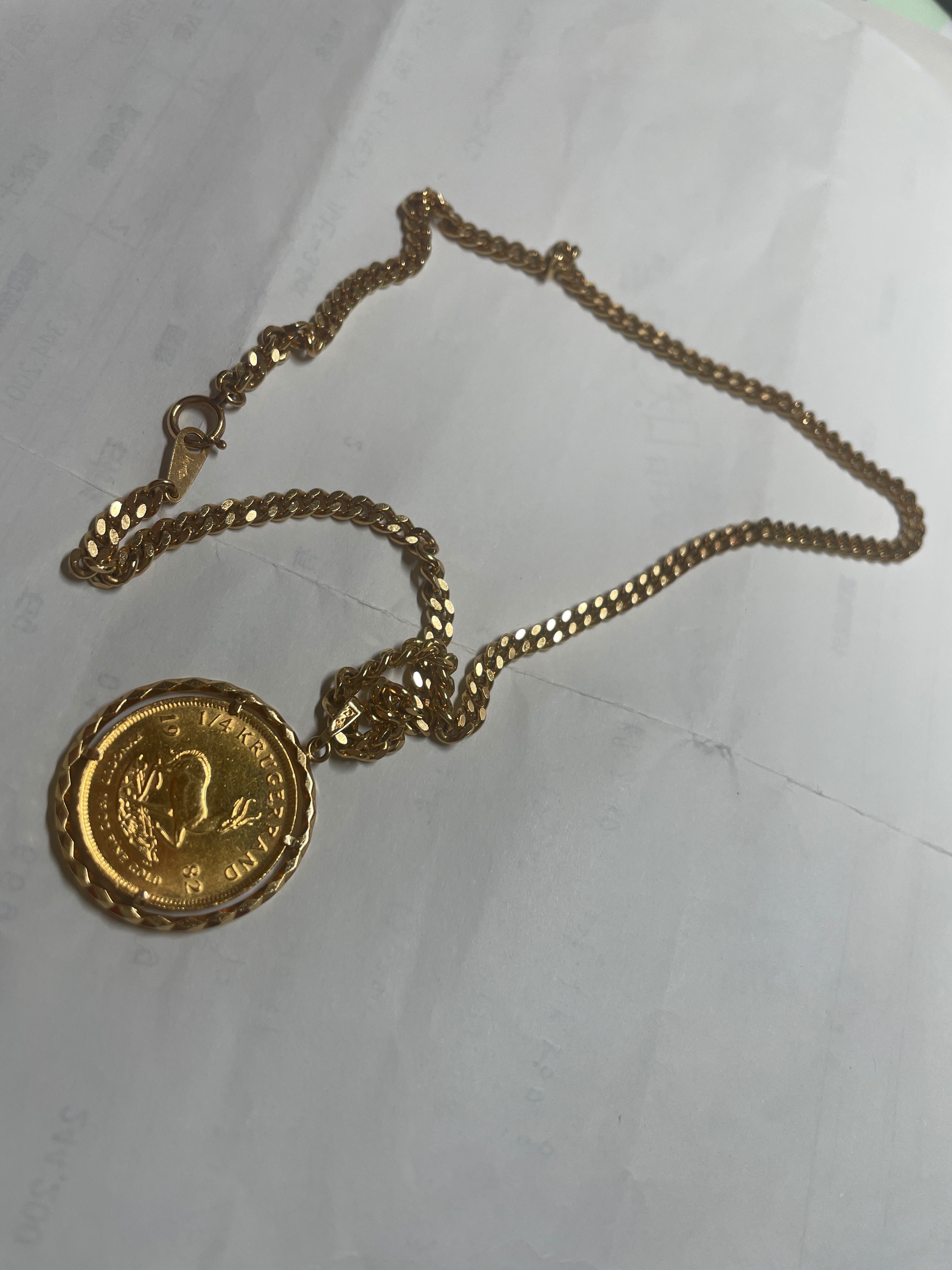 クルーガーコイン1/4 oz8.4gと18金のノーブランドチェーン 22.3g