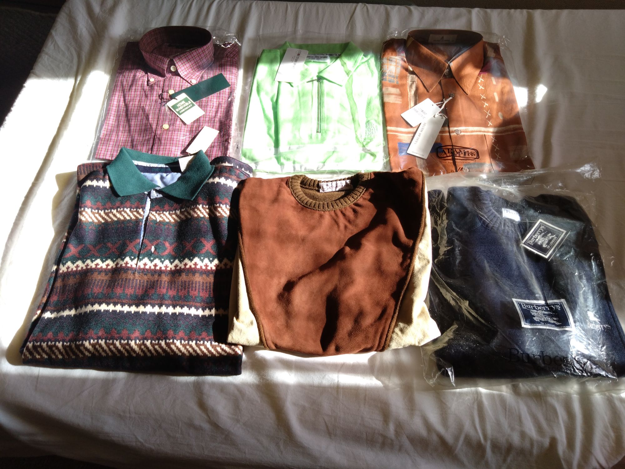セーター→バーバリーズ✕1、イタリア製✕1、ポロシャツ→アラミス✕1、セルッティ✕1、フィリピン製✕1、シャツスコッチハウス✕1 計6枚