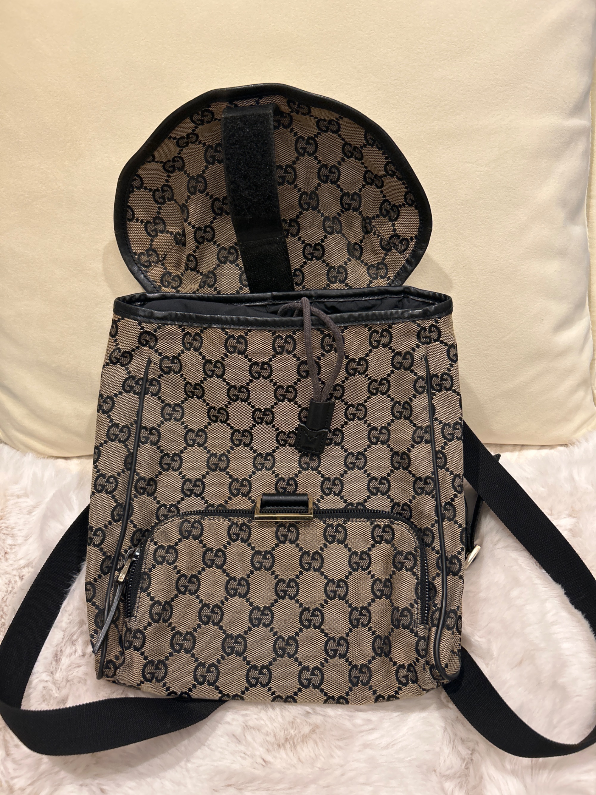 仕様:ベルクロ式開閉フラップ(内側巾着式) ・外側:ファスナー式ポケット×1 ・内側:ファスナー式ポケット×1
