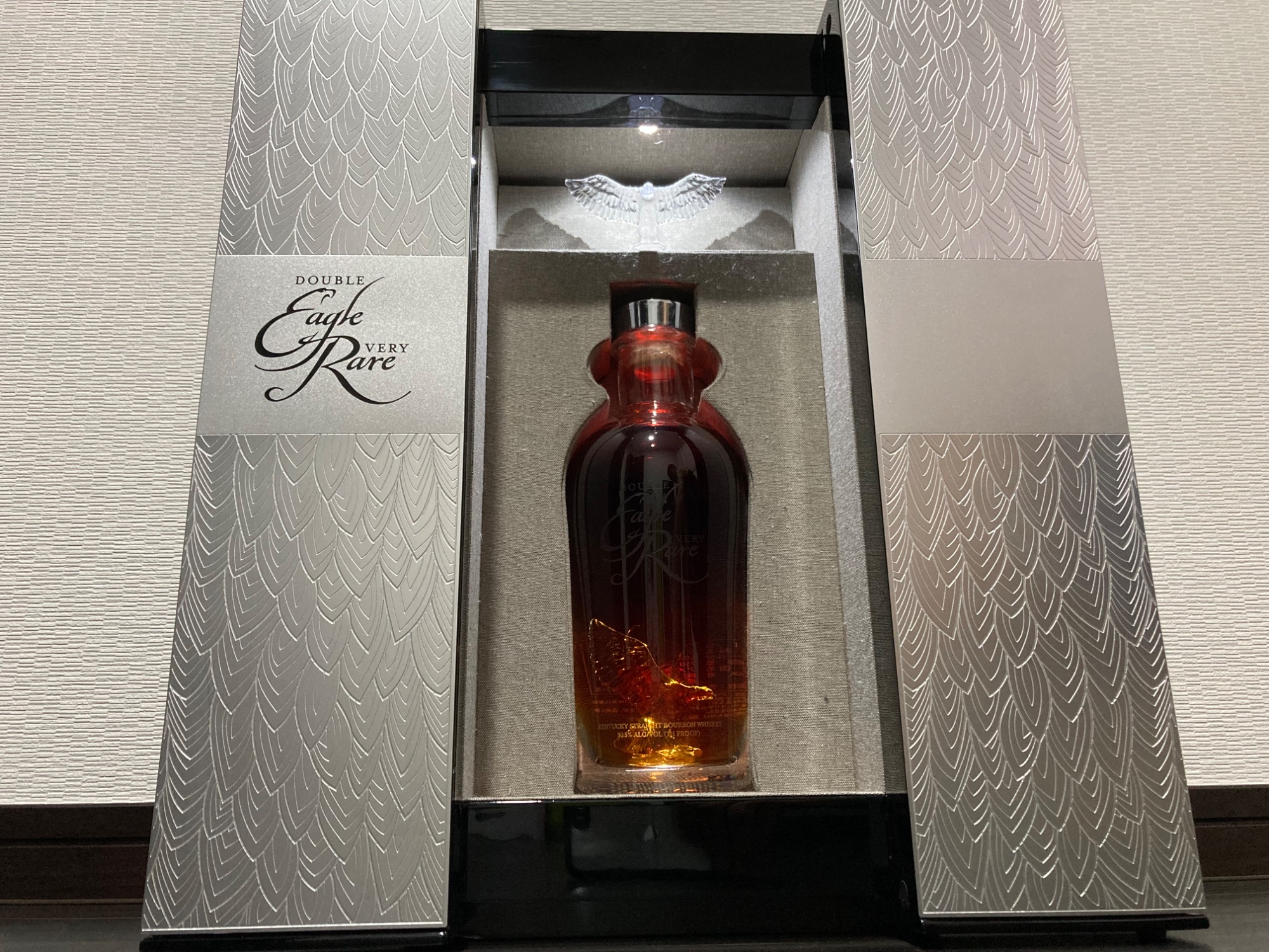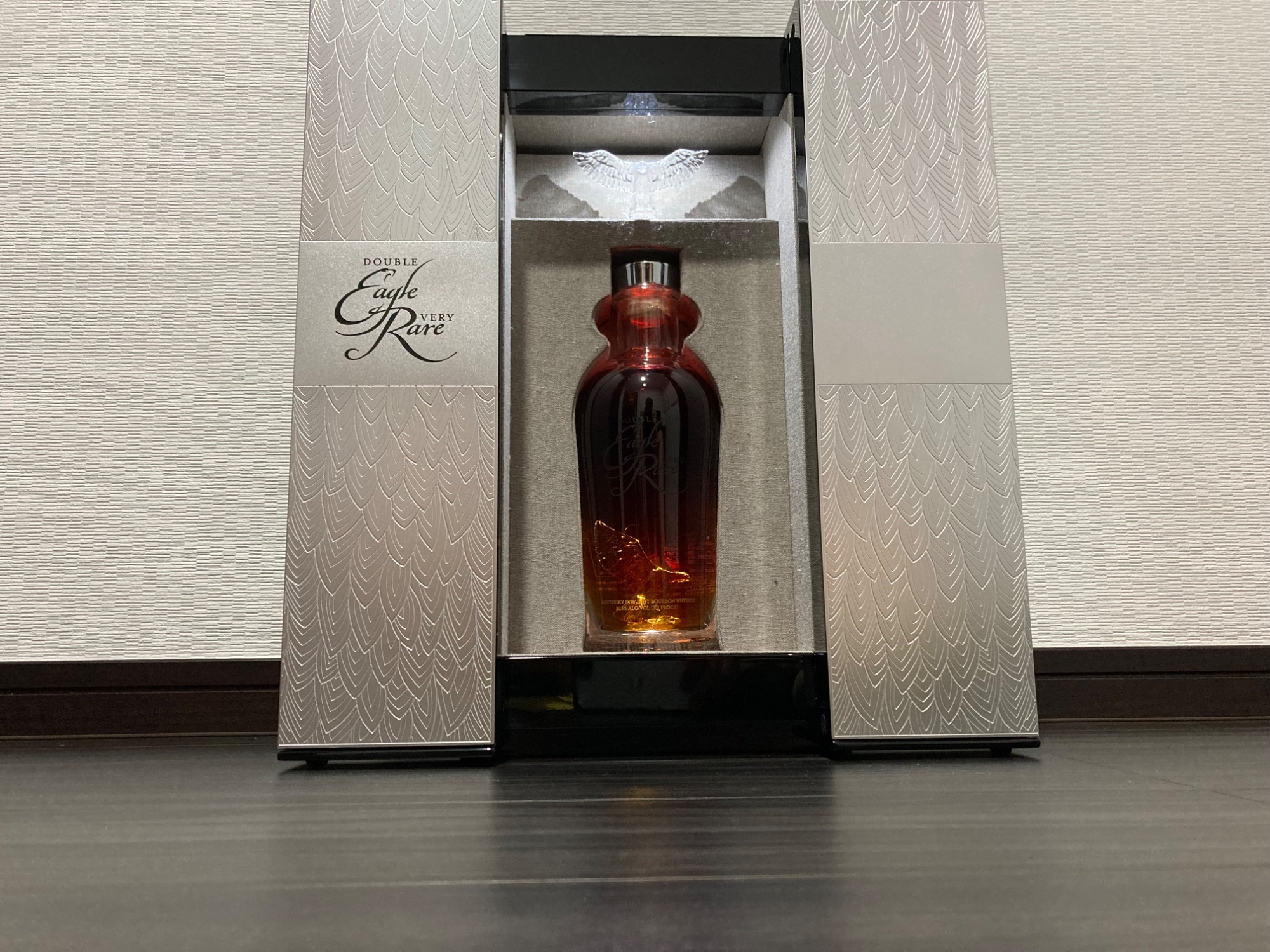 バッファロートレース蒸溜所にて造られる高級バーボンブランド「イーグルレア」。その中でも最高熟成年数となる20年熟成の銘柄がダブル・イーグル・ベリー・レアです。限定299本しか生産されていない超稀少な銘柄で、クリスタルガラス製のデカンタの中には、同ブランドのアイコンである鷲の彫刻が施されていると...