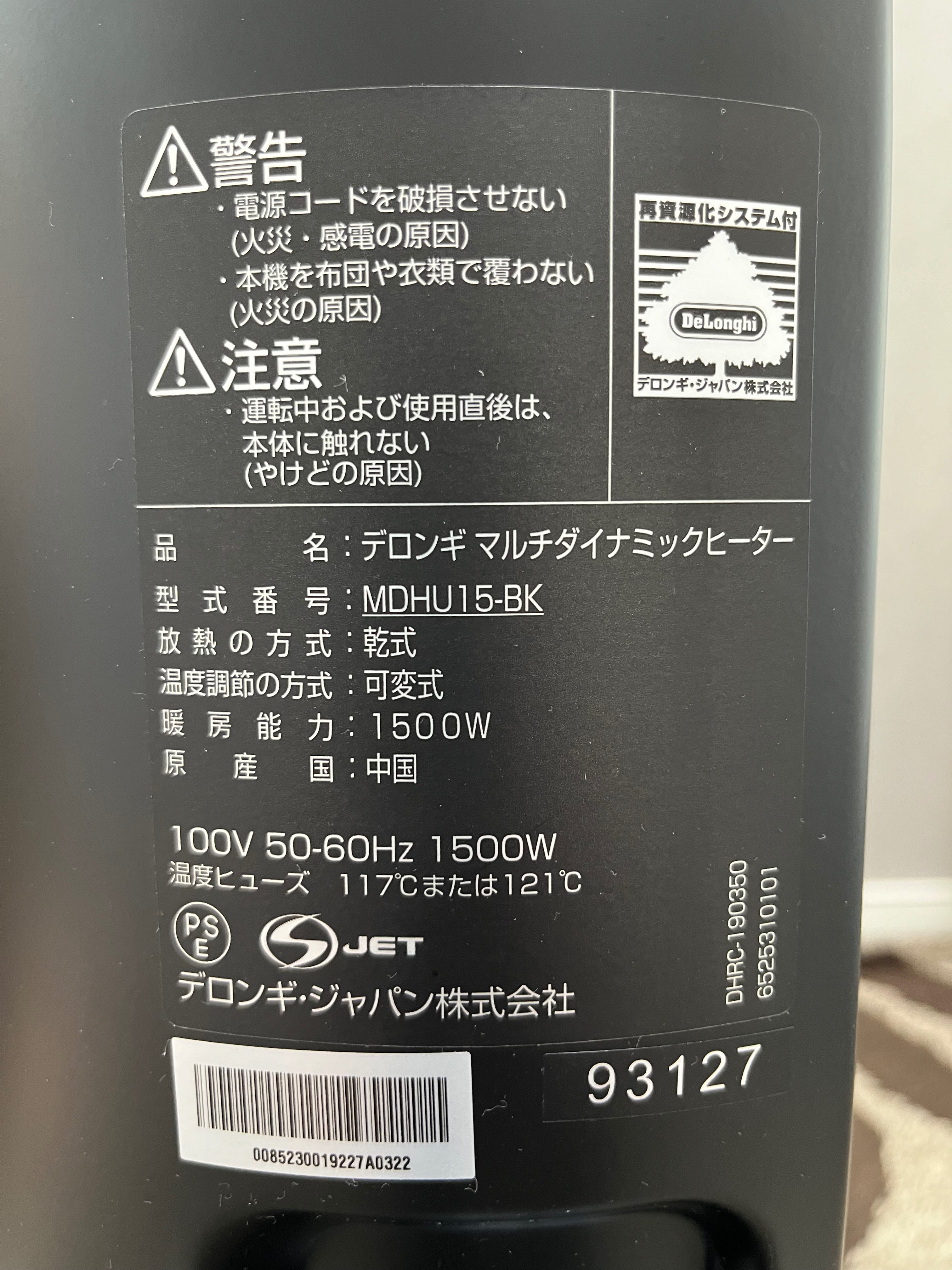 デロンギマルチダイナミックヒーター MDHU15BK