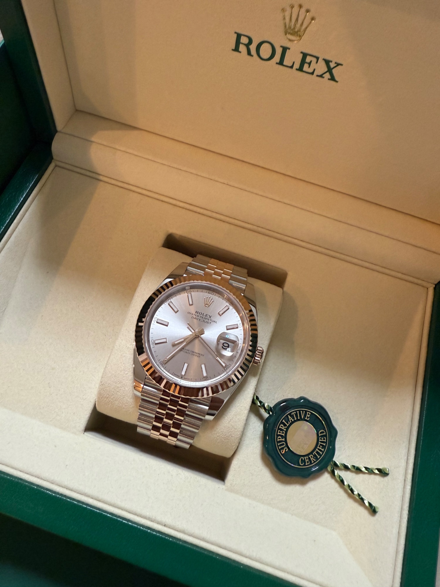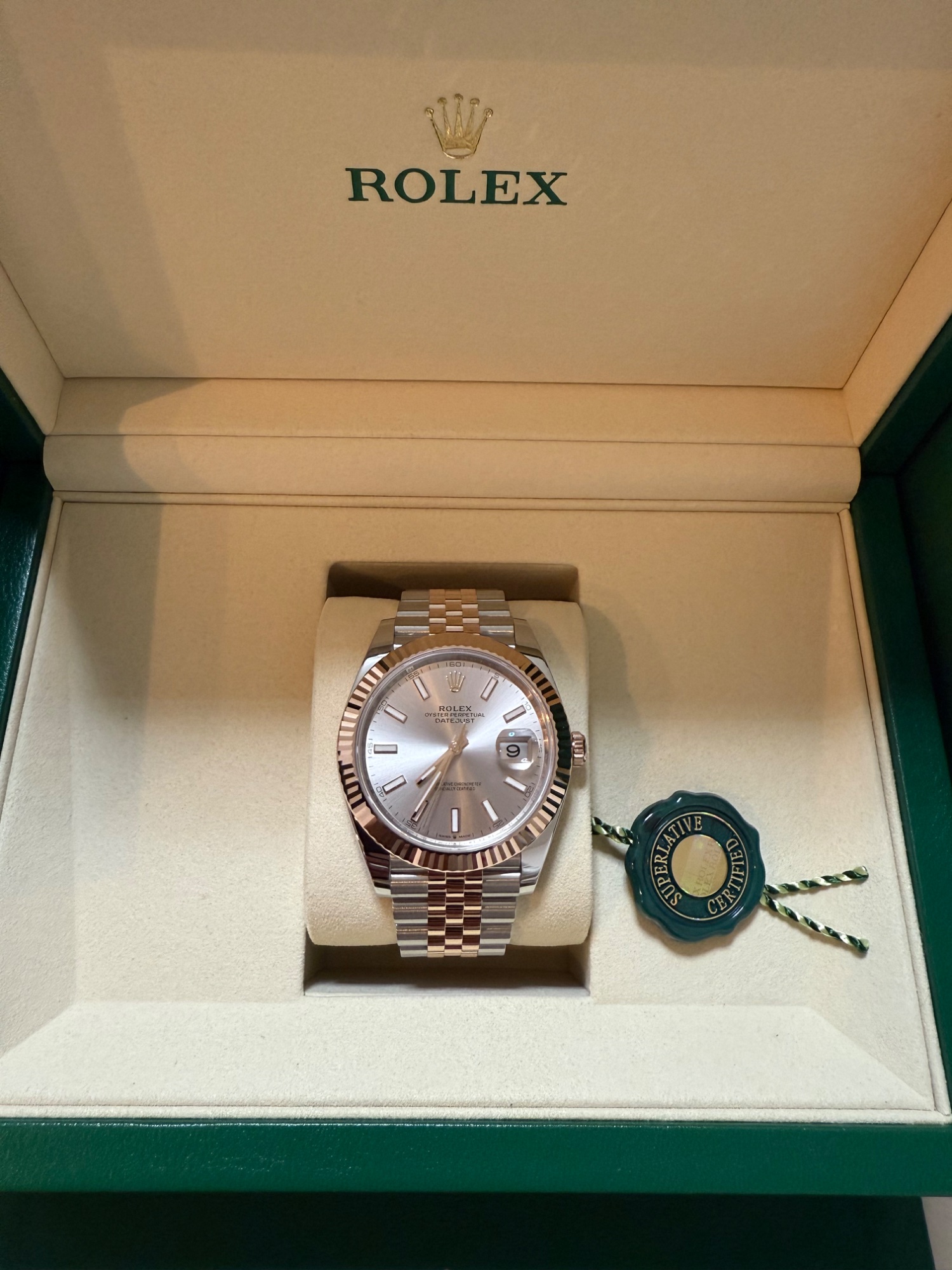 デイトジャスト41m コンビ エバーローズゴールド サンダスト文字盤