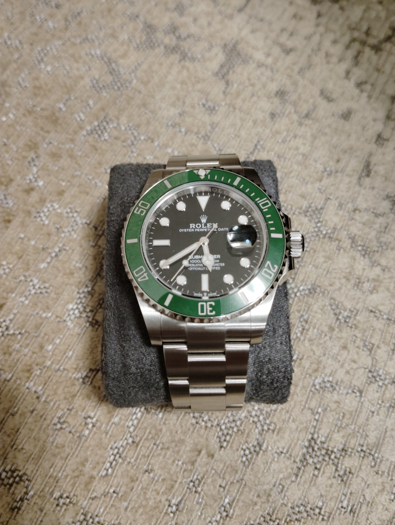 新型グリーンサブ 箱、保証書などすべての付属品あり 細かい線キズあり 2024年3月 ロレックス銀座並木通店にて購入