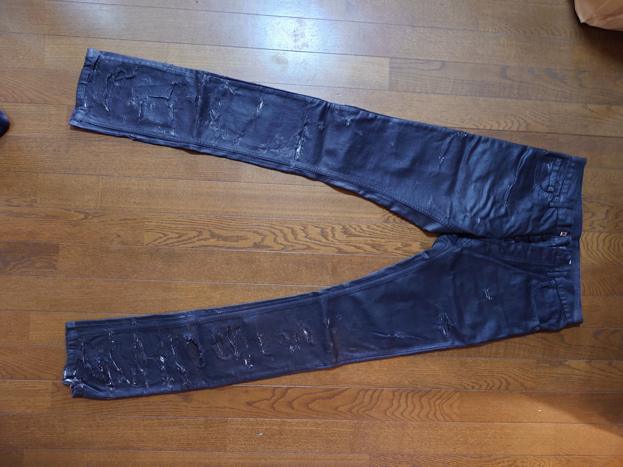 ブランド名: Dior HOMME アイテム名: デストロイコーティングデニムパンツブラック4EH1018686 サイズ: 29インチ コンディション: 新品同様(試着程度のみ)