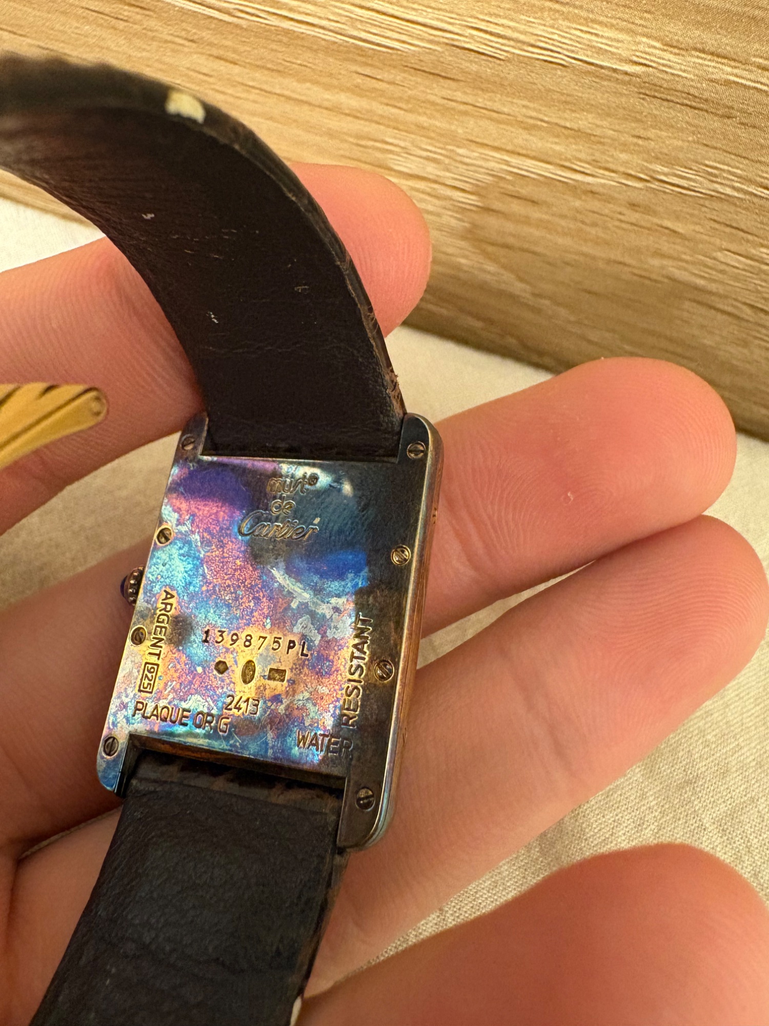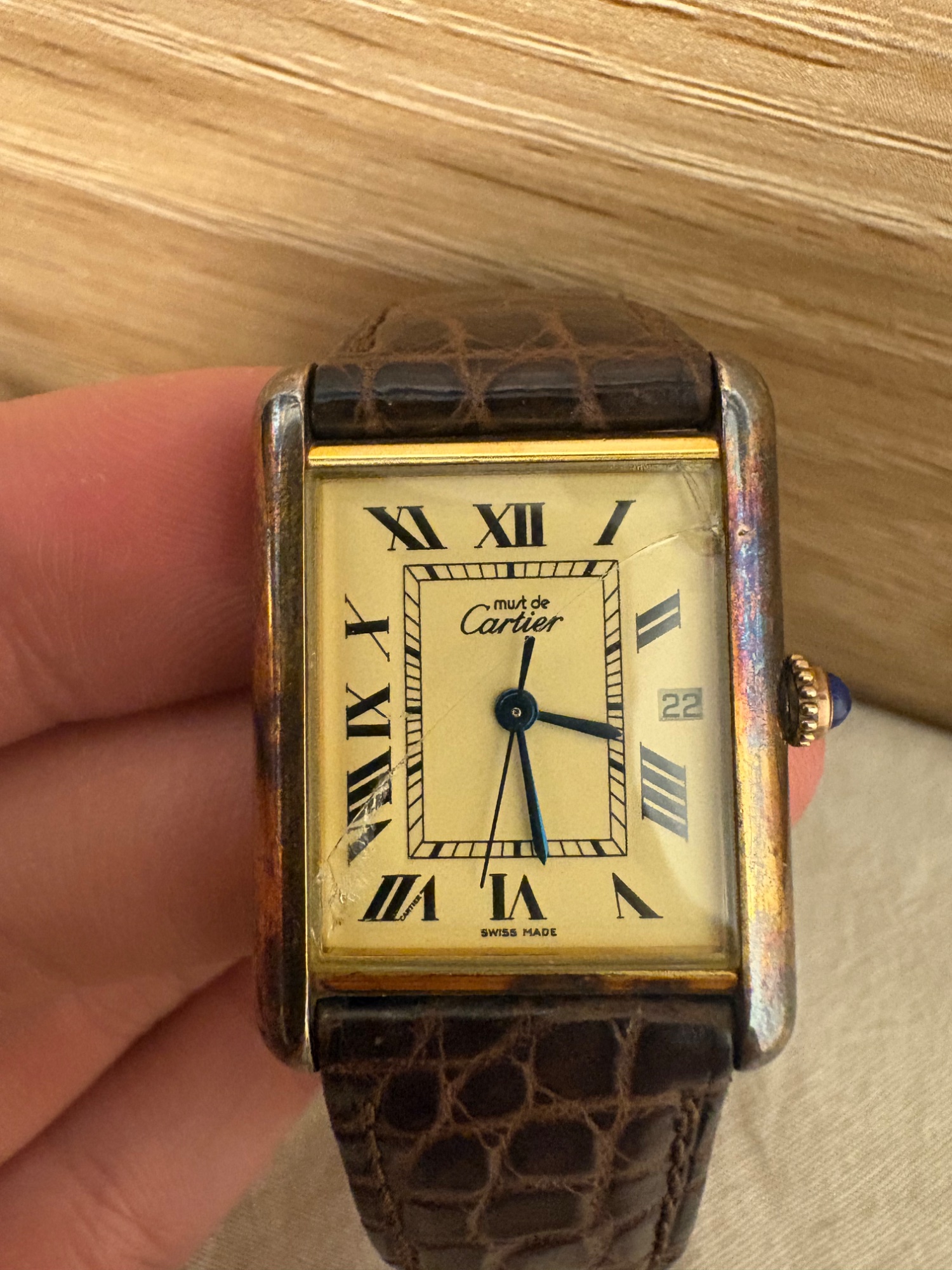カルティエの公式のケースがあります。ガラスが割れてしまっています。不動品です。