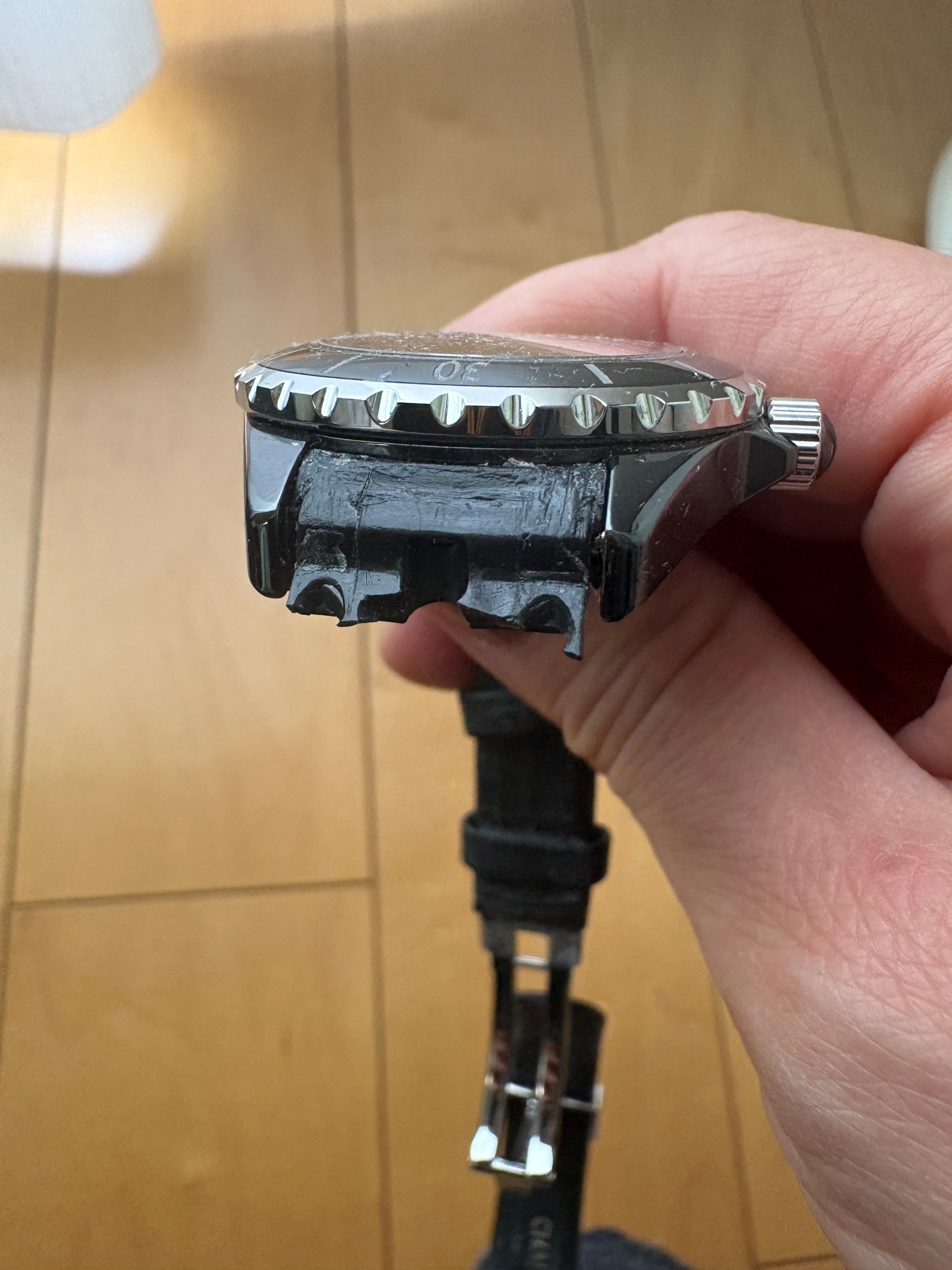 あまり使った記憶がないのですが久しぶりに使おうとしたらベルトが切れてしまいそれ以降自宅保管となっていました。今は時計は止まっています。