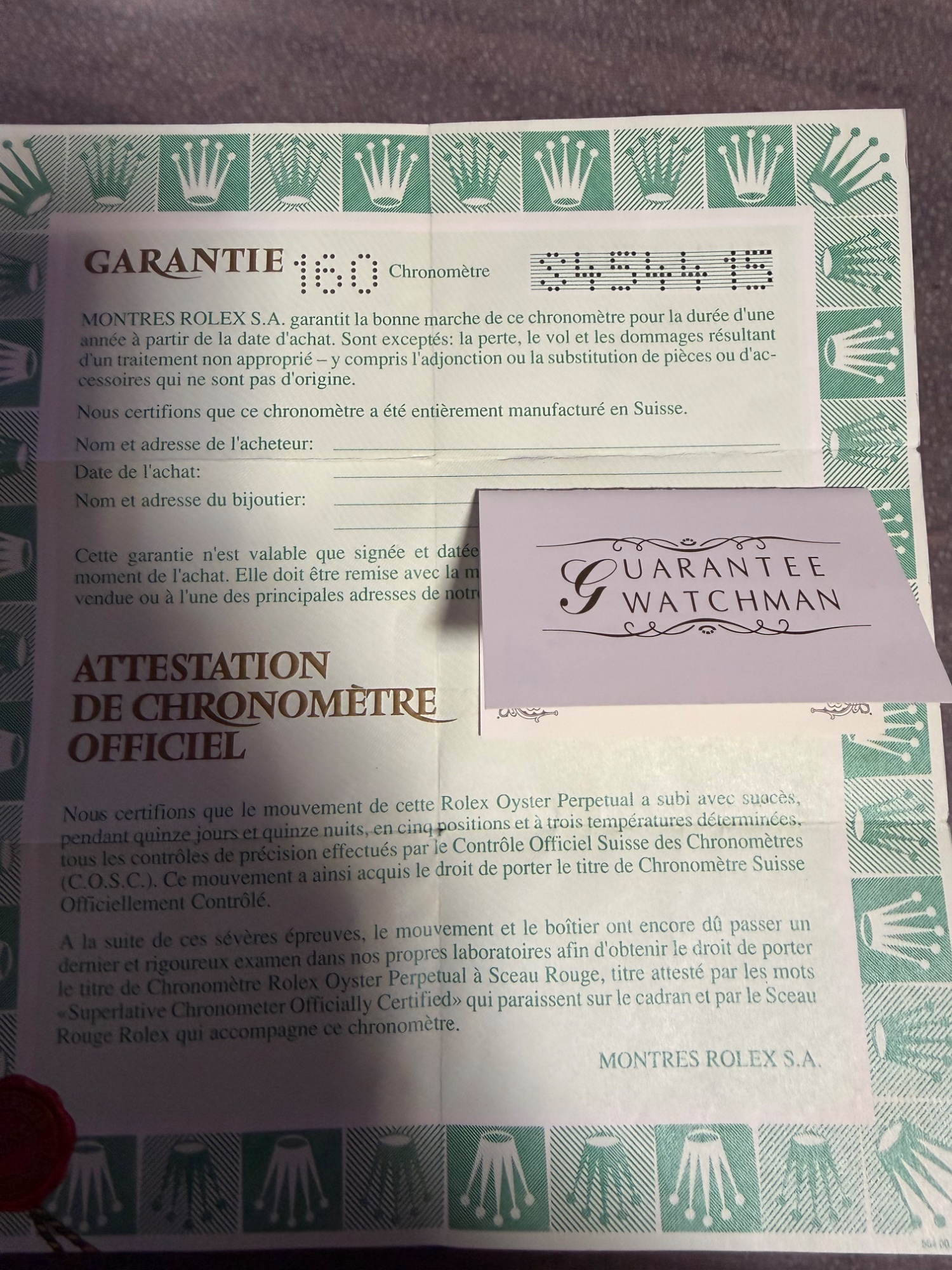 1996年購入、箱、補償書あり、