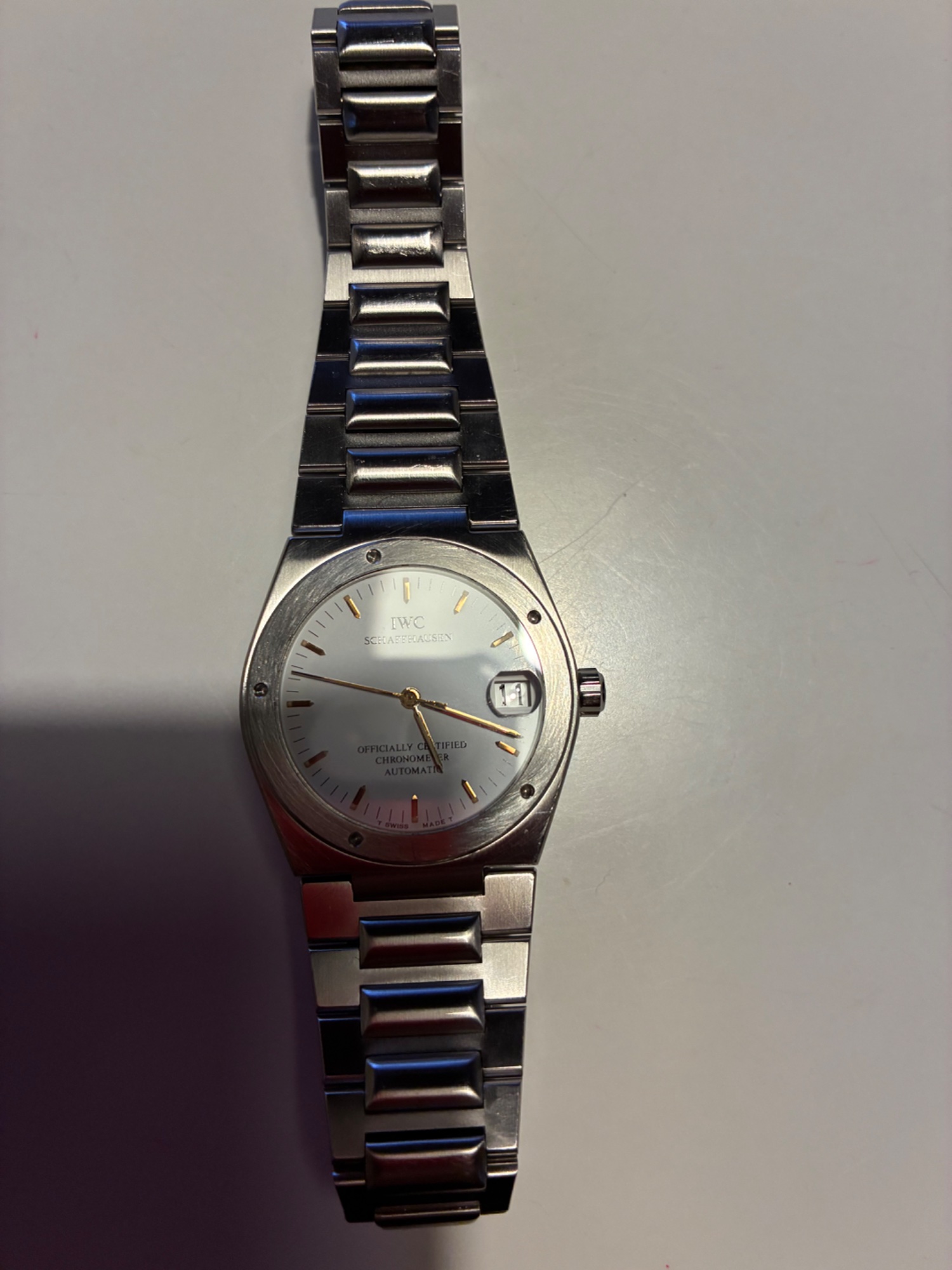 付属品や、ケースはなし、30年以上前に津田沼のダイエー系のお店にて購入。あまり着用していない。以前にohに出したところ、ムーブメントはiwc製ですね、と聞きました。