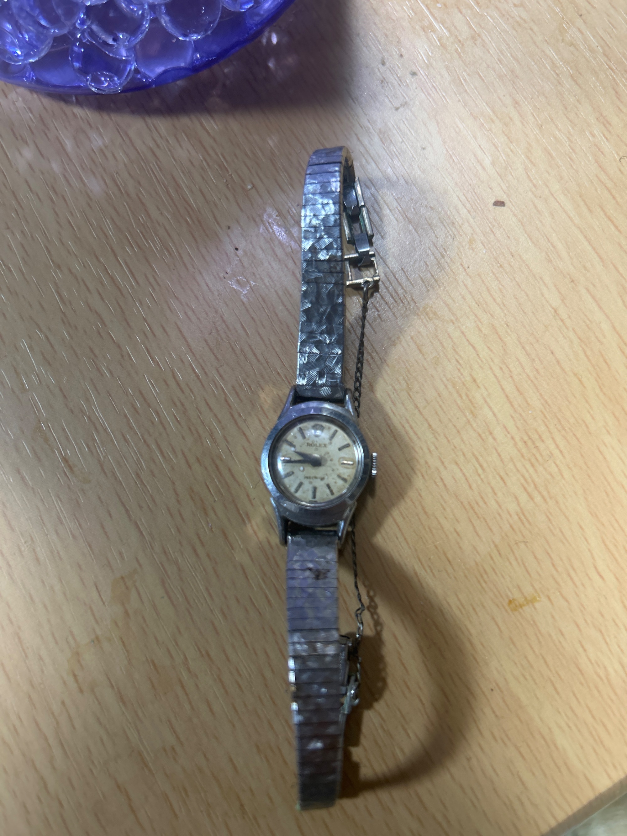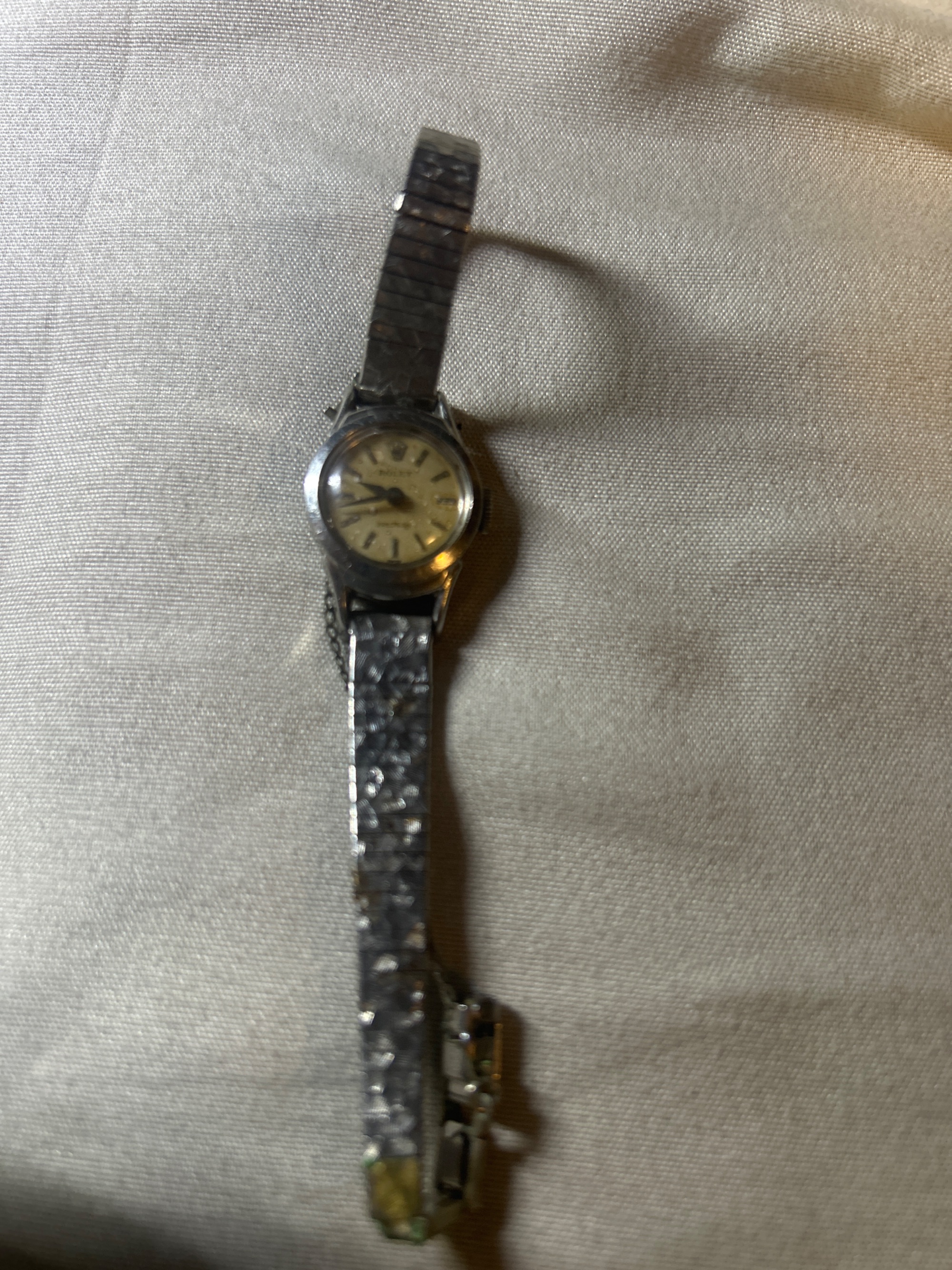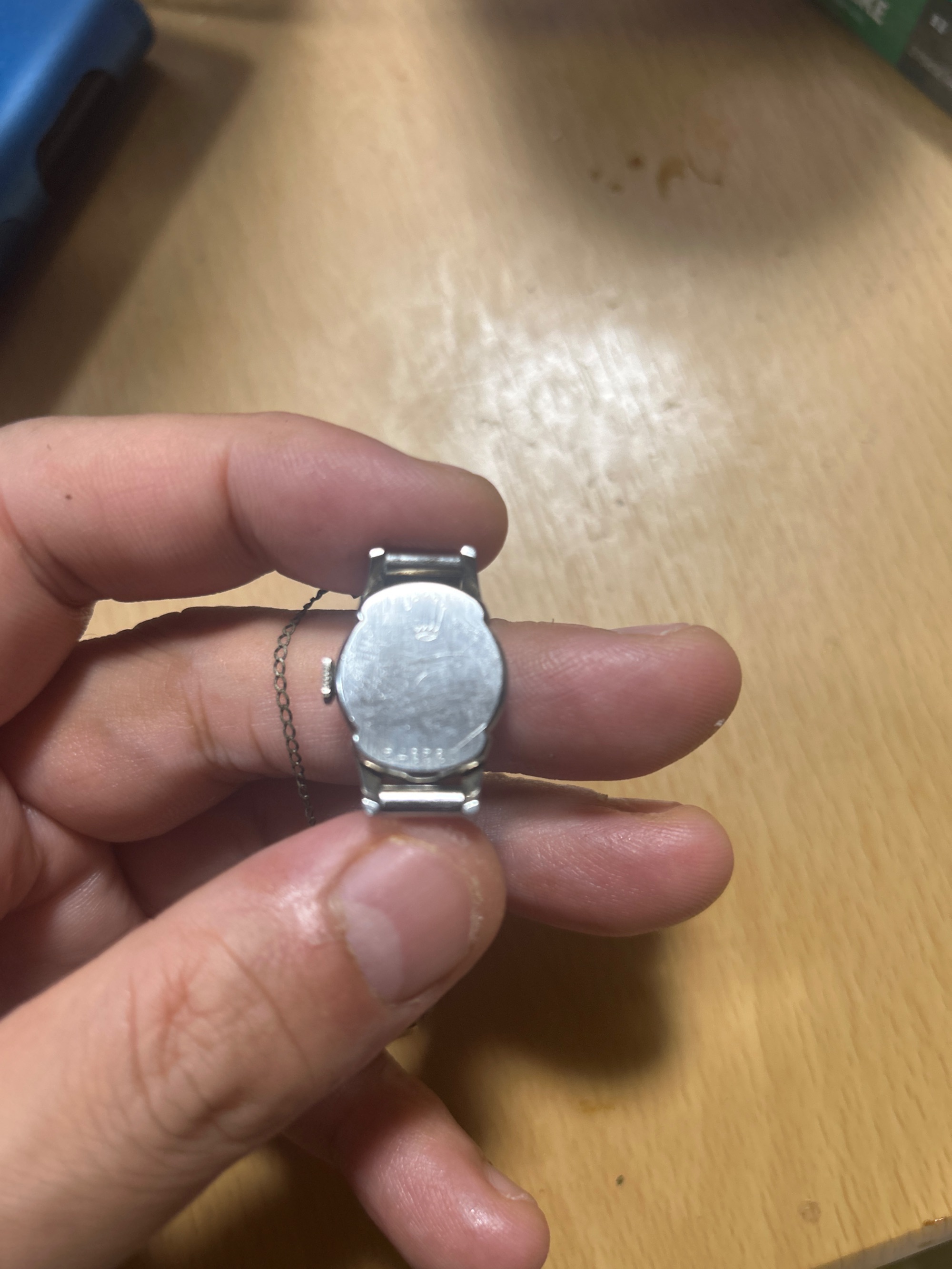 付属品なし、保証書、説明書、ケース全てないです。手巻き可能、動作確認済、バンド部分ステンレス表記あり、一部パーツサビ有り