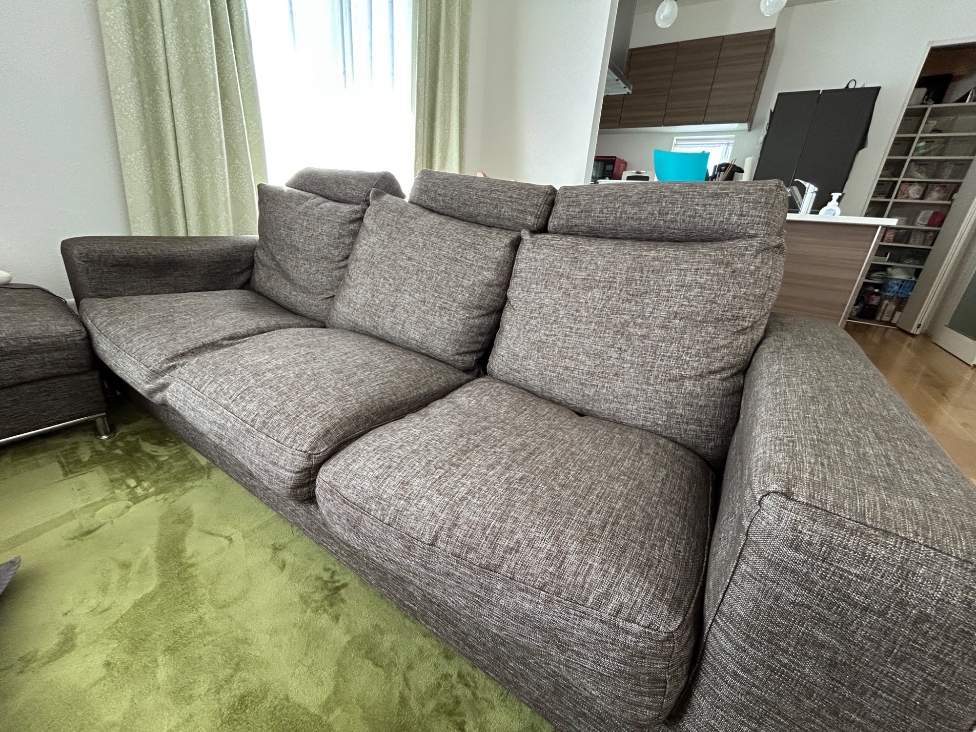 ニトリ・3人がけソファ、オットマン付き