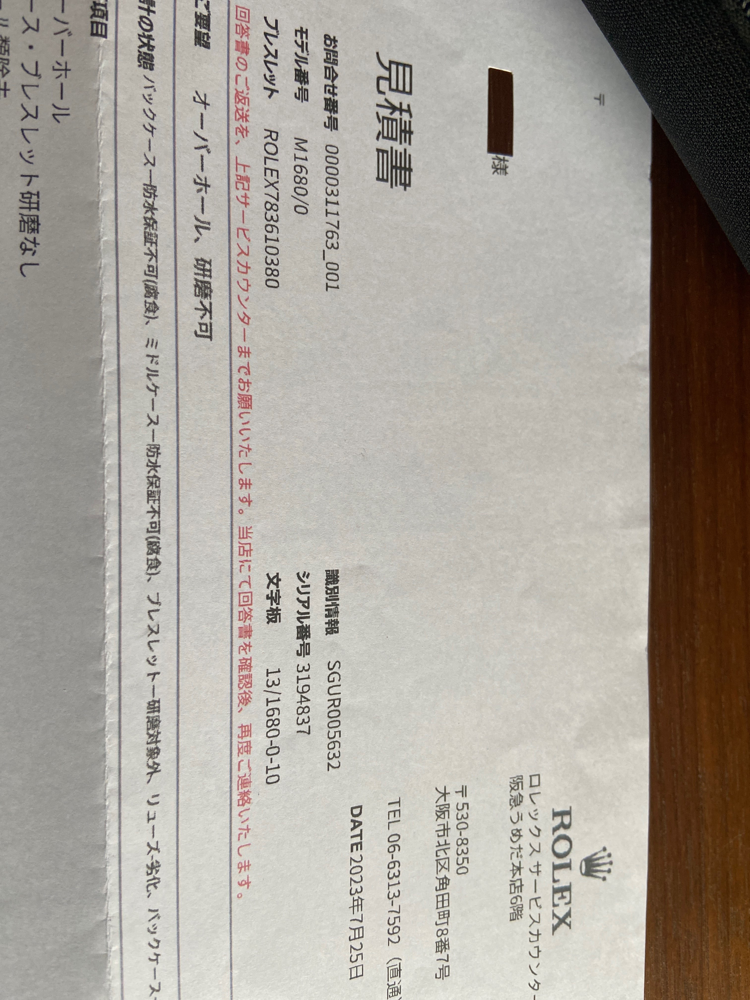 「ロレックス サブマリーナー 168」の買取査定価格の詳細です。