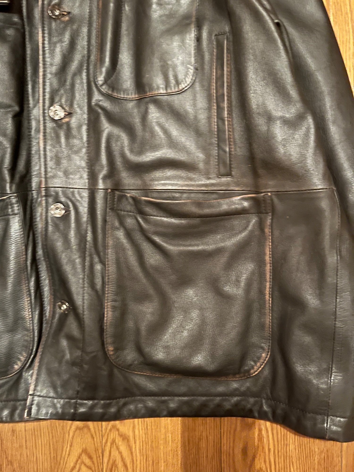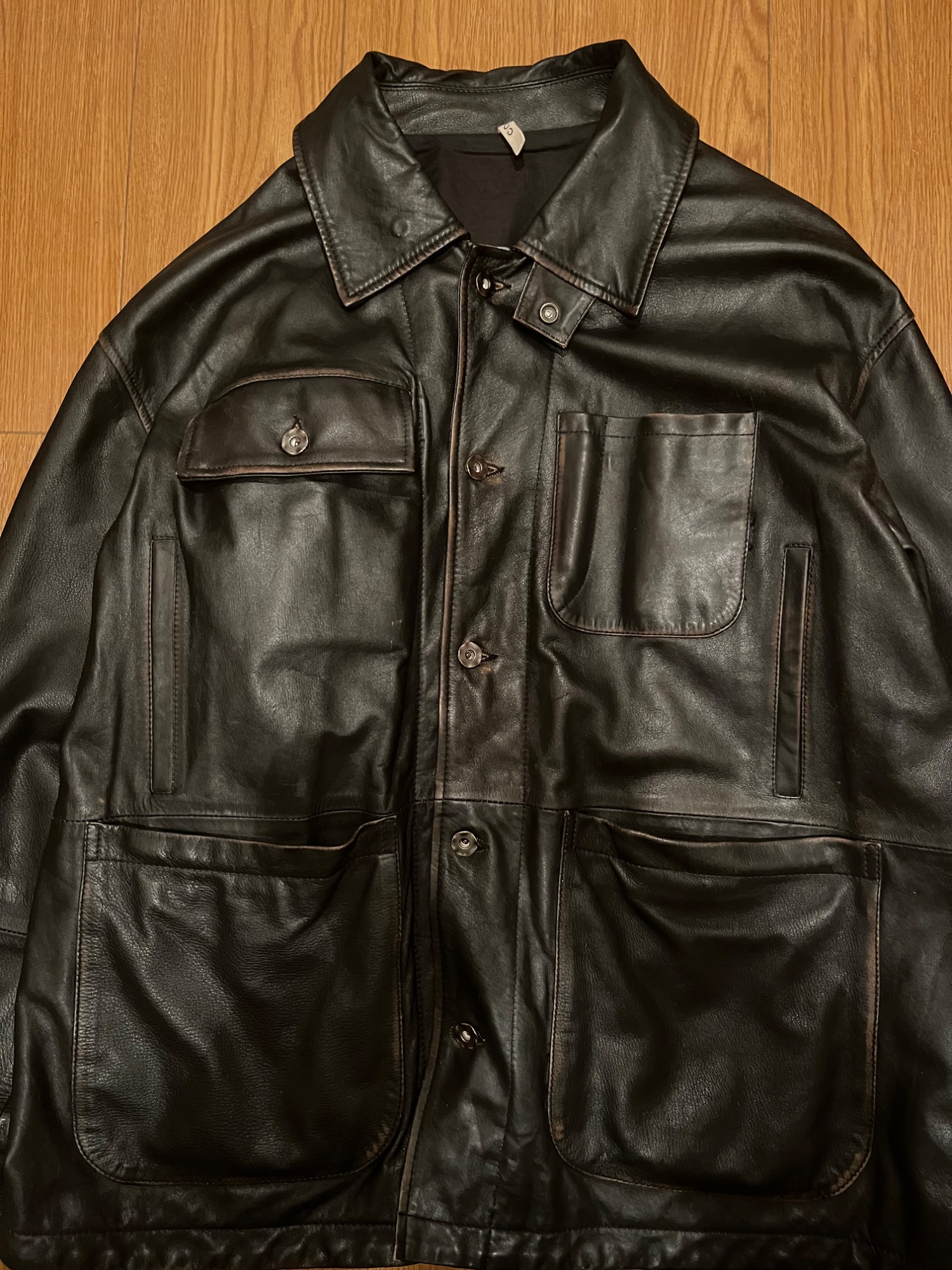 ジャーナルスタンダードで10万円ほどで購入。着用回数は一定ございますが、使用に伴う一部の柔らかさはレザー特有の経年変化によるものであり、素材の風合いとしてご理解いただけますと幸いです。