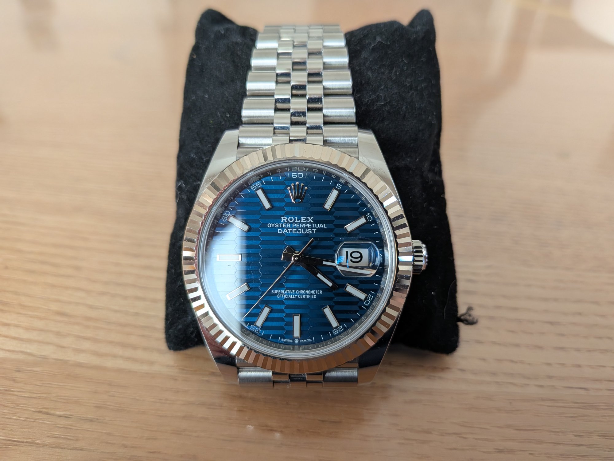 デイトジャスト41フルーテッドモチーフ文字盤ブライトブルー