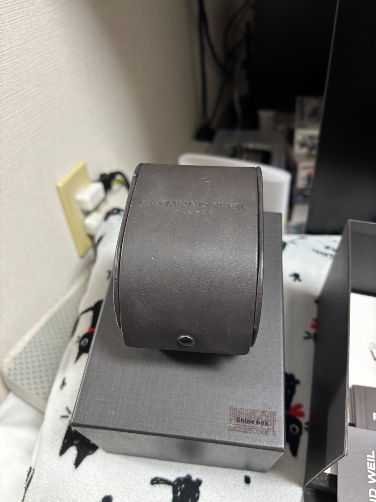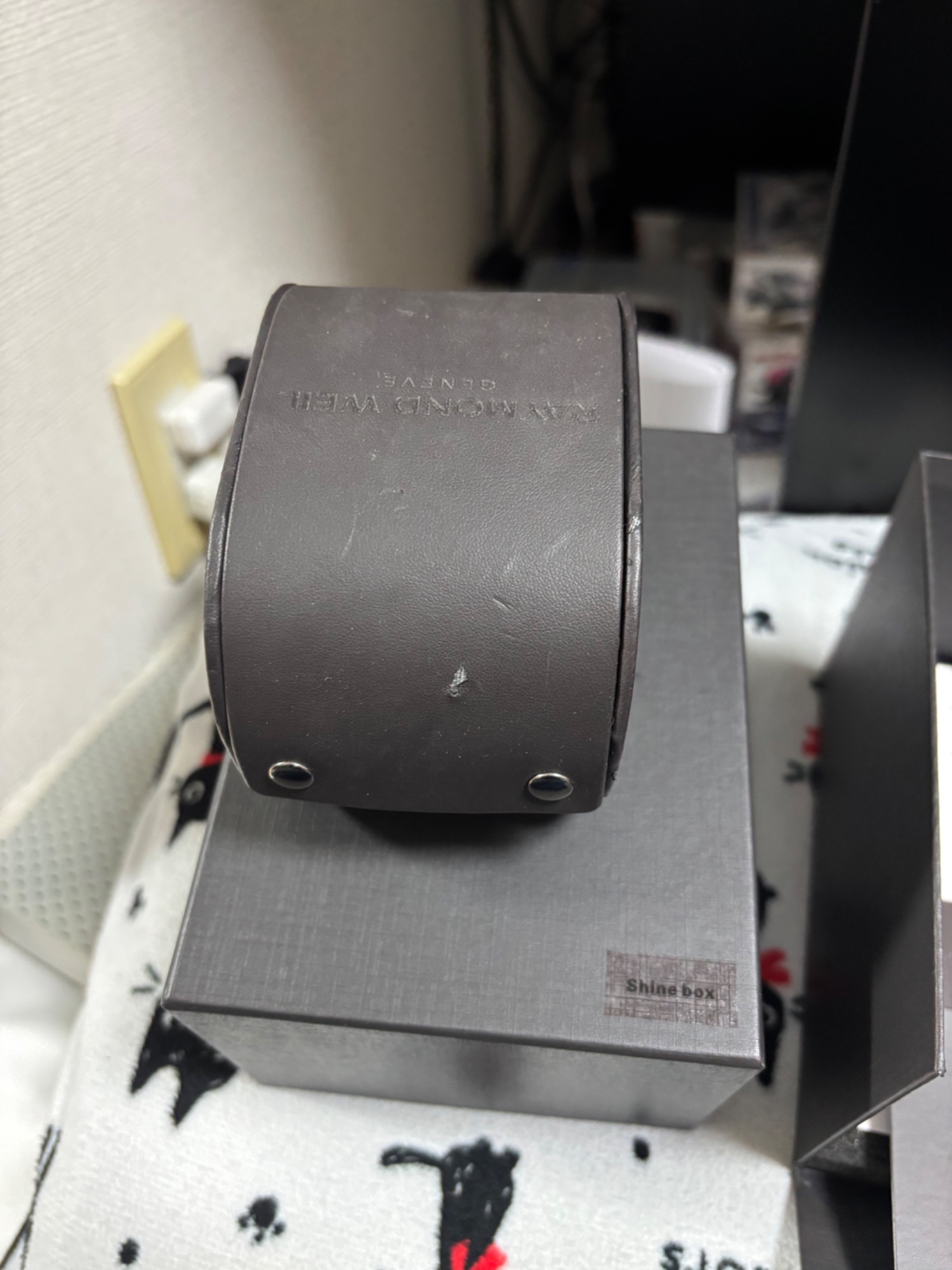 購入は2023年12月頃 使用頻度は冠婚葬祭などがあった時くらいなのであまり使用していない 時計を入れるケースの皮部分一部破れあり