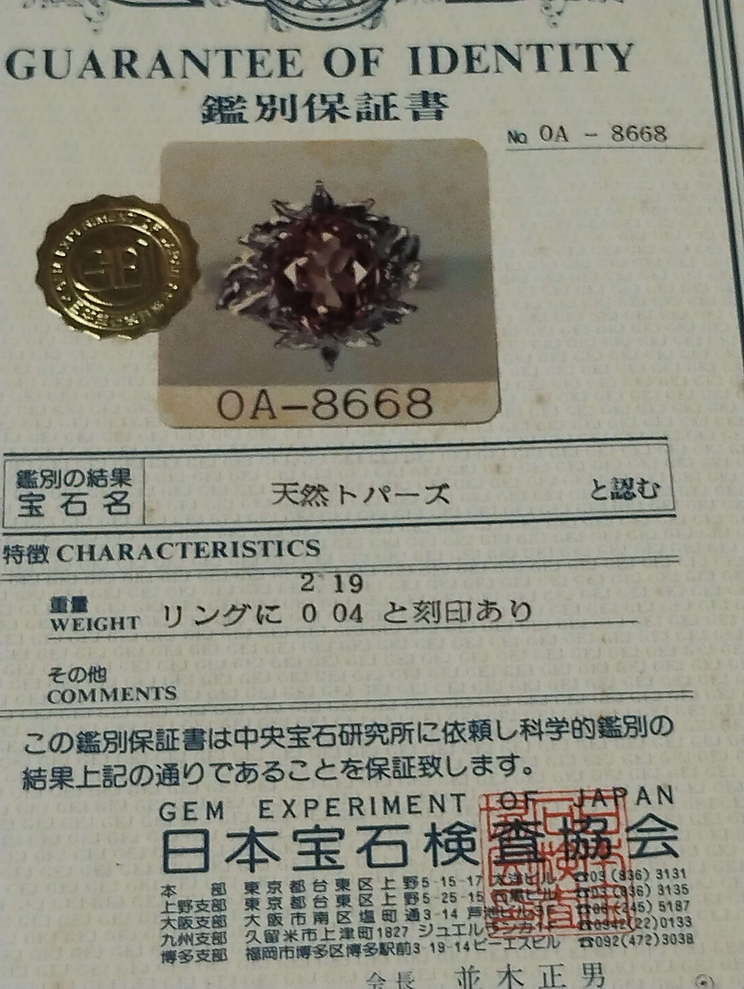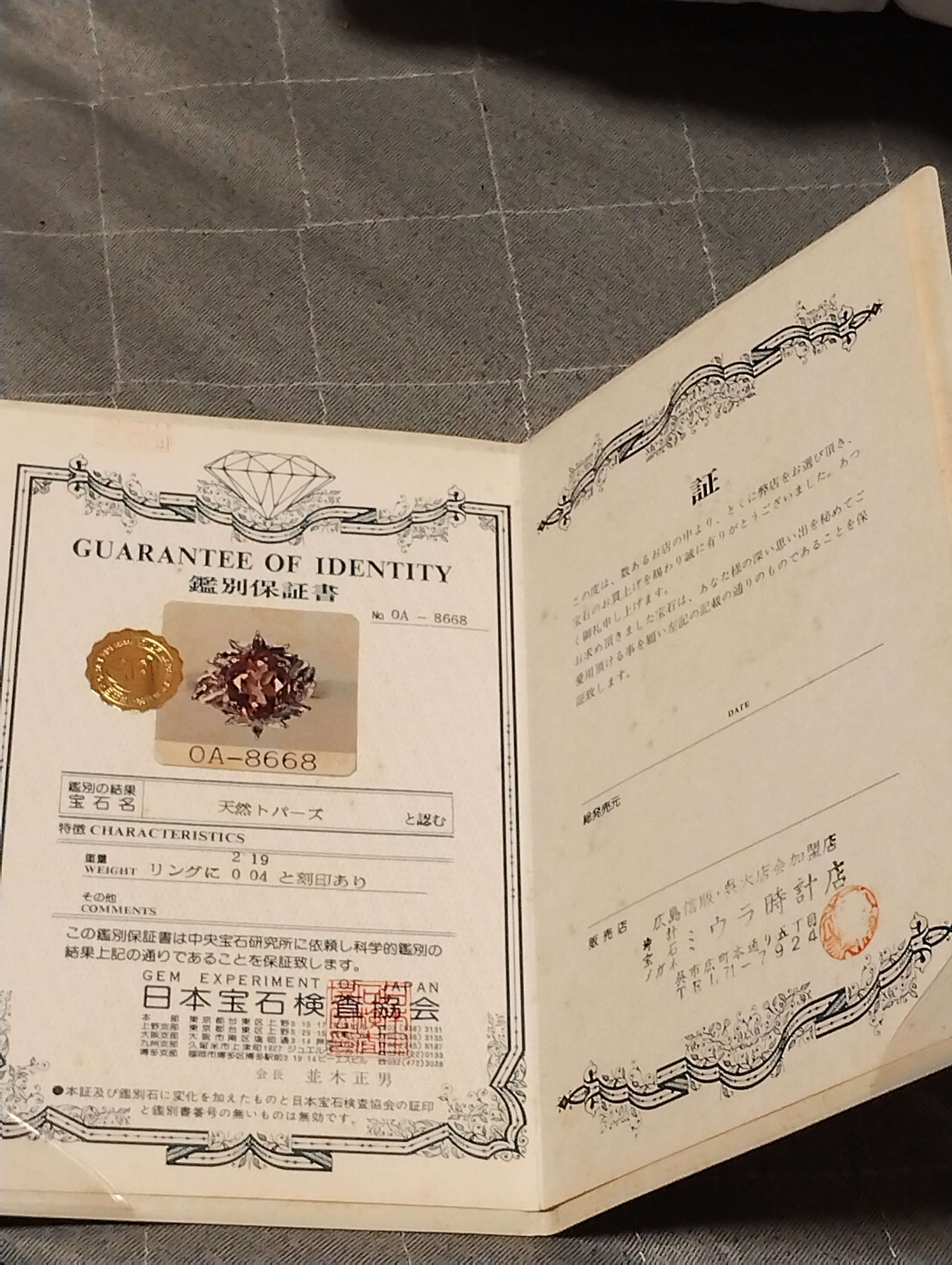 天然トパーズプラチナリングの買取査定価格・相場