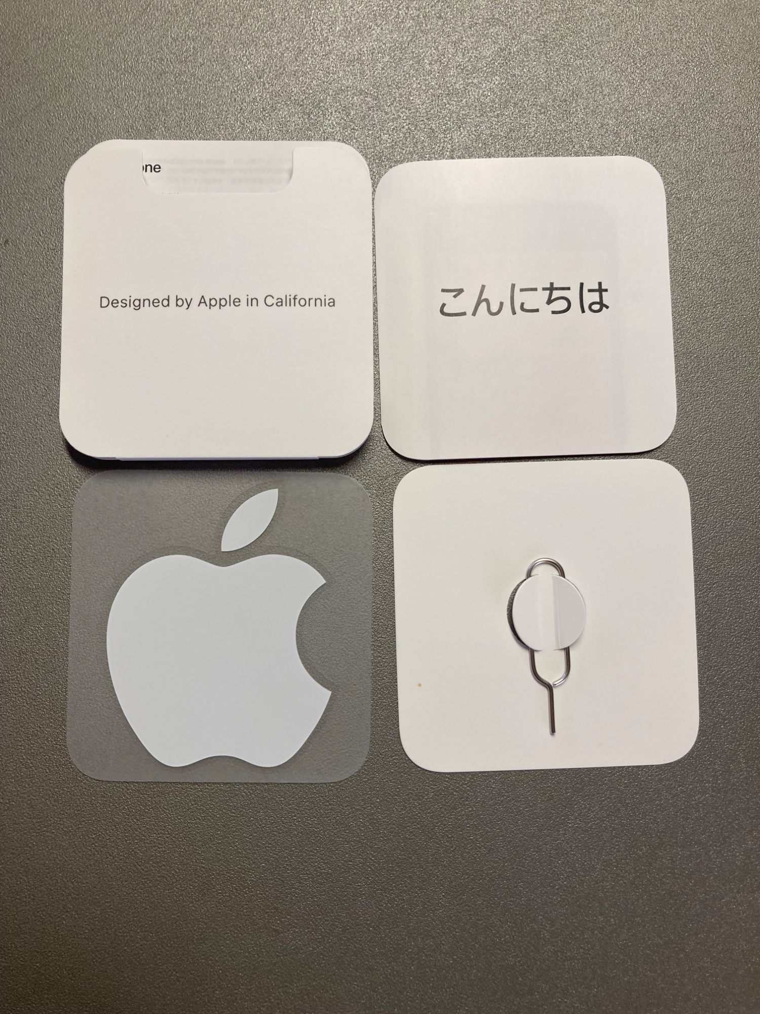 箱、SIMピン、充電コードが付属します。