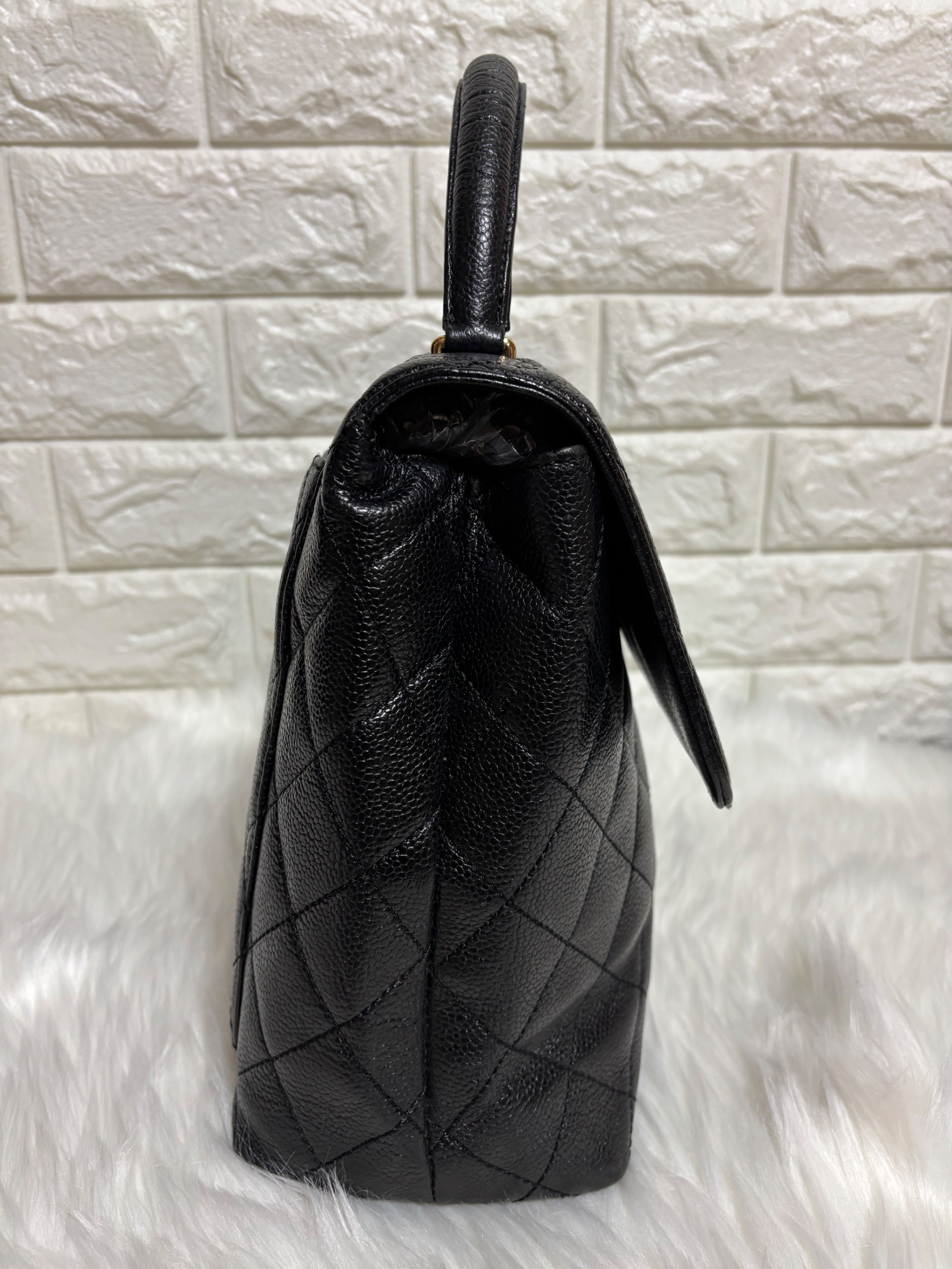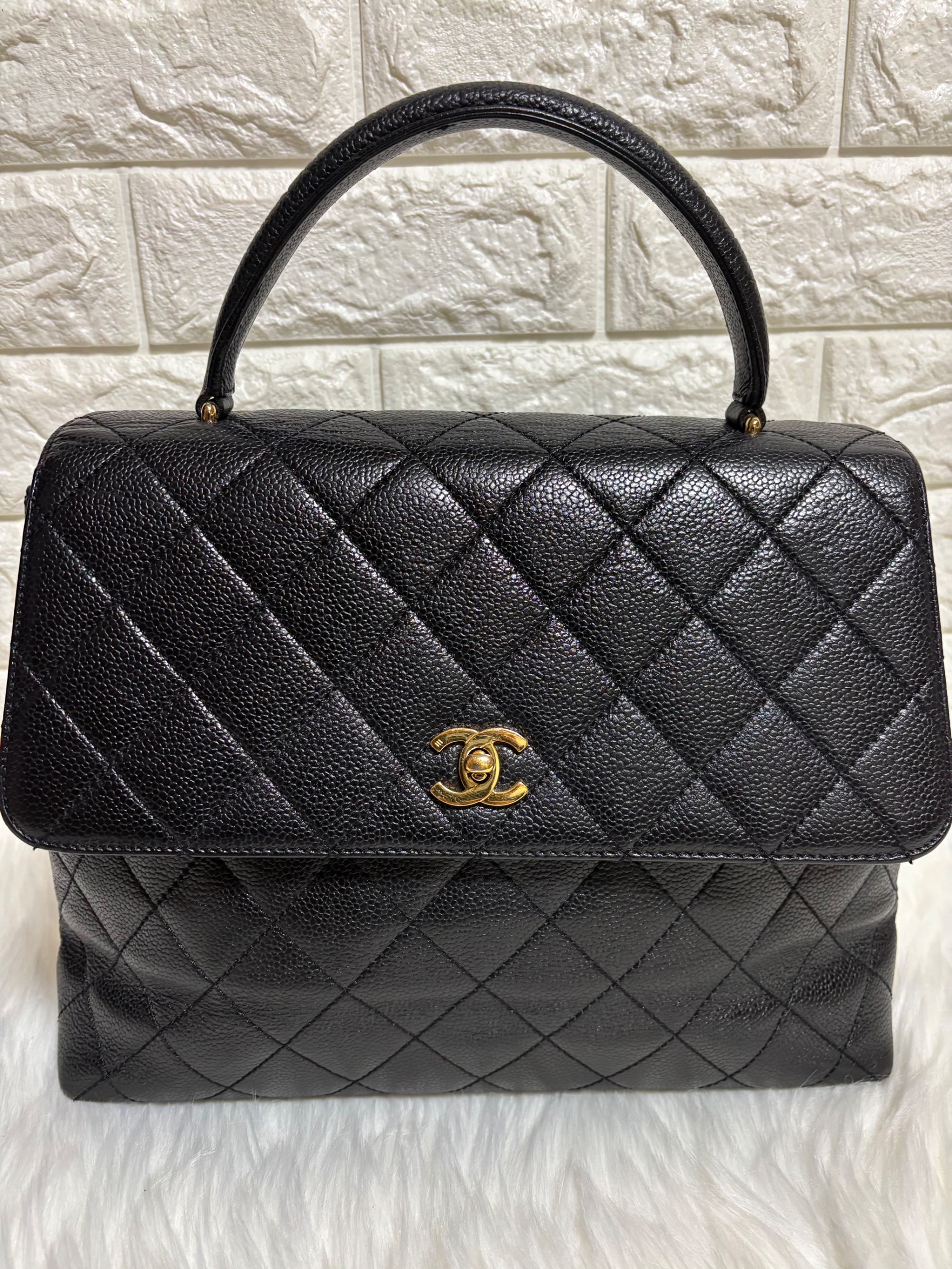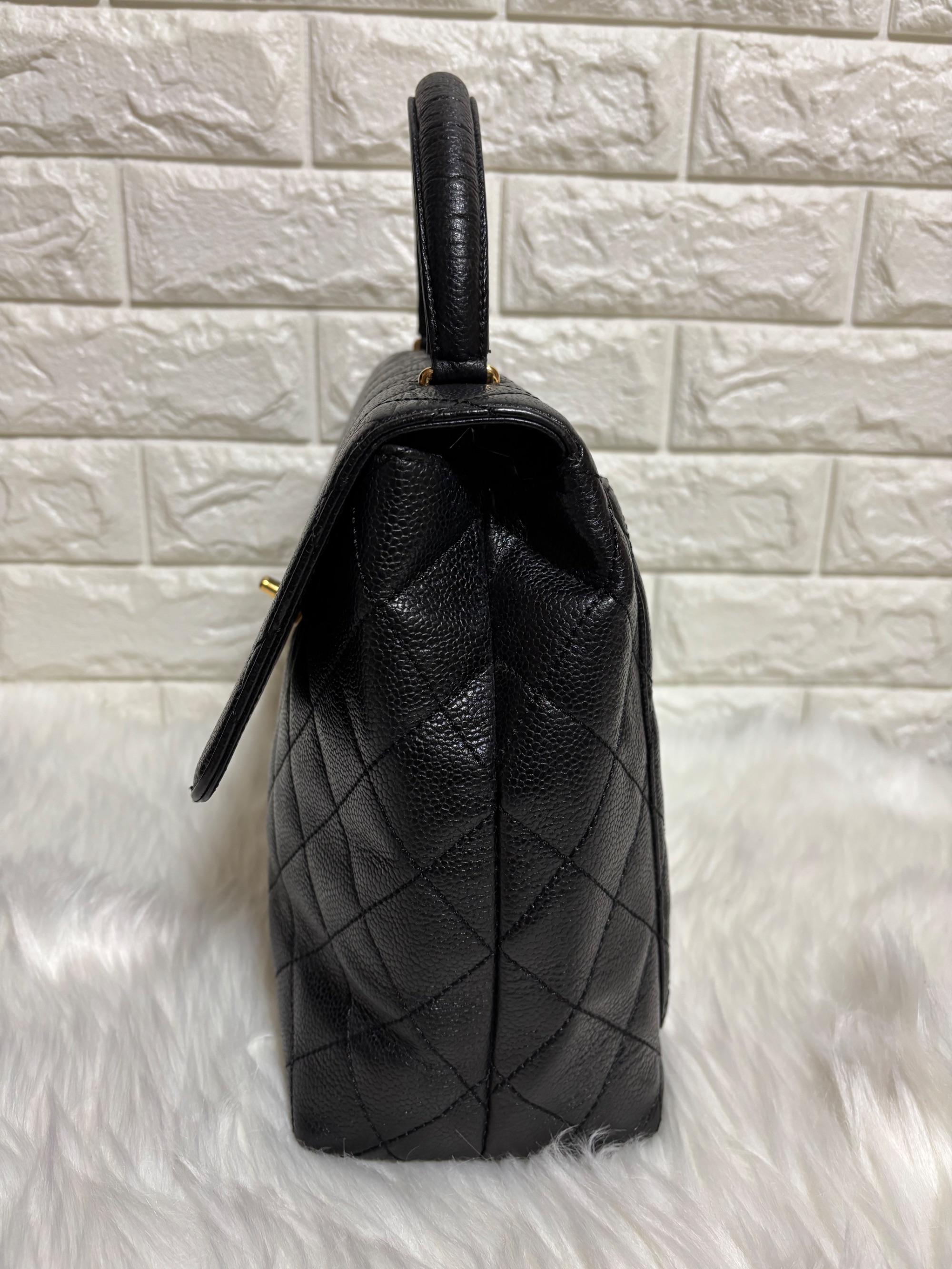 シャネル ココマーク ハンドバッグ マトラッセ キャビアスキン ブラック トップ