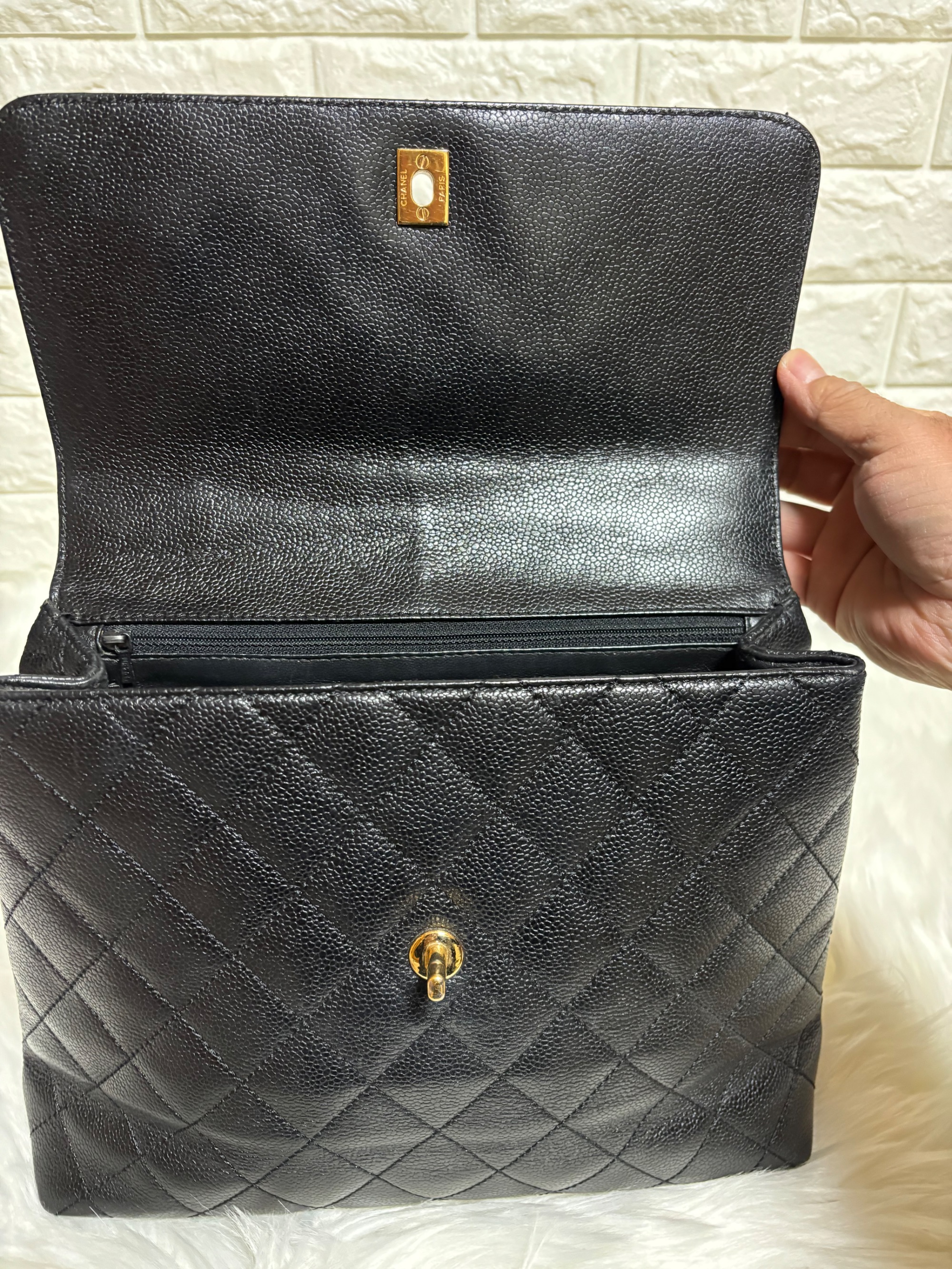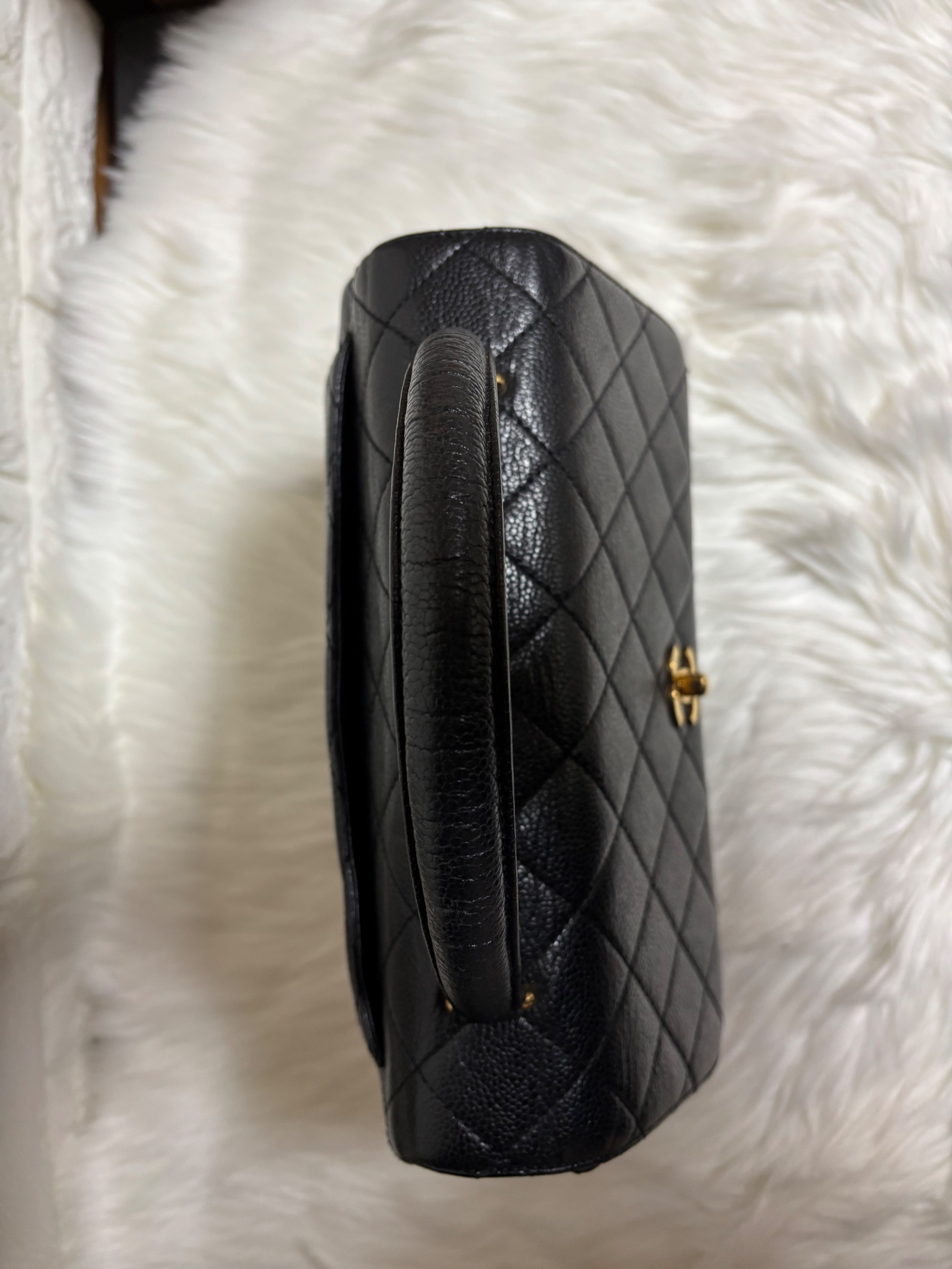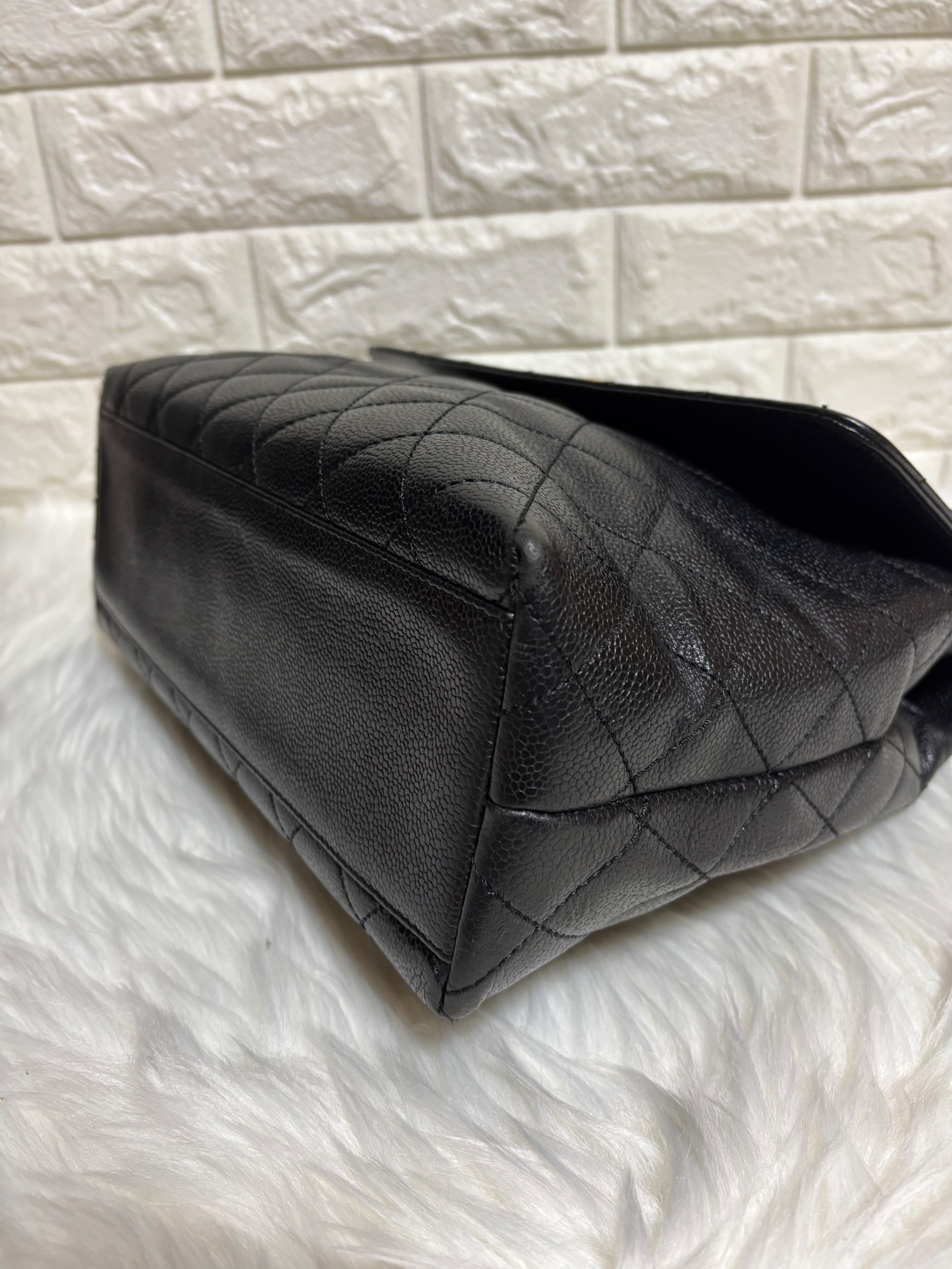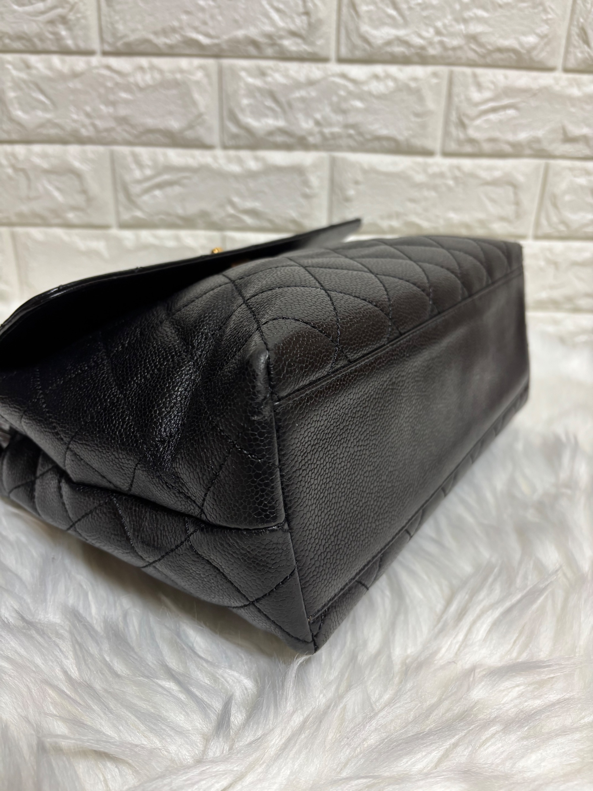 シャネル ココマーク ハンドバッグ マトラッセ キャビアスキン ブラック トップ