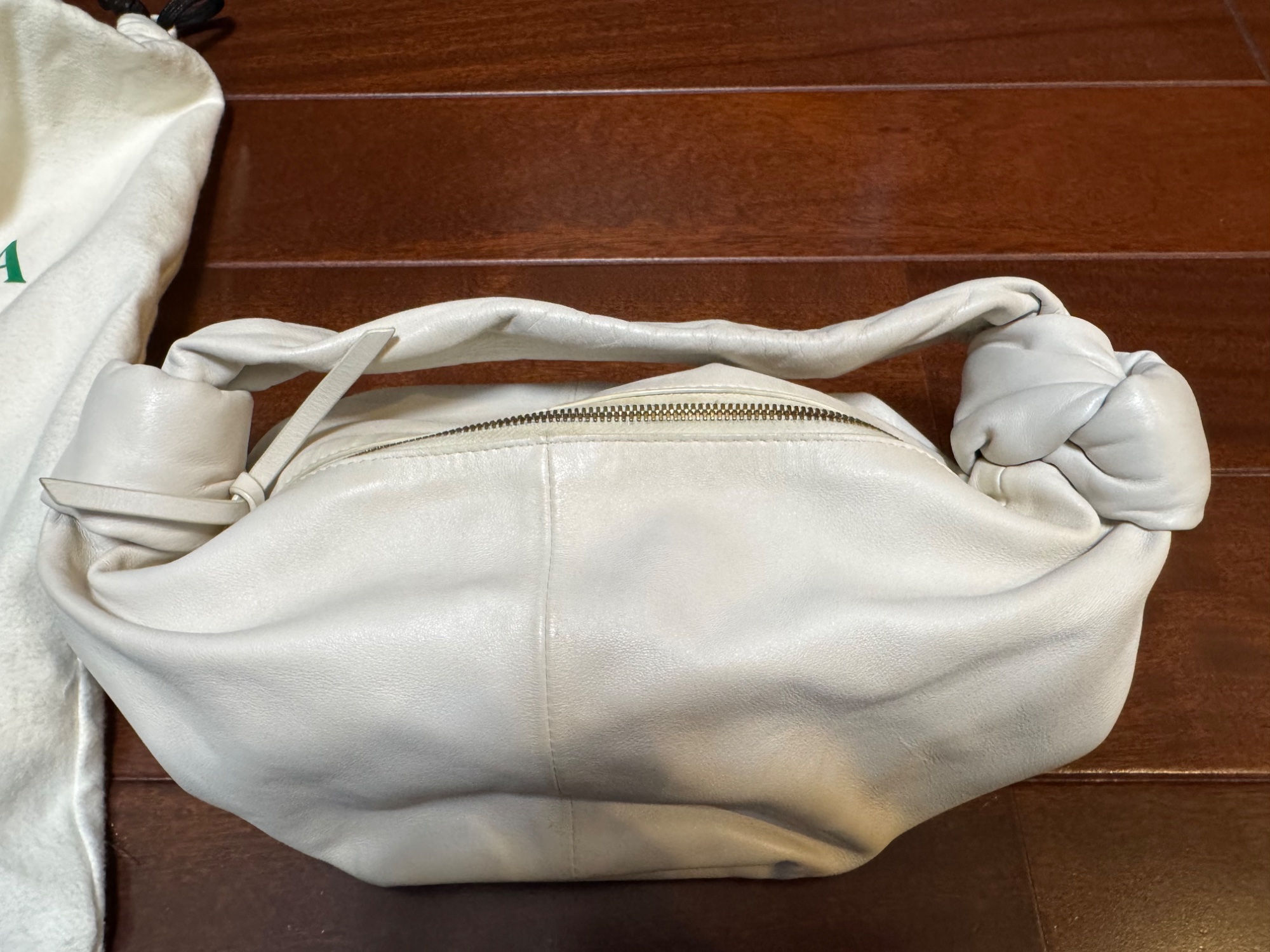 2020年12月に購入してます。付属品は購入時のレシートとレシート入れるケース。レザーの取り扱いが書かれた説明書、及び購入時の袋です。10回から15回使用しておりますので、川皮の表面には、使用による汚れがあります、