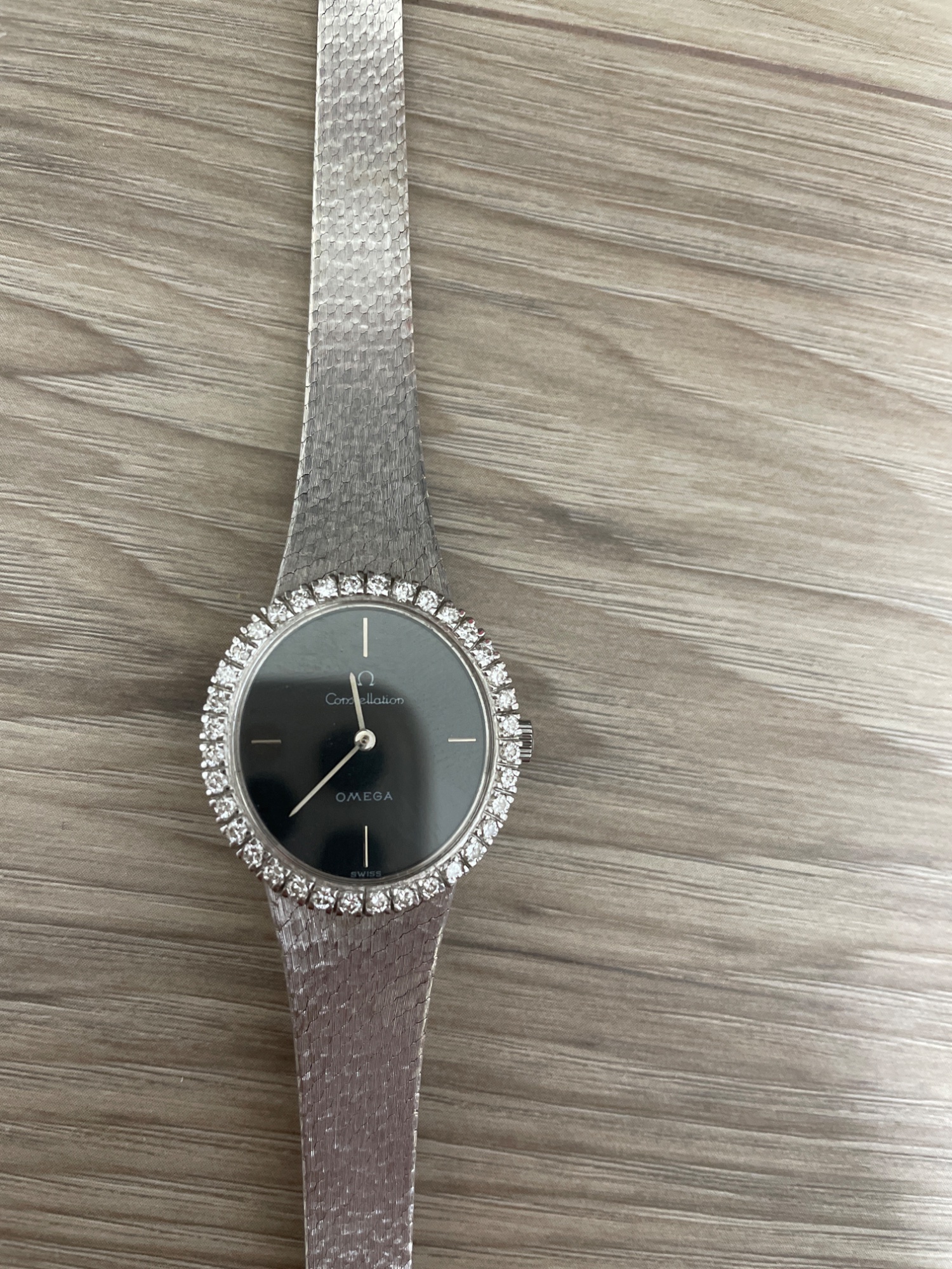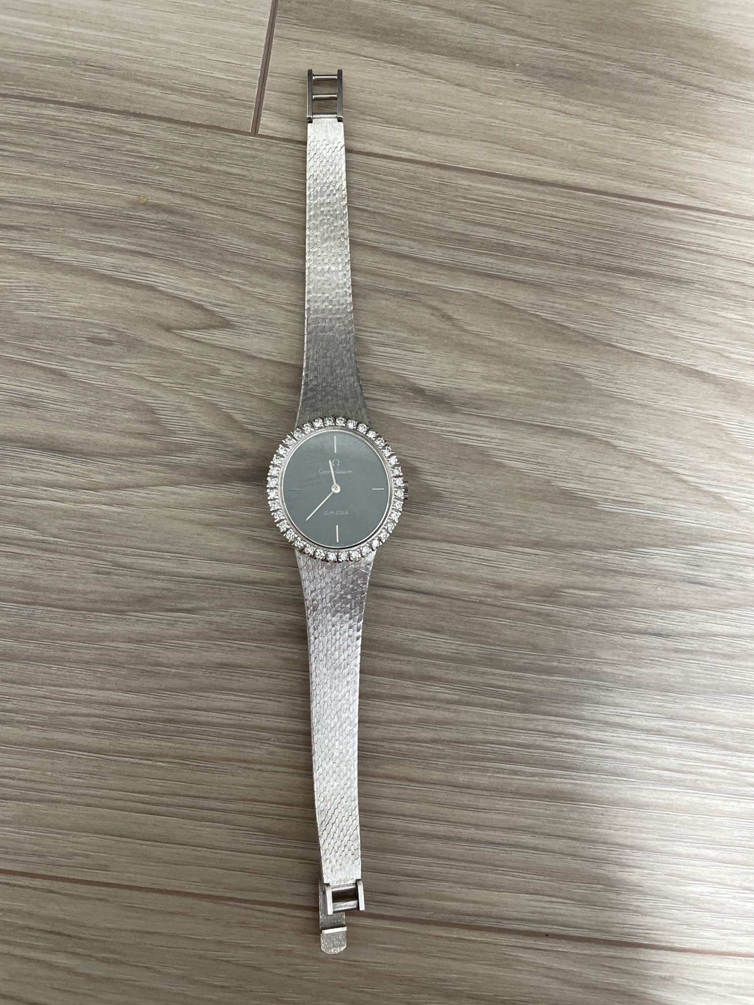 商品名も分からず、型番もどこにも書いていないためわかりません。その為、どれほどの価値なのかを気になったので査定しました。おそらく時計の周りの宝石は、ダイヤモンドだと思われます。