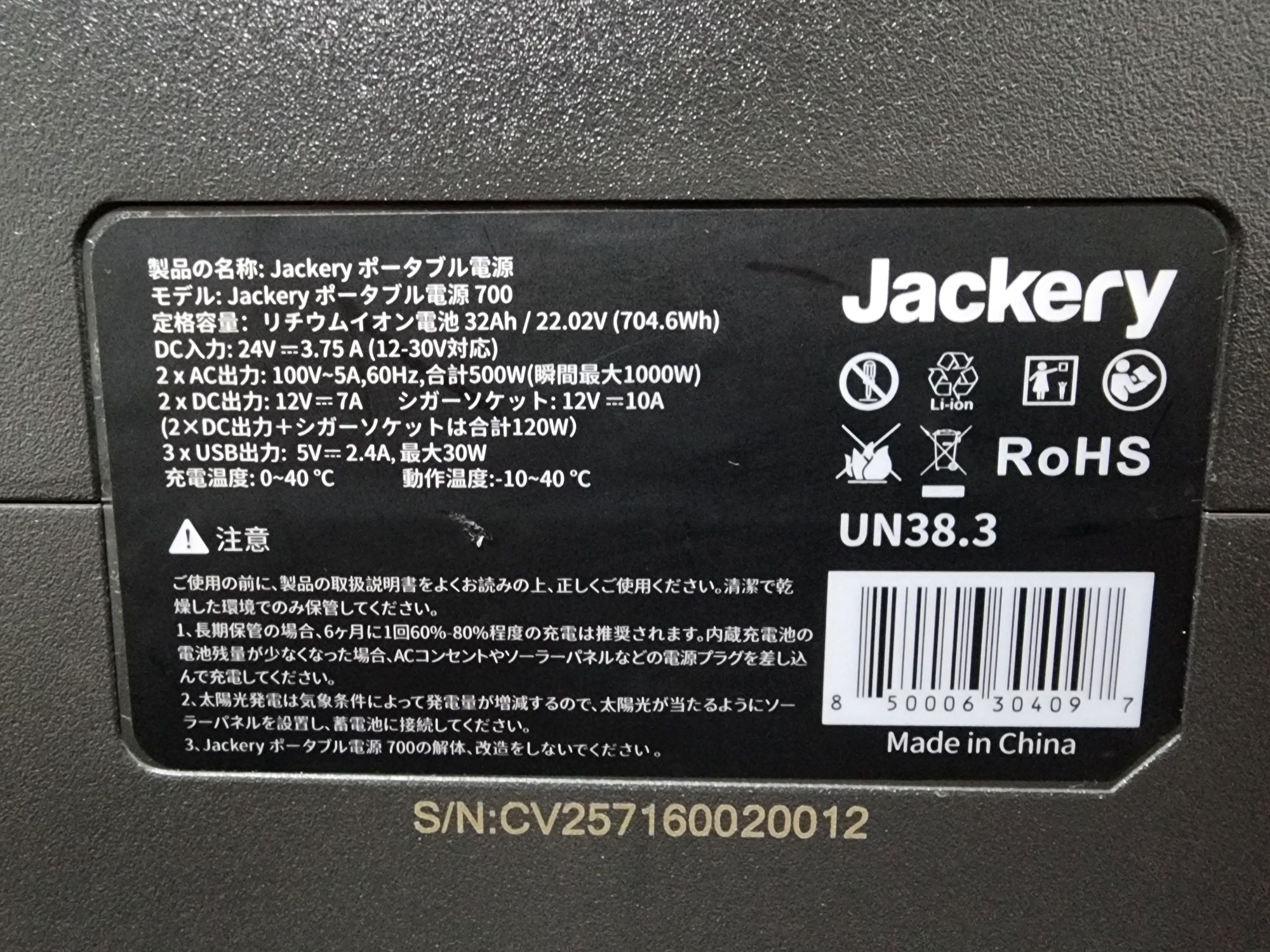 メーカー型番:Jackery ポータブル電源 700(704Wh / 定格500W)