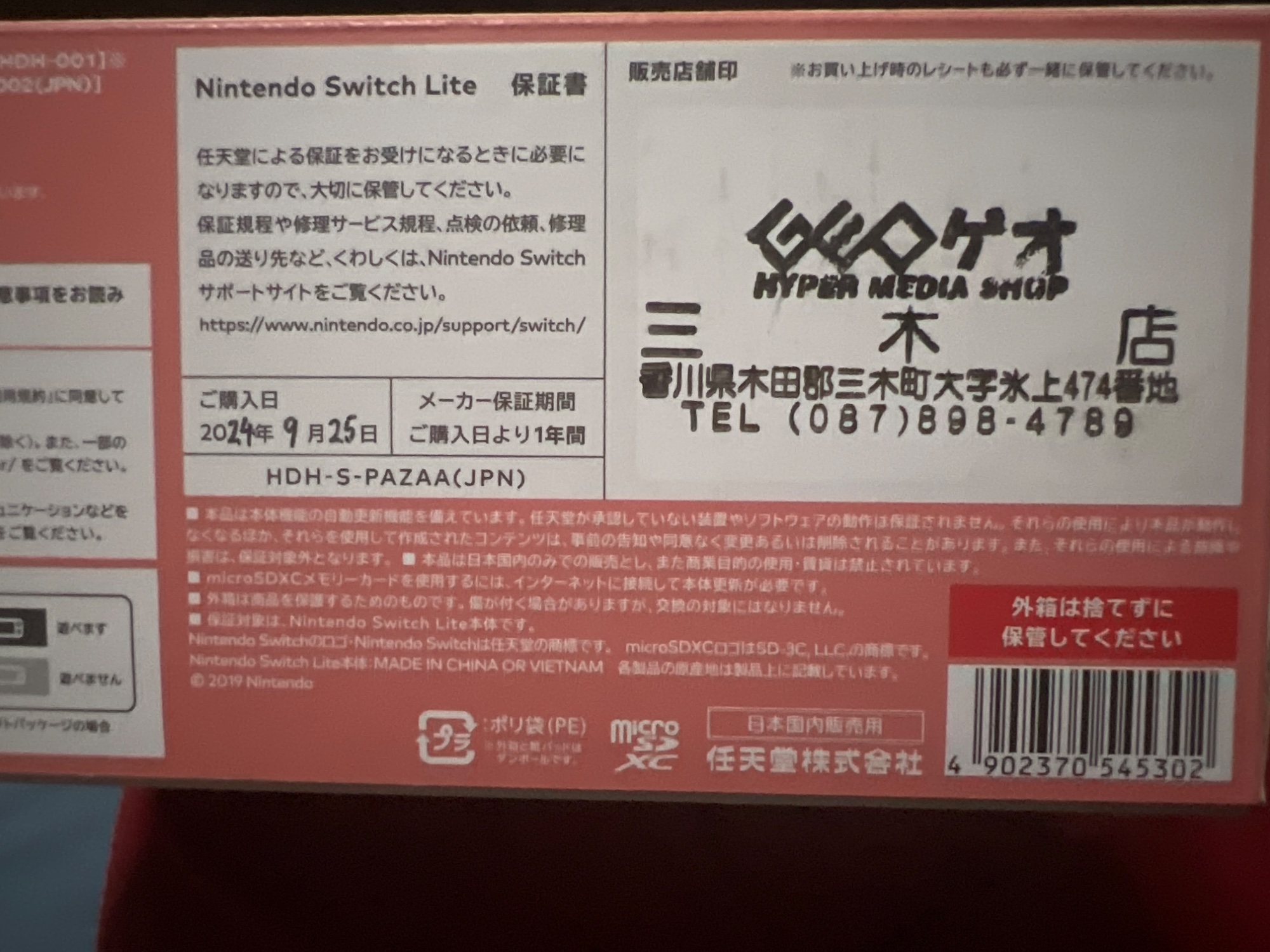 保証書付き2027年09.24まで