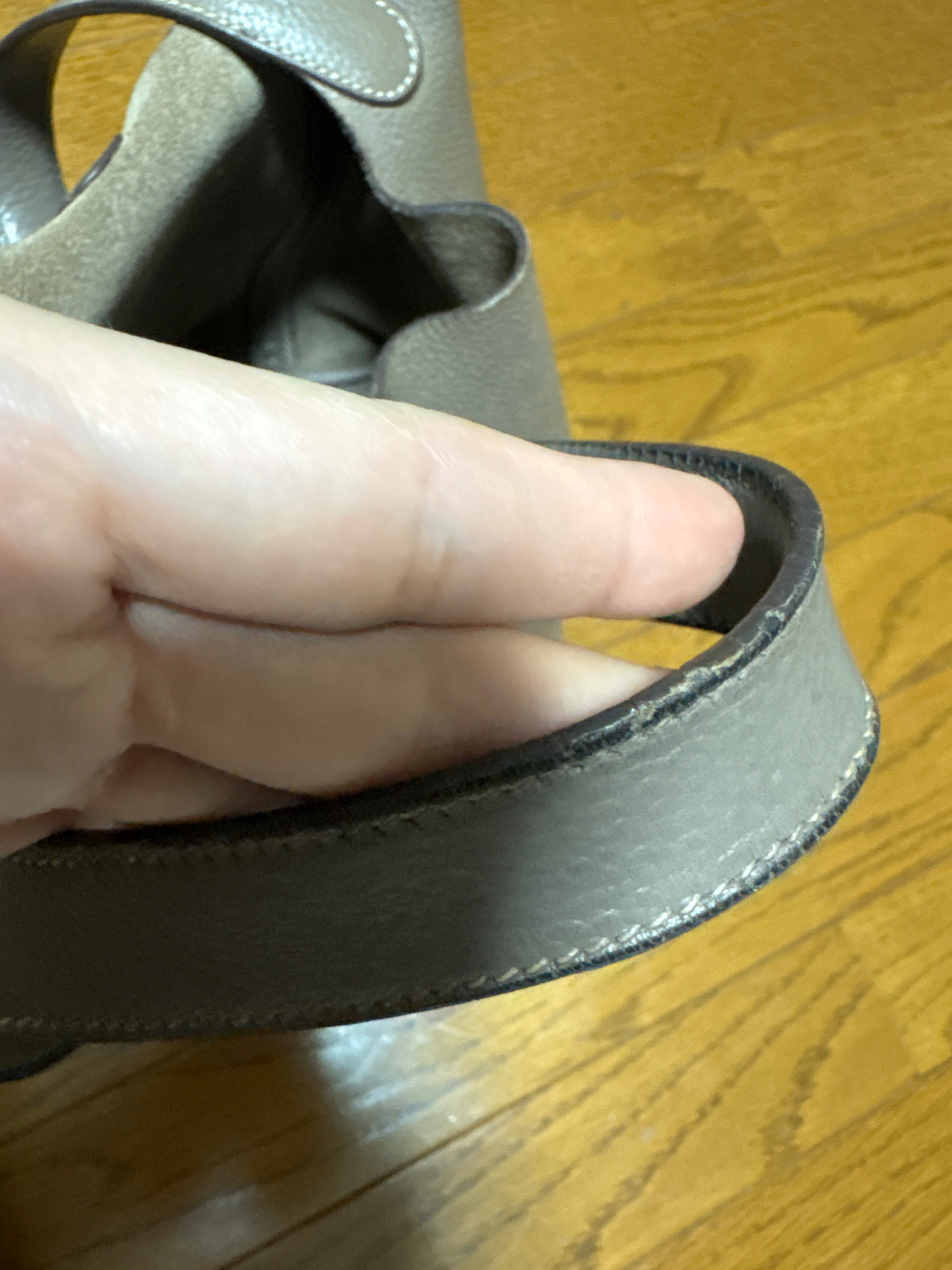 ベタつきなし 使用感あり 型崩れあり 毛羽立ちあり スレ若干 剥がれなし