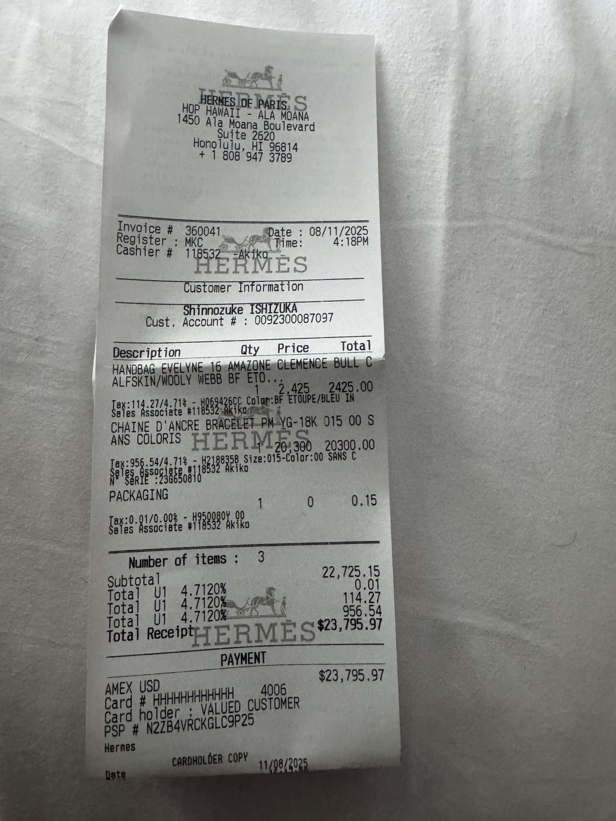 2025年8月11日にハワイで購入。