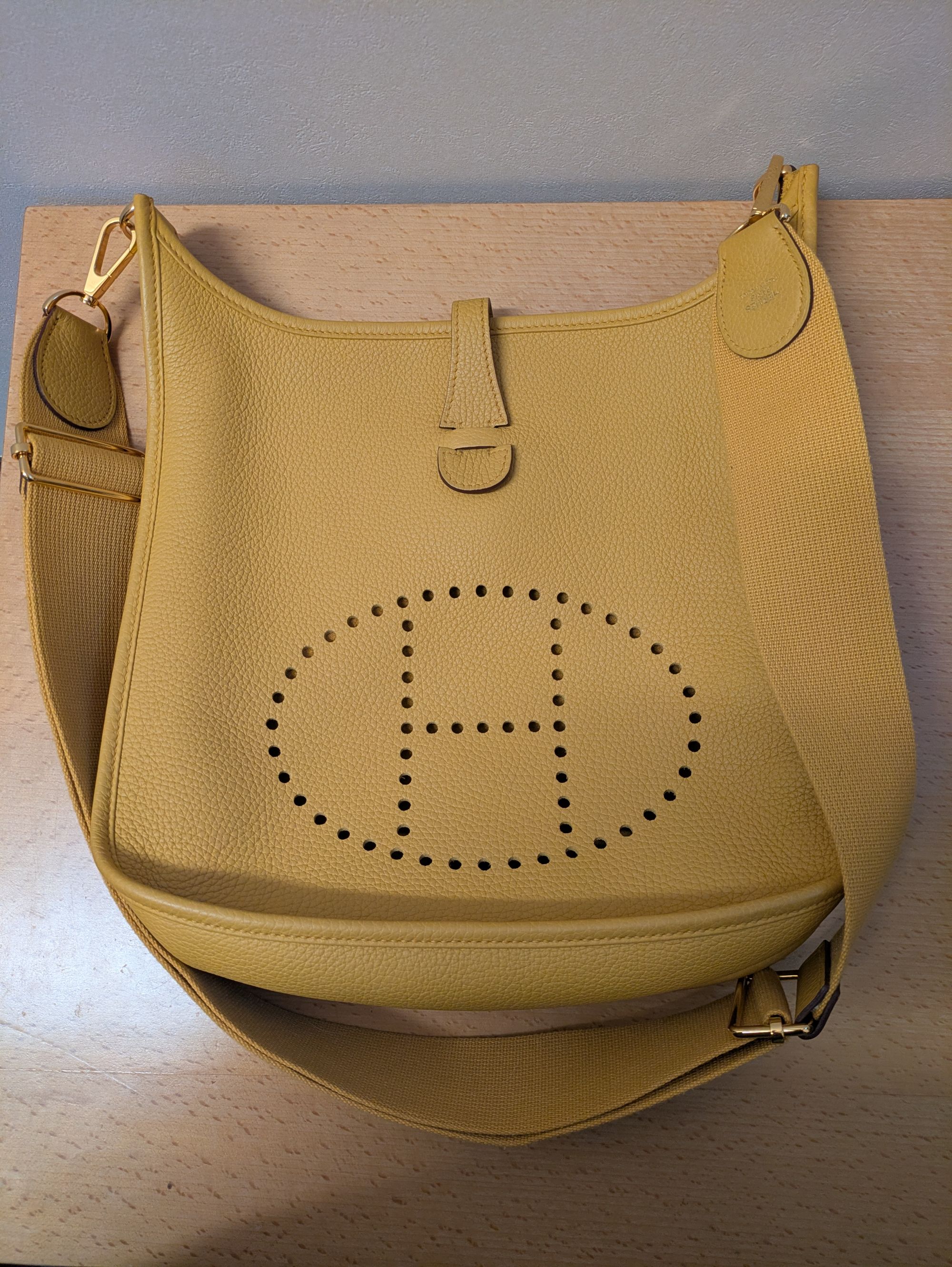 国内エルメス購入、エヴリン3PM、ジョーヌアンブル、D刻印、保存袋と箱あり。