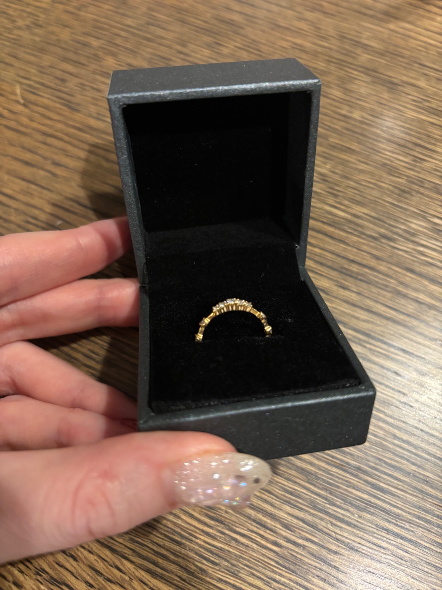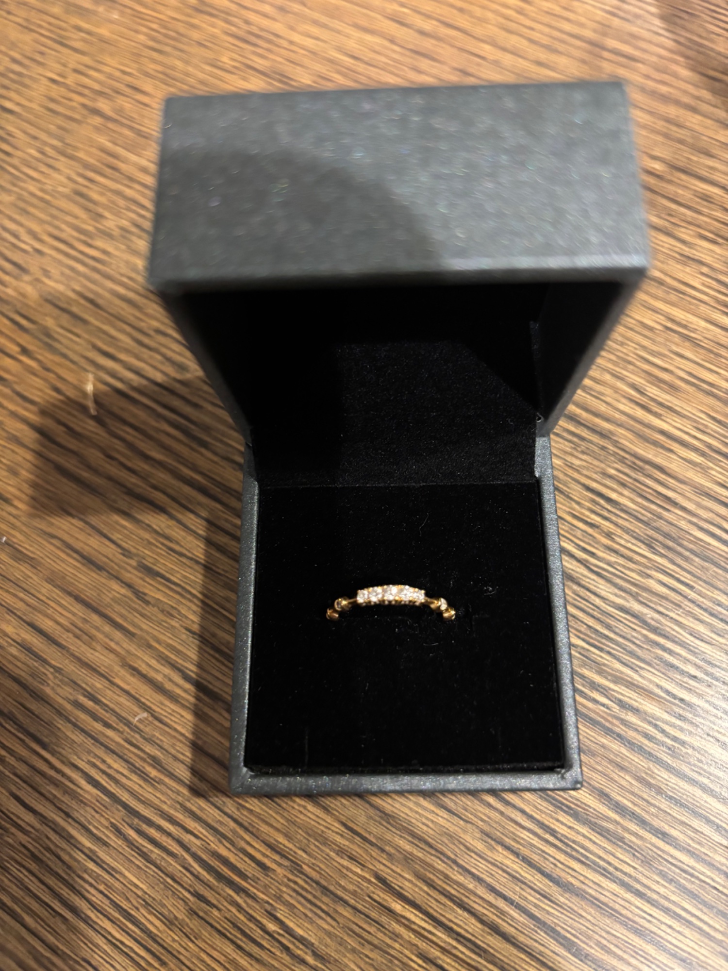 イエローゴールドに小さいダイヤが9粒付いています