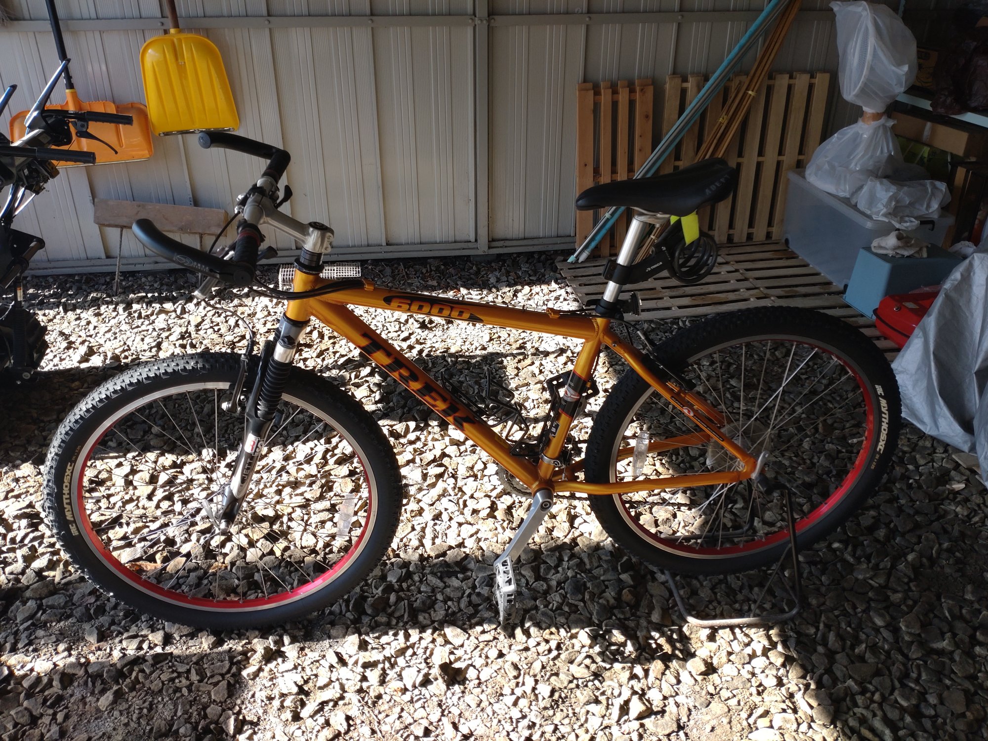 20年ほど前に購入、錆などもなく美品。CATEYE CYCLOCOMPUTER CC-MC200W(取説あり)付き、自転車スタンド2台、空気入れ2台(1台はポータブルタイプ、シマノチェーンカッターTL-CN23付き、
