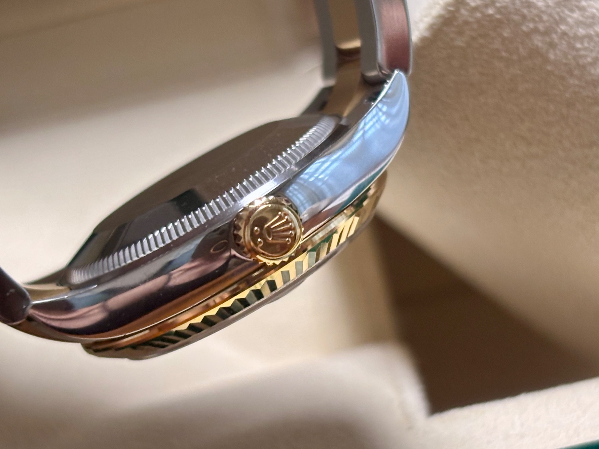 k18YG×SS コンビ。文字盤にダイヤモンド入り。