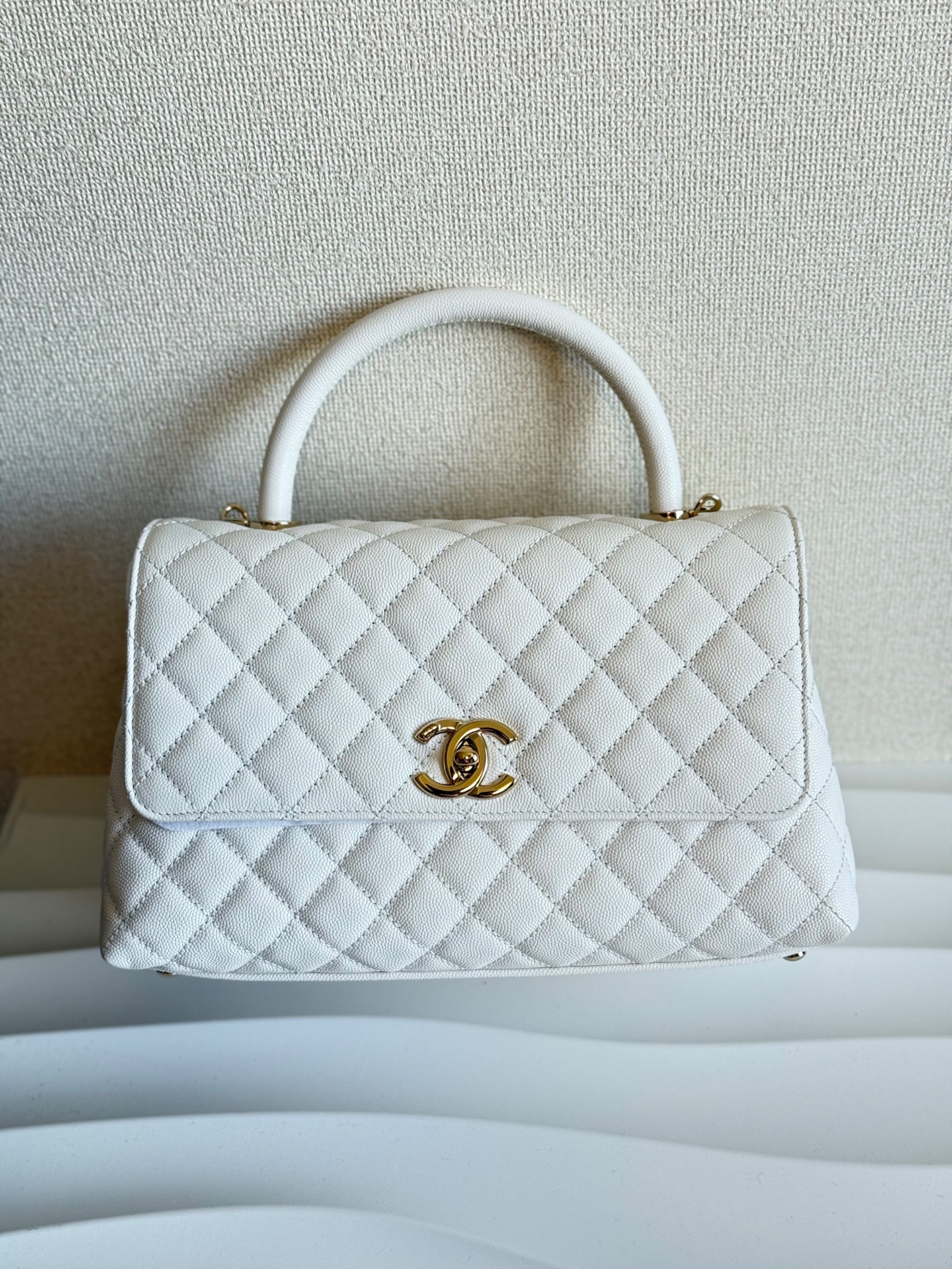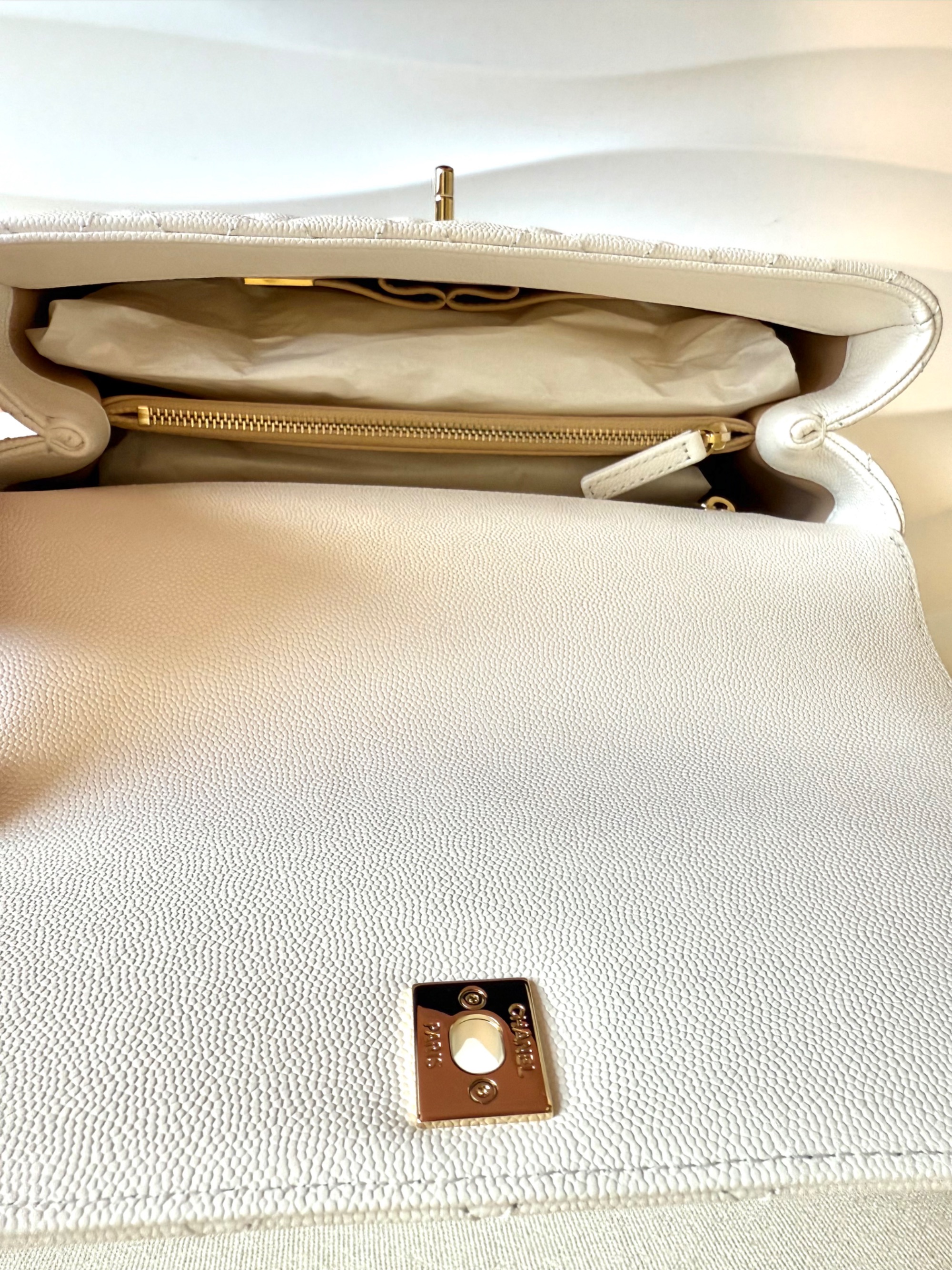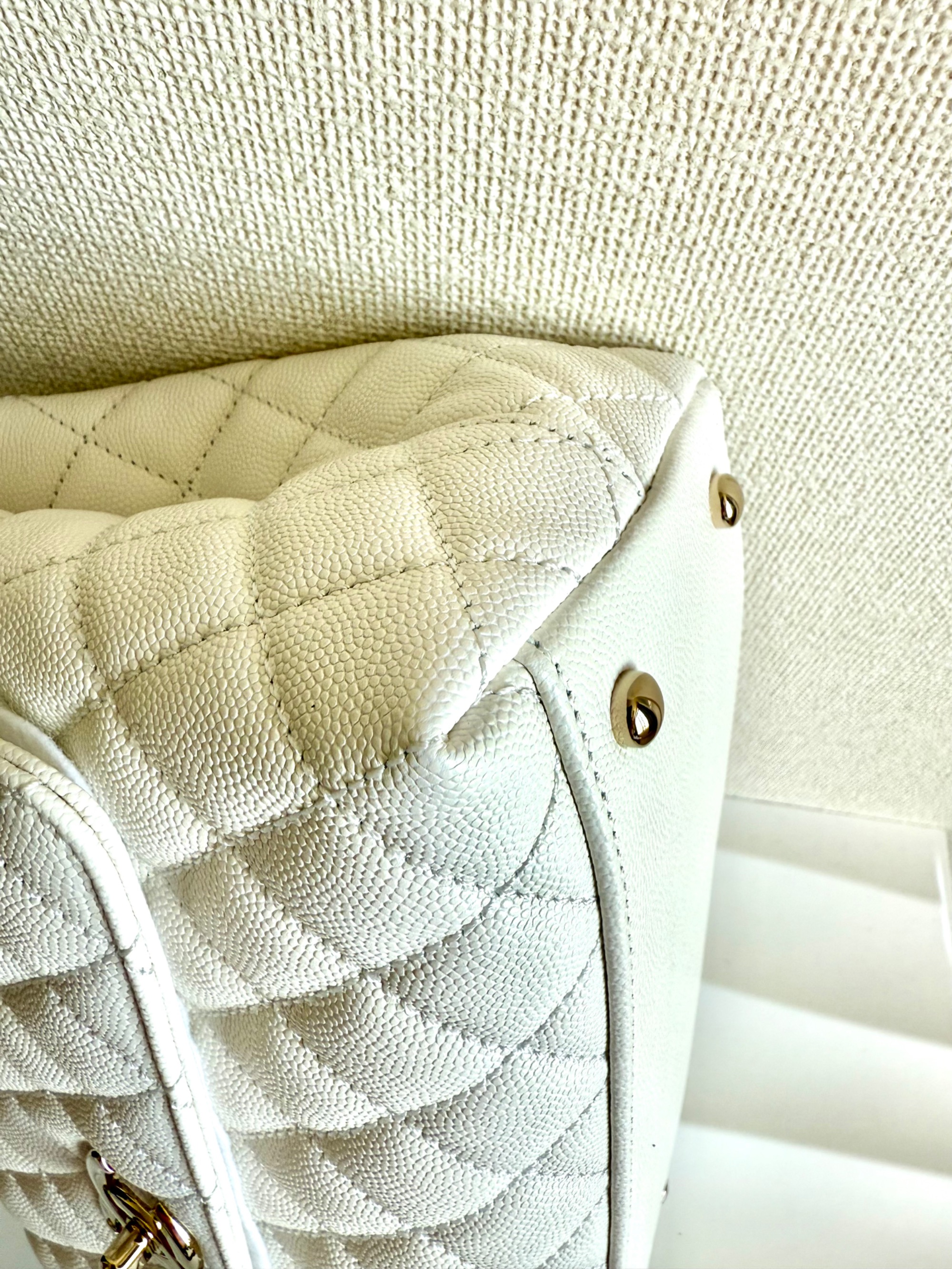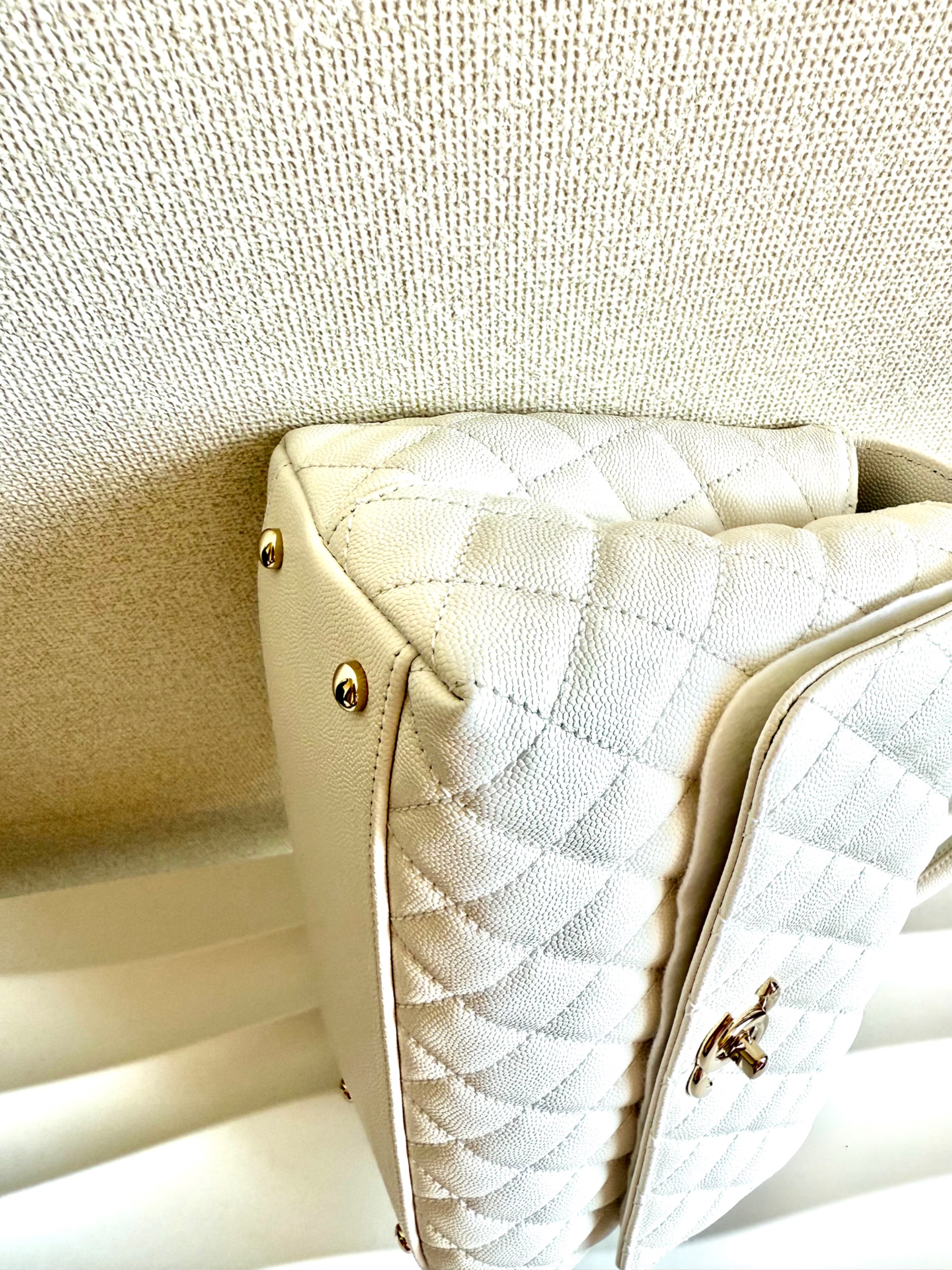 ① シャネル ココハンドル29 S キャビアスキン 2WAYハンドバッグ ホワイト ゴールド金具 ランダムプレート