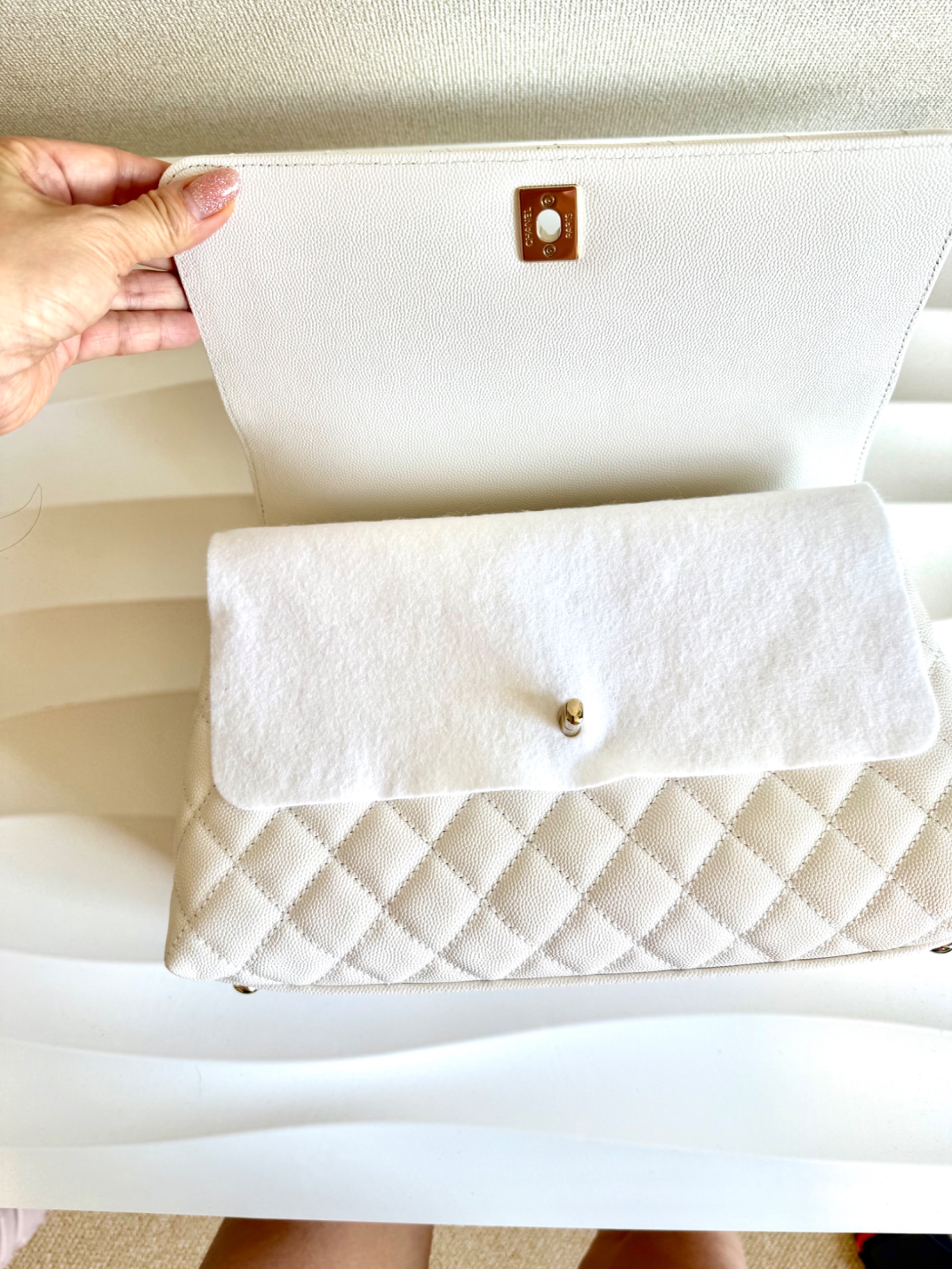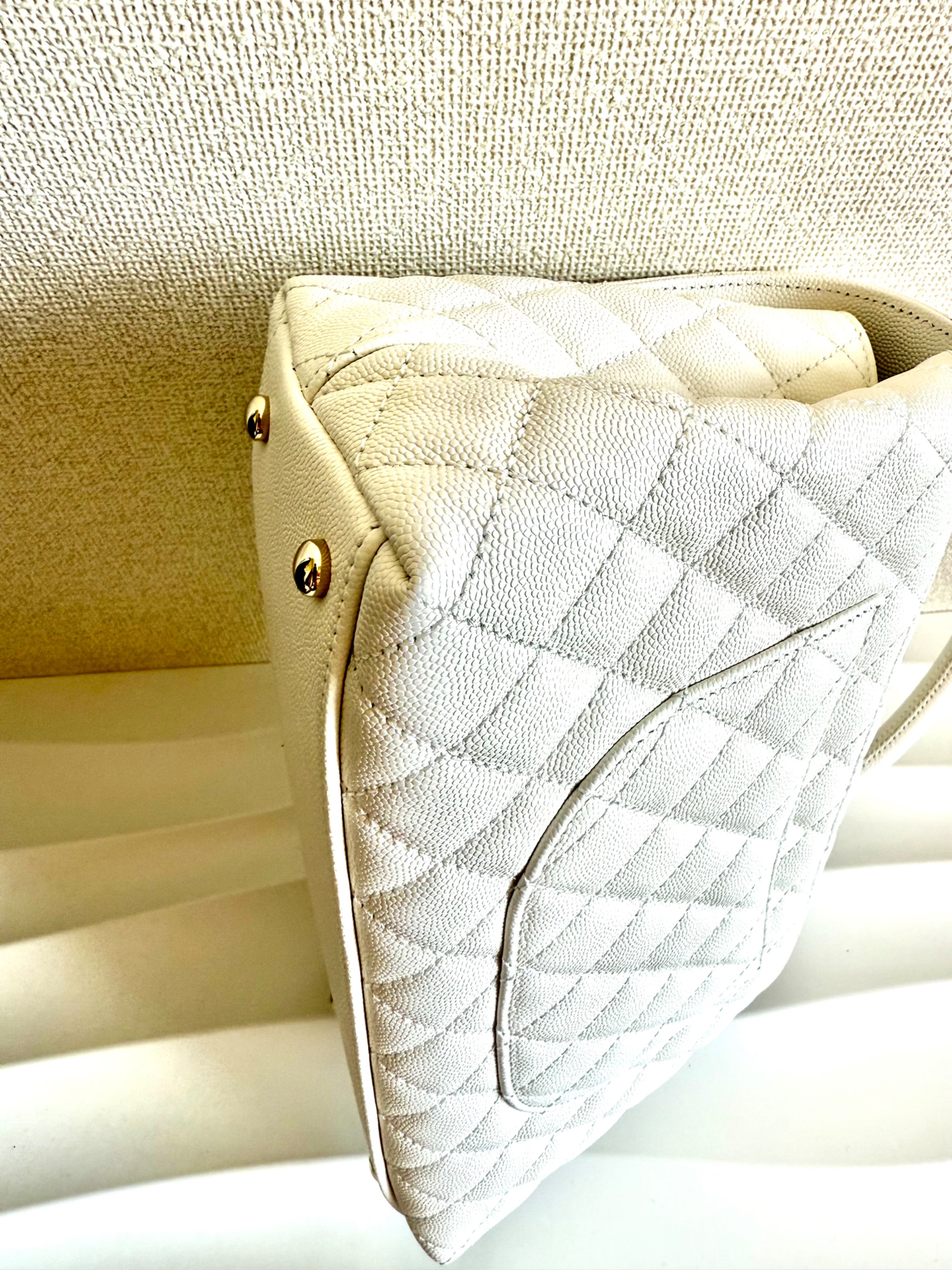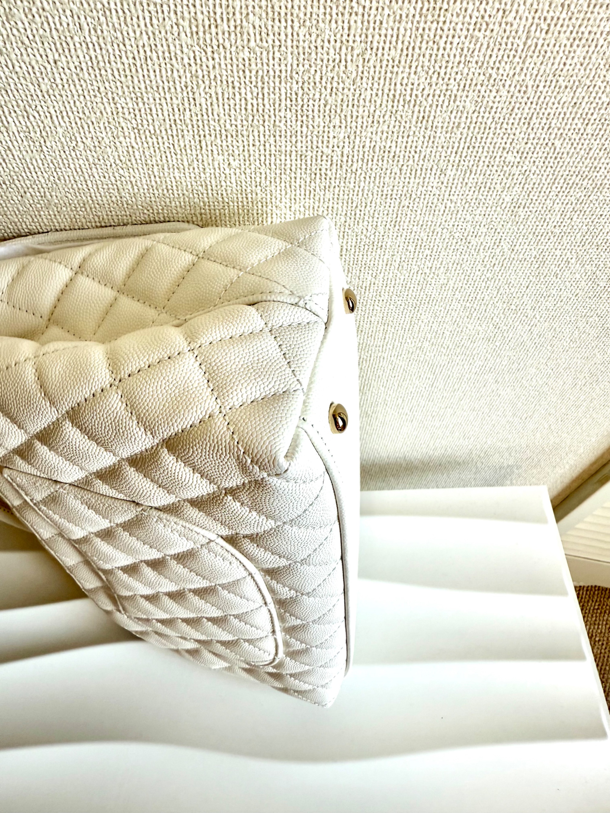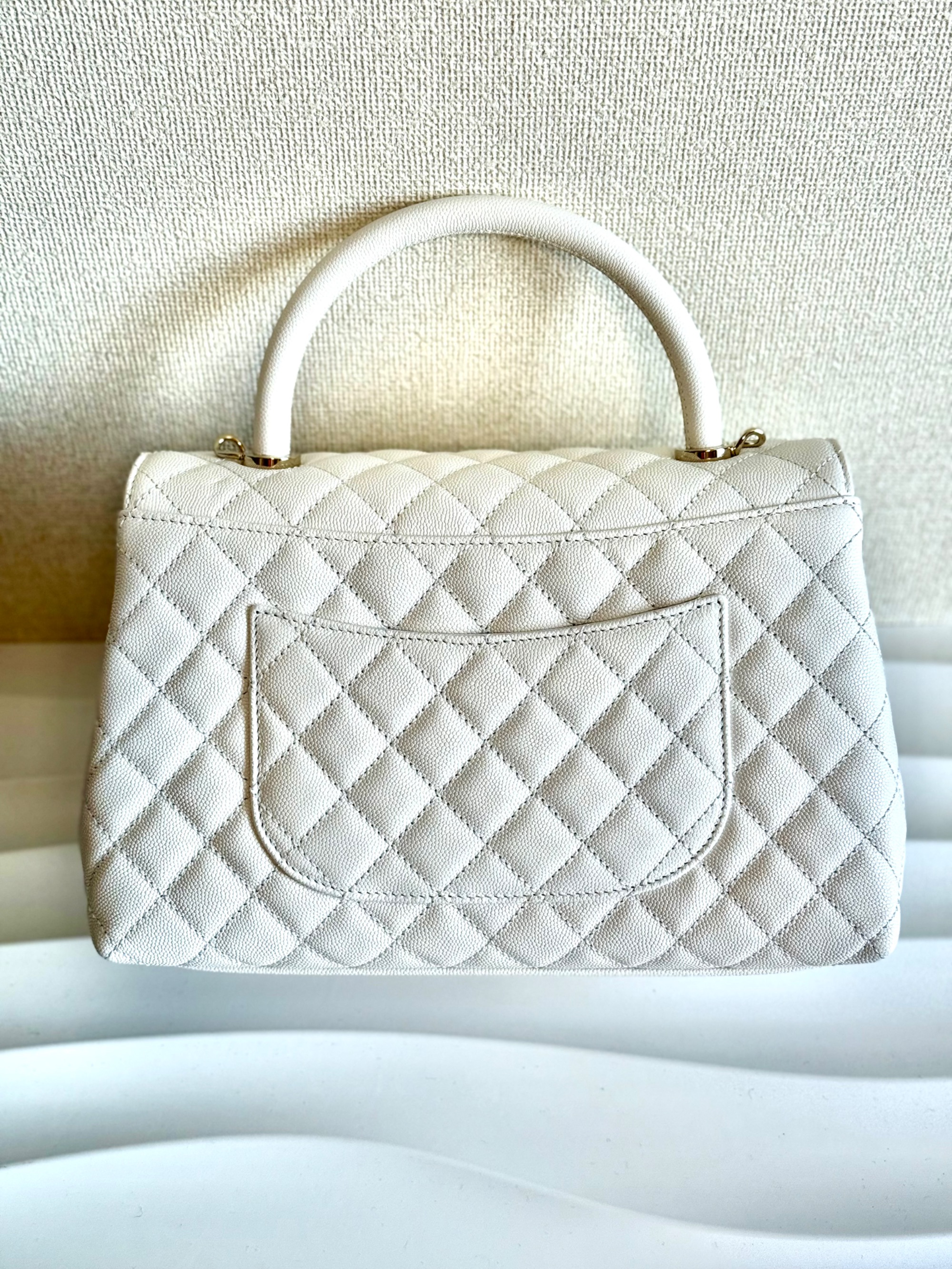 ① シャネル ココハンドル29 S キャビアスキン 2WAYハンドバッグ ホワイト ゴールド金具 ランダムプレート