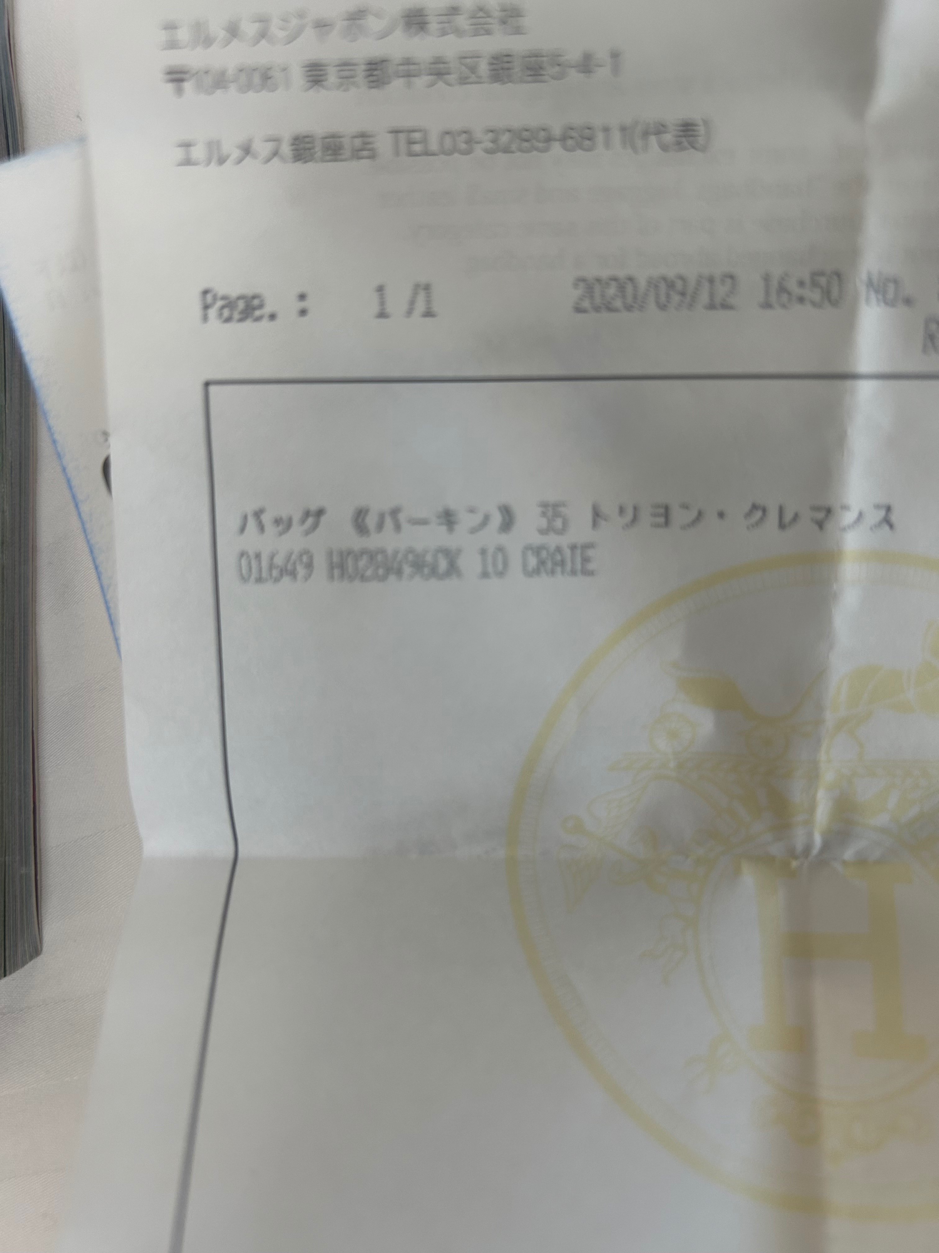 エルメス バーキン35 トリヨンクレマンス クレ Y刻 シルバー金具 付属品完品 シール付 未使用