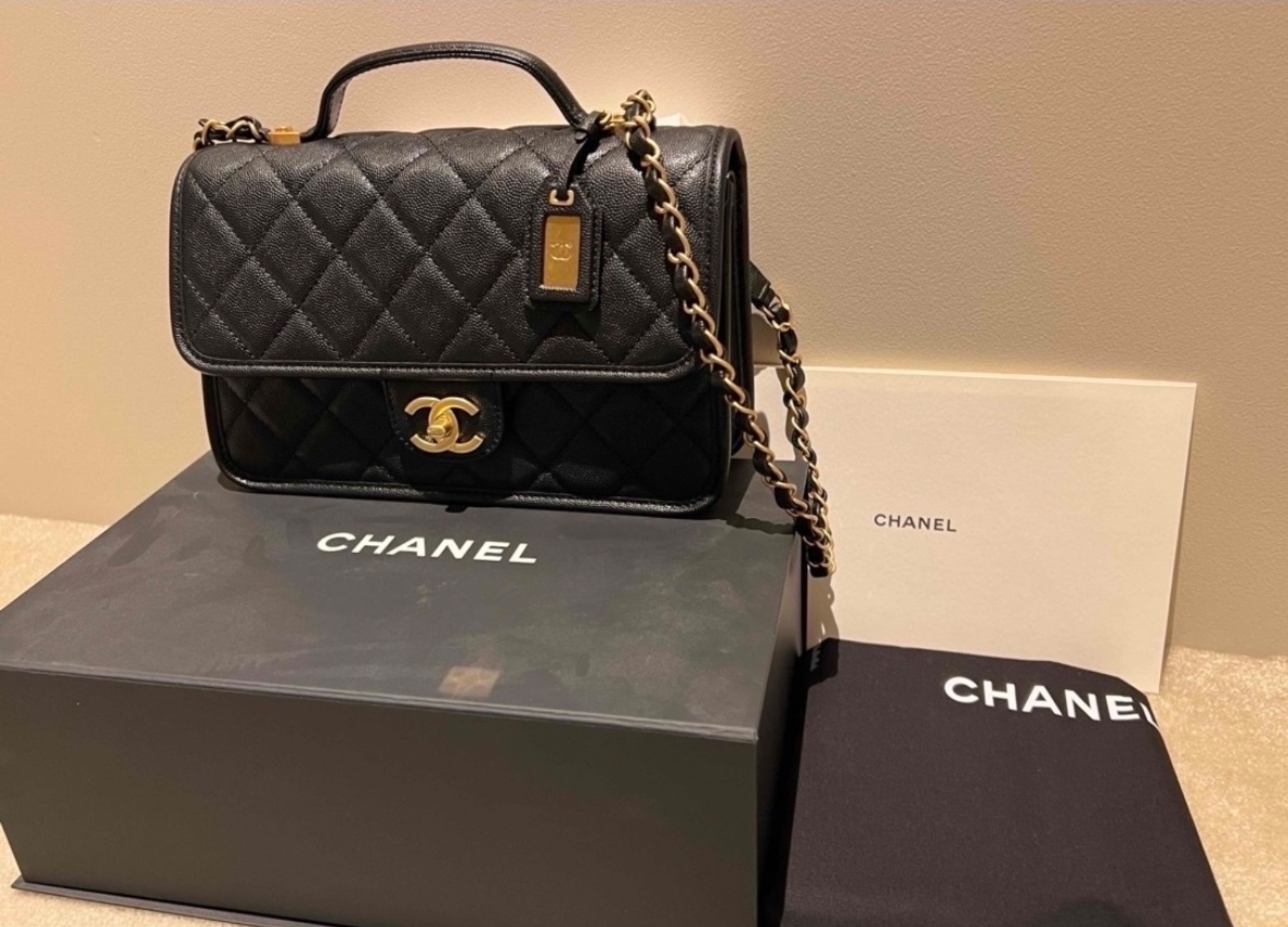 シャネルフラップバックウィズハンド22k (付属品全てあり)