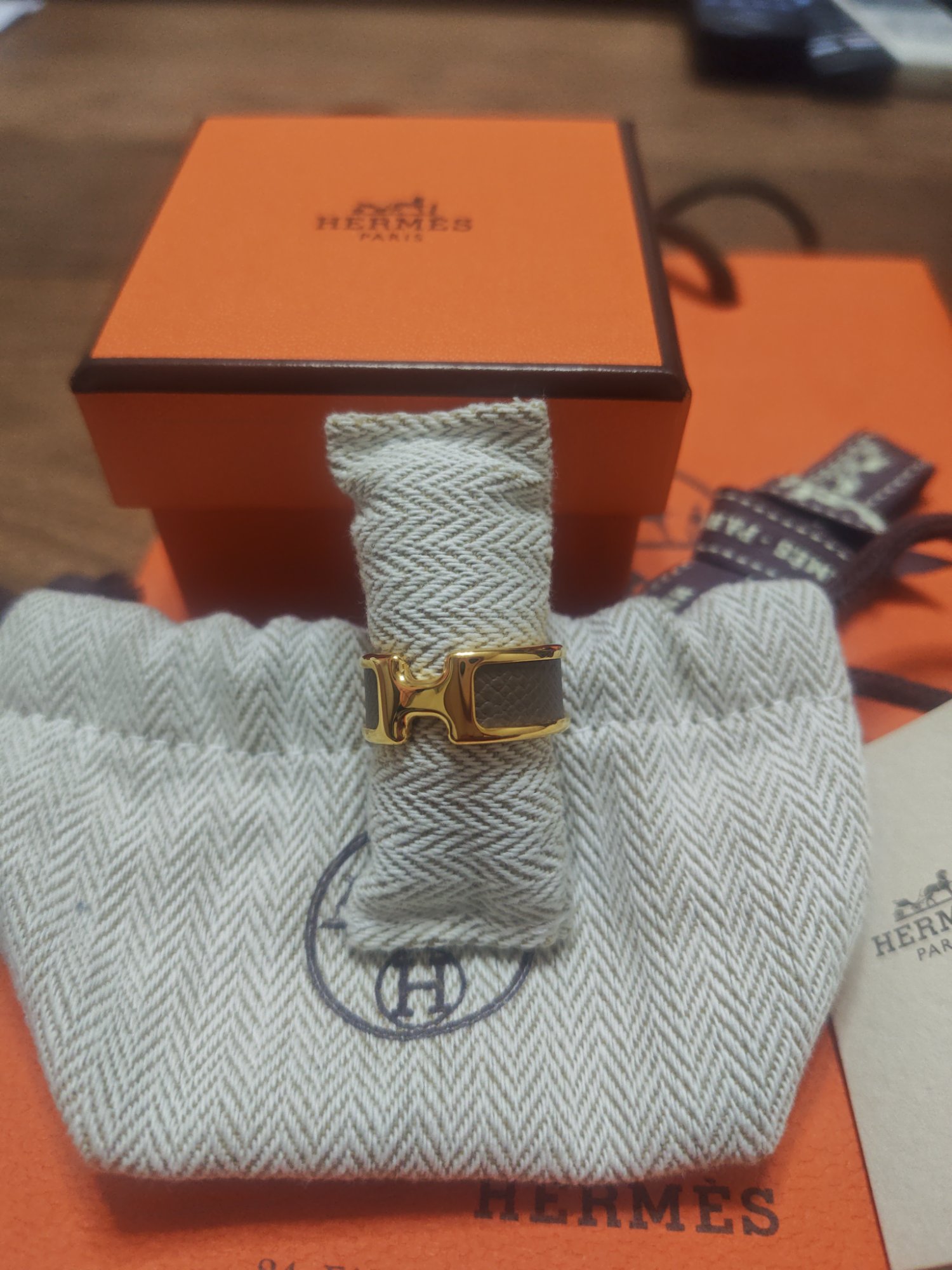HERMES オランプPM ヴォーマダム エトゥープ ゴールド金具 リングSサイズ