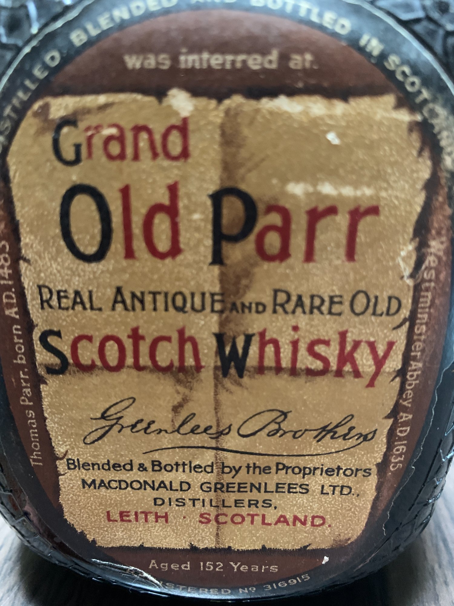 100年前のオールドパー。堀丈夫、226事件の時は第一師団長、が1926年欧州視察に行ったときにパリで購入したもの。未開封。