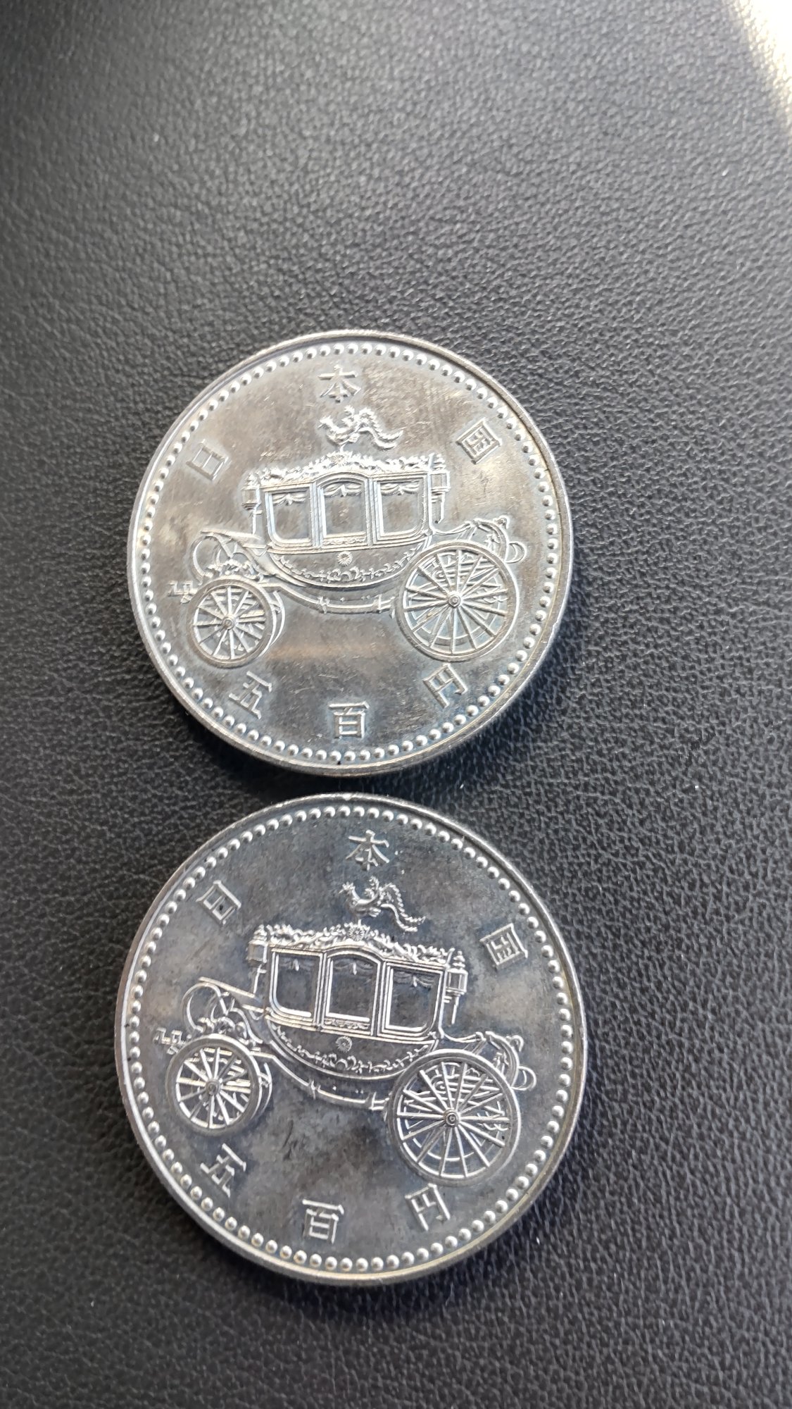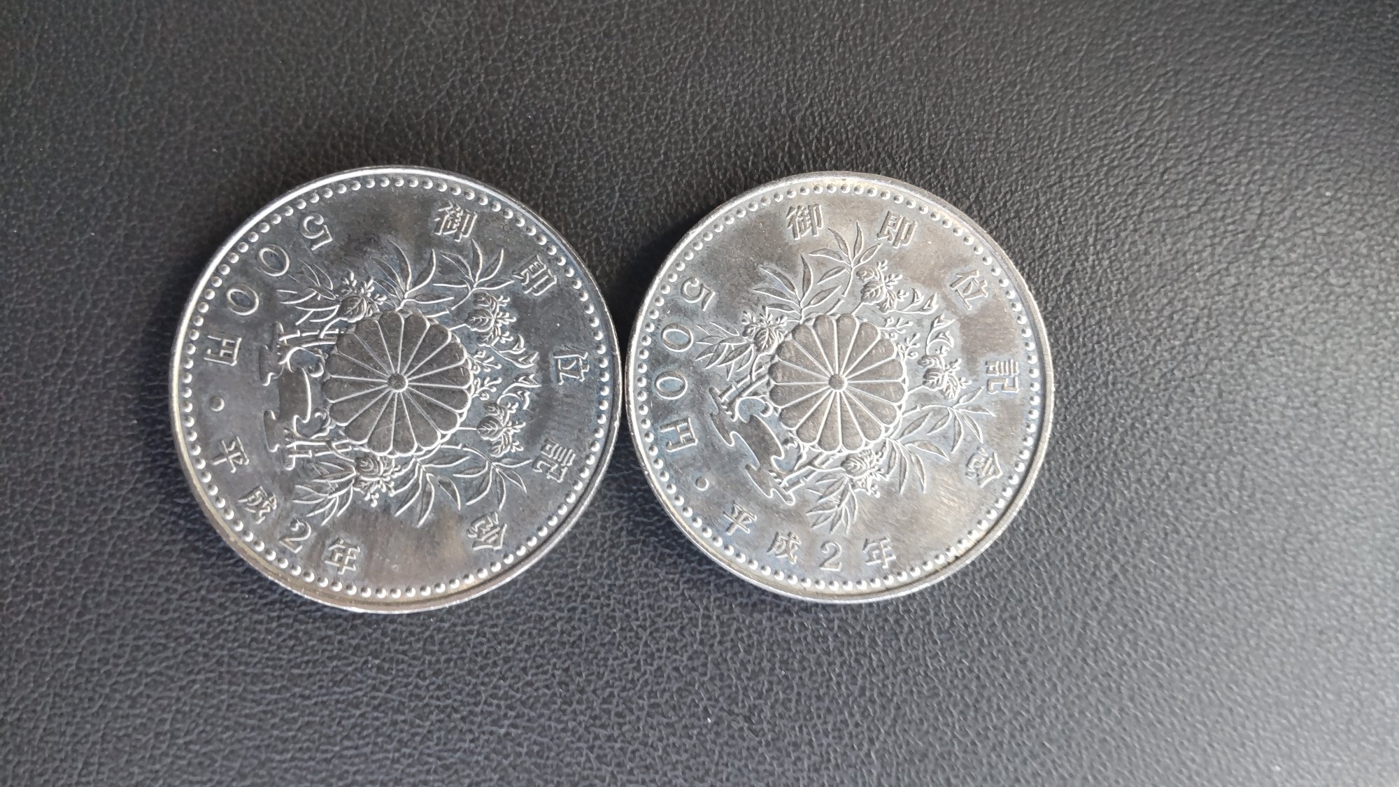 御即位平成2年記念硬貨500円4枚と昭和50年オリンピックピック100円記念硬貨