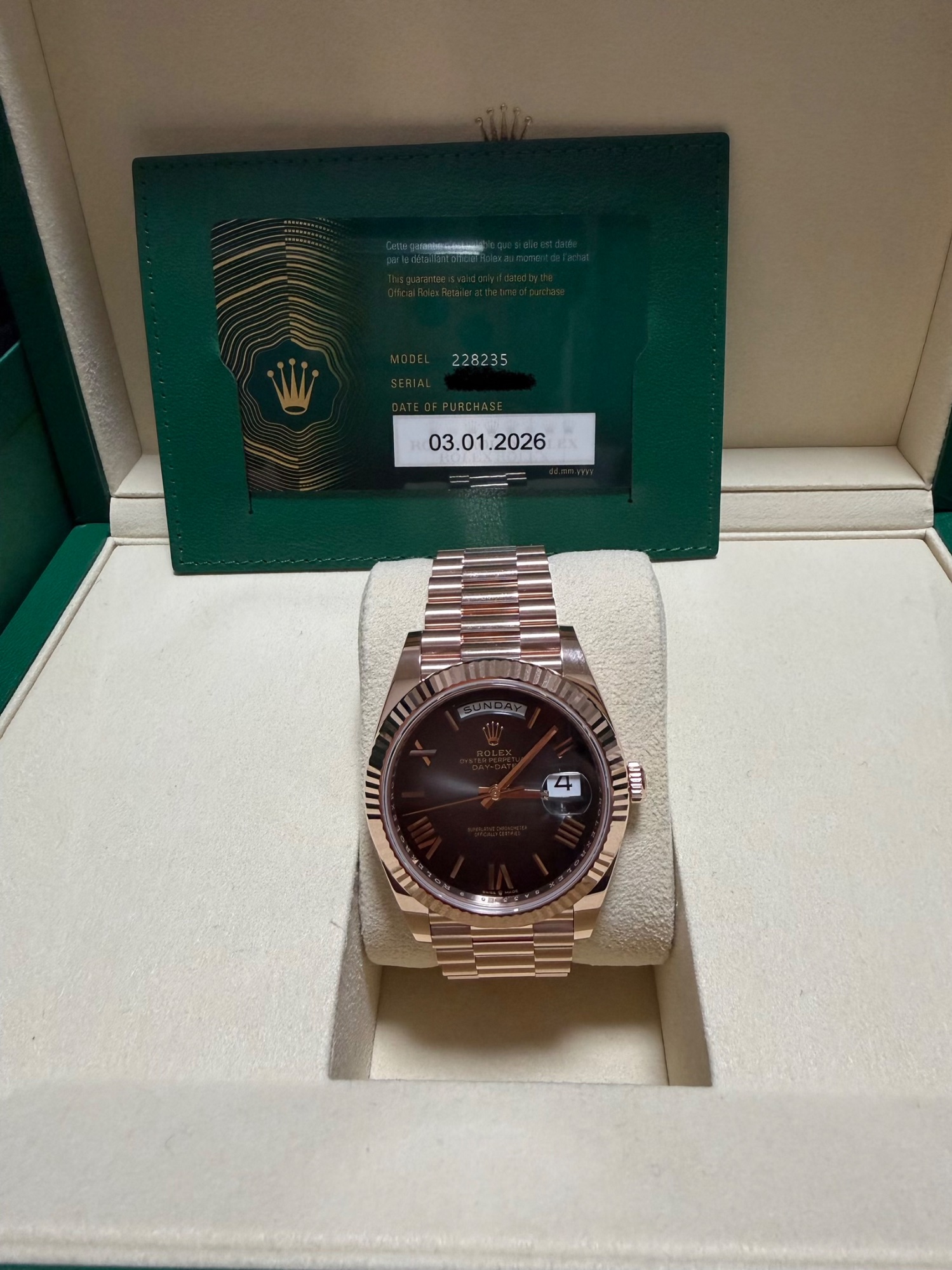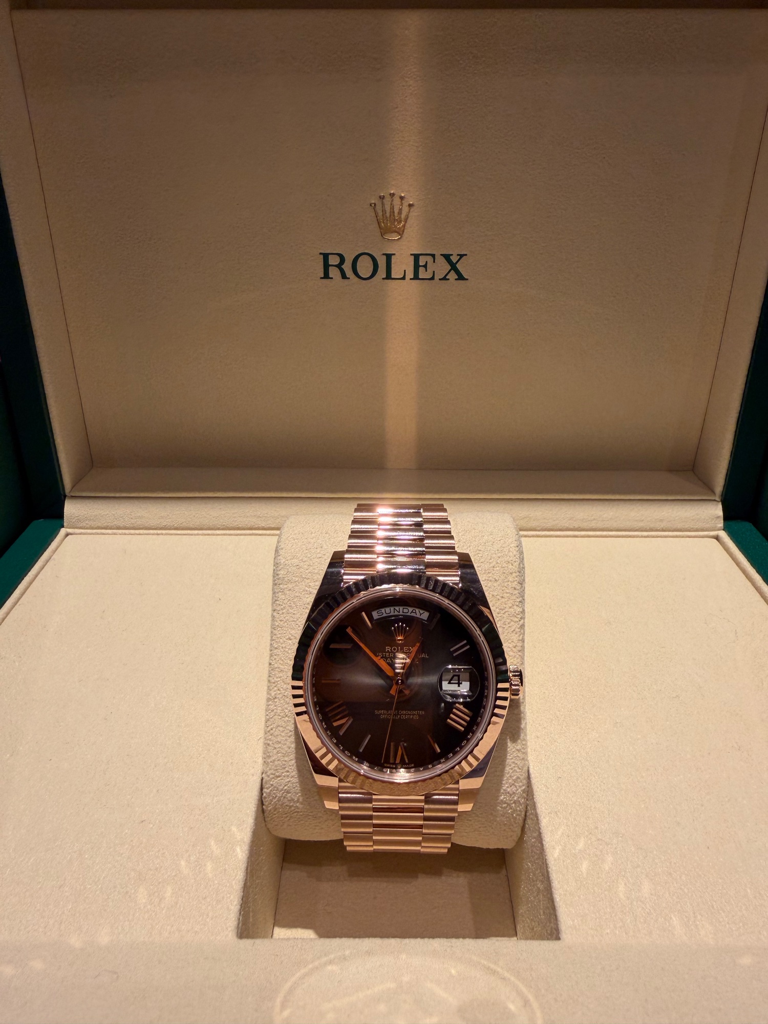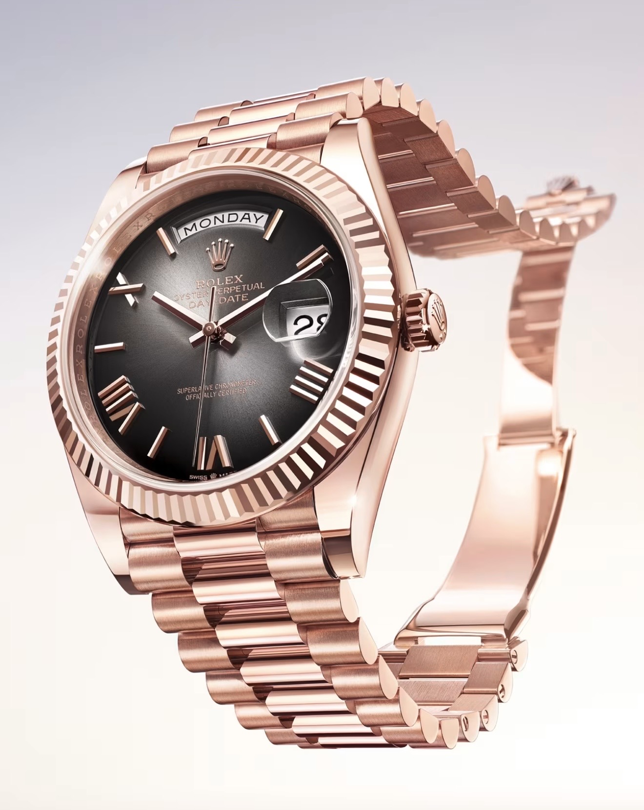 デイデイト40、エバーローズゴールド2024新作文字盤スレートオンブレになります。
