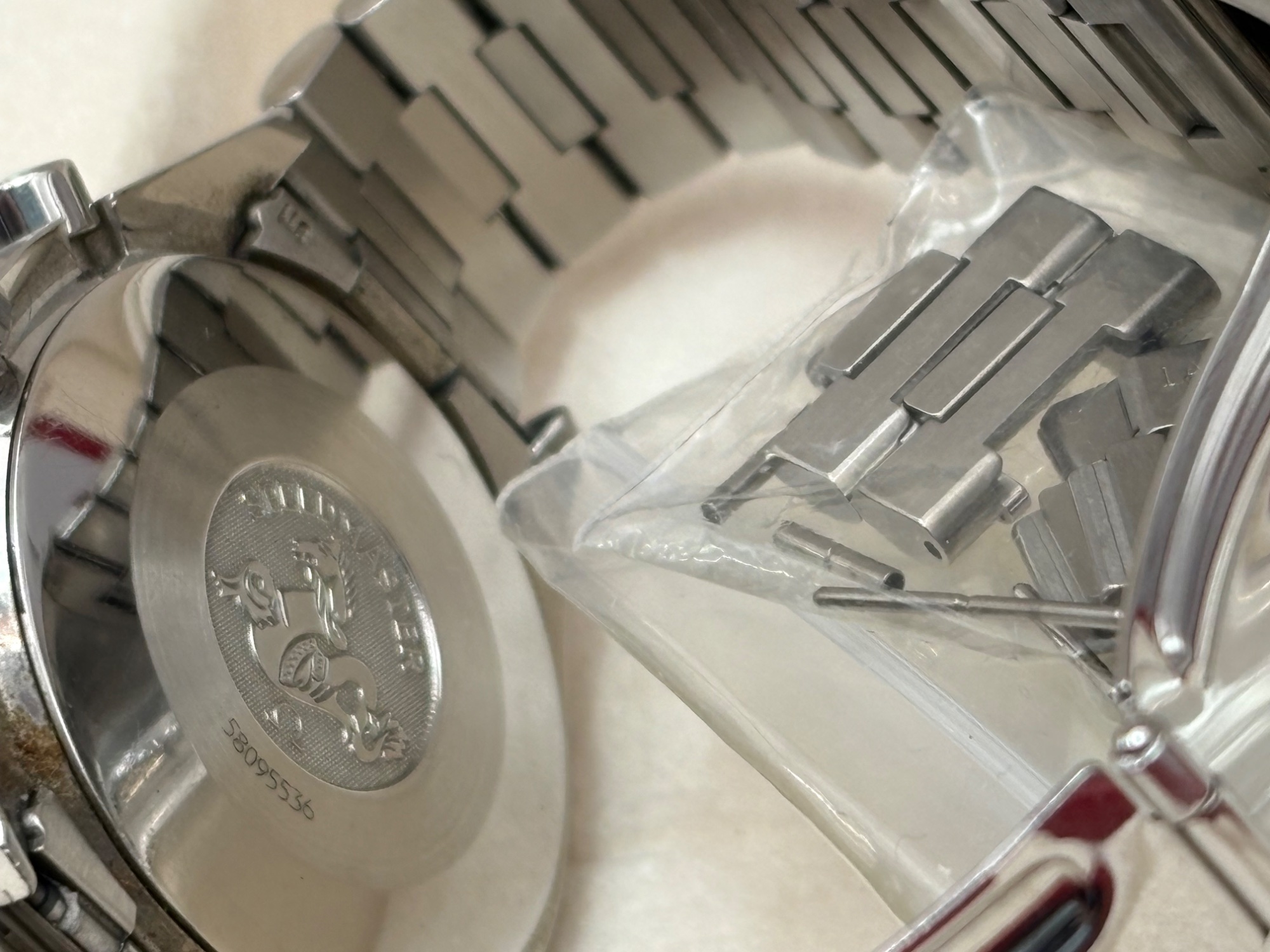 外箱、内箱、ギャランティカード、余りコマ、正規オーバーホール納品書あり