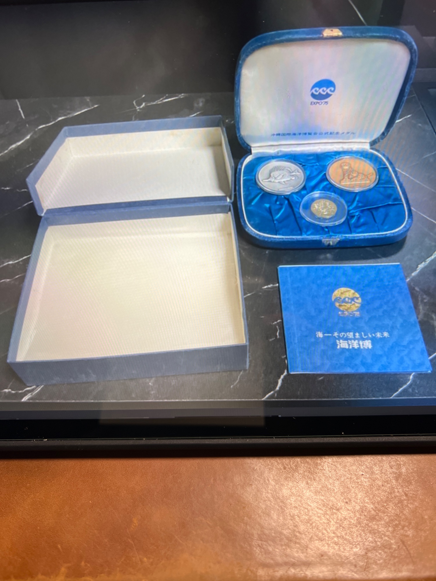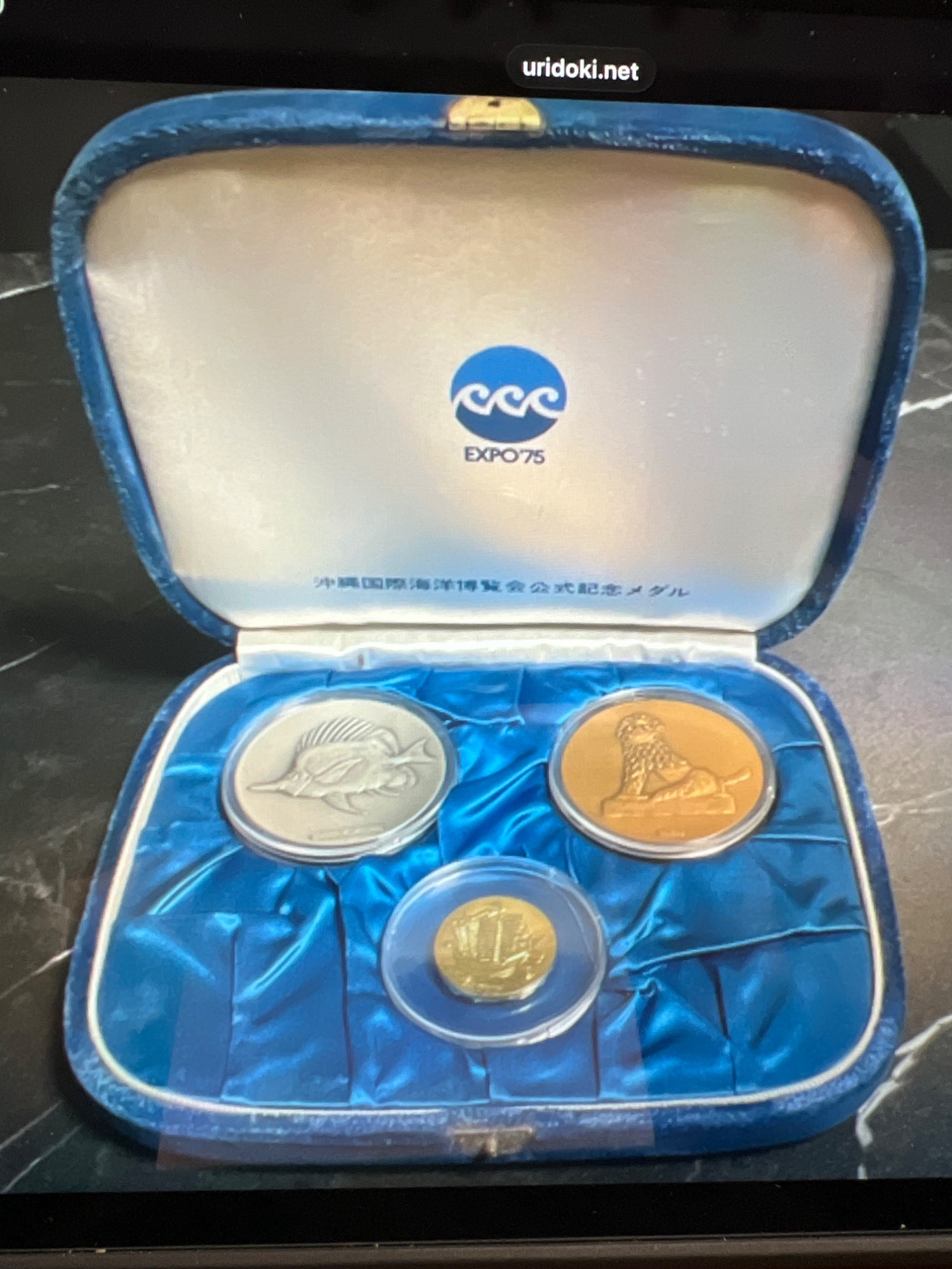 沖縄国際海洋博覧会記念メダル。金、銀、銅のメダルセット。