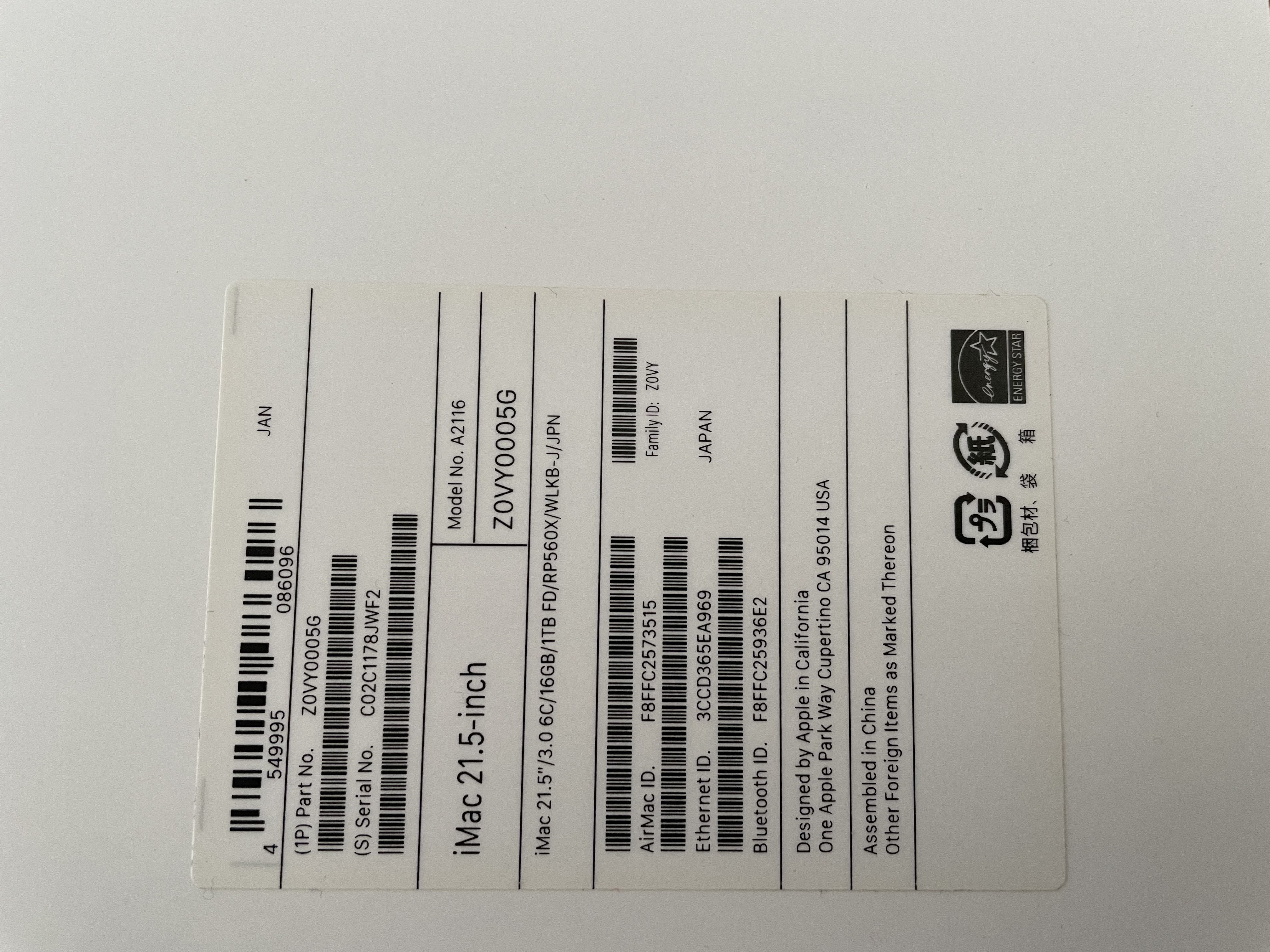 iMac 21.5インチ Retina 4Kディスプレイモデル[2019年