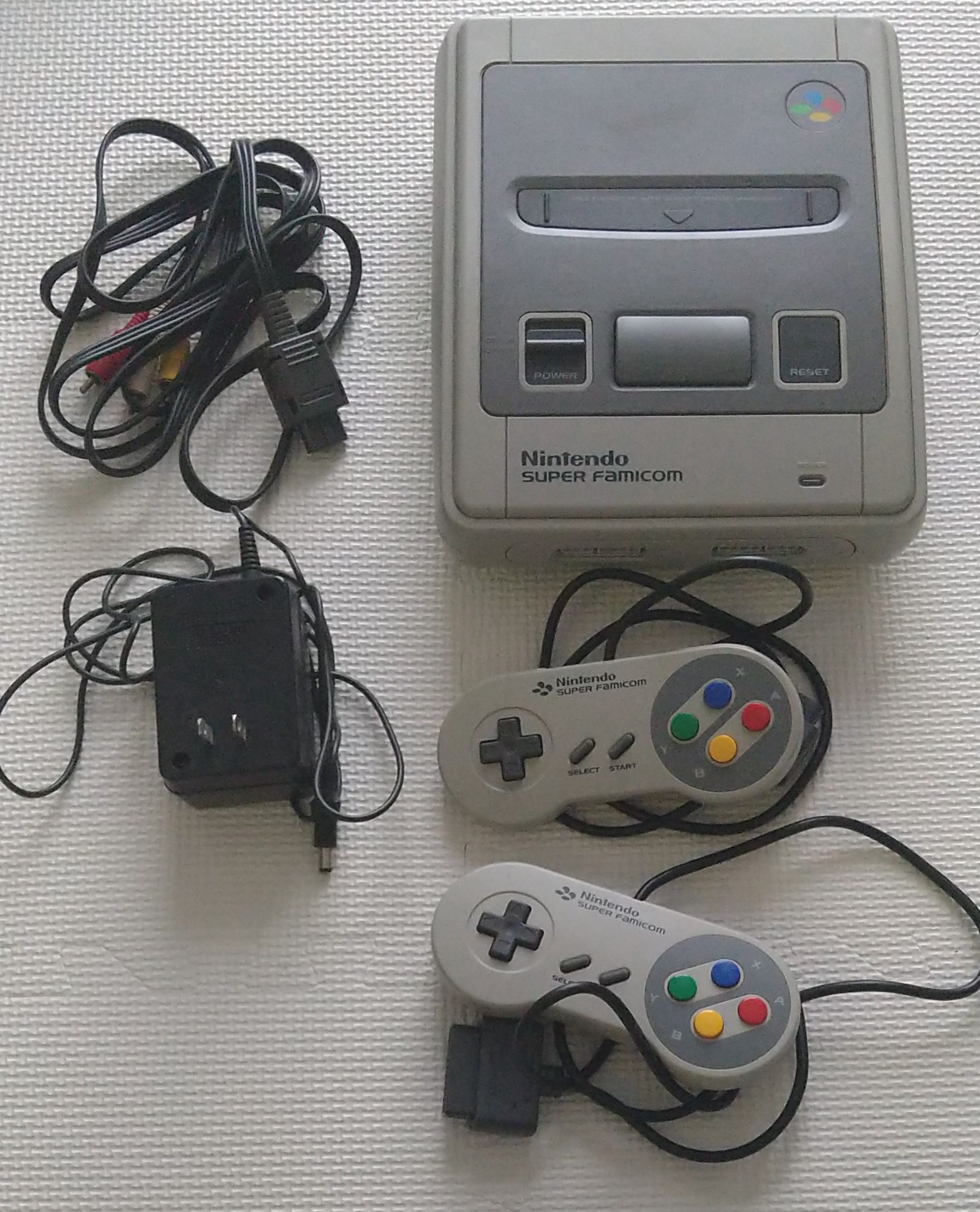 ・ファミコン本体、ACアダプター、3色配線、コントローラー2つ