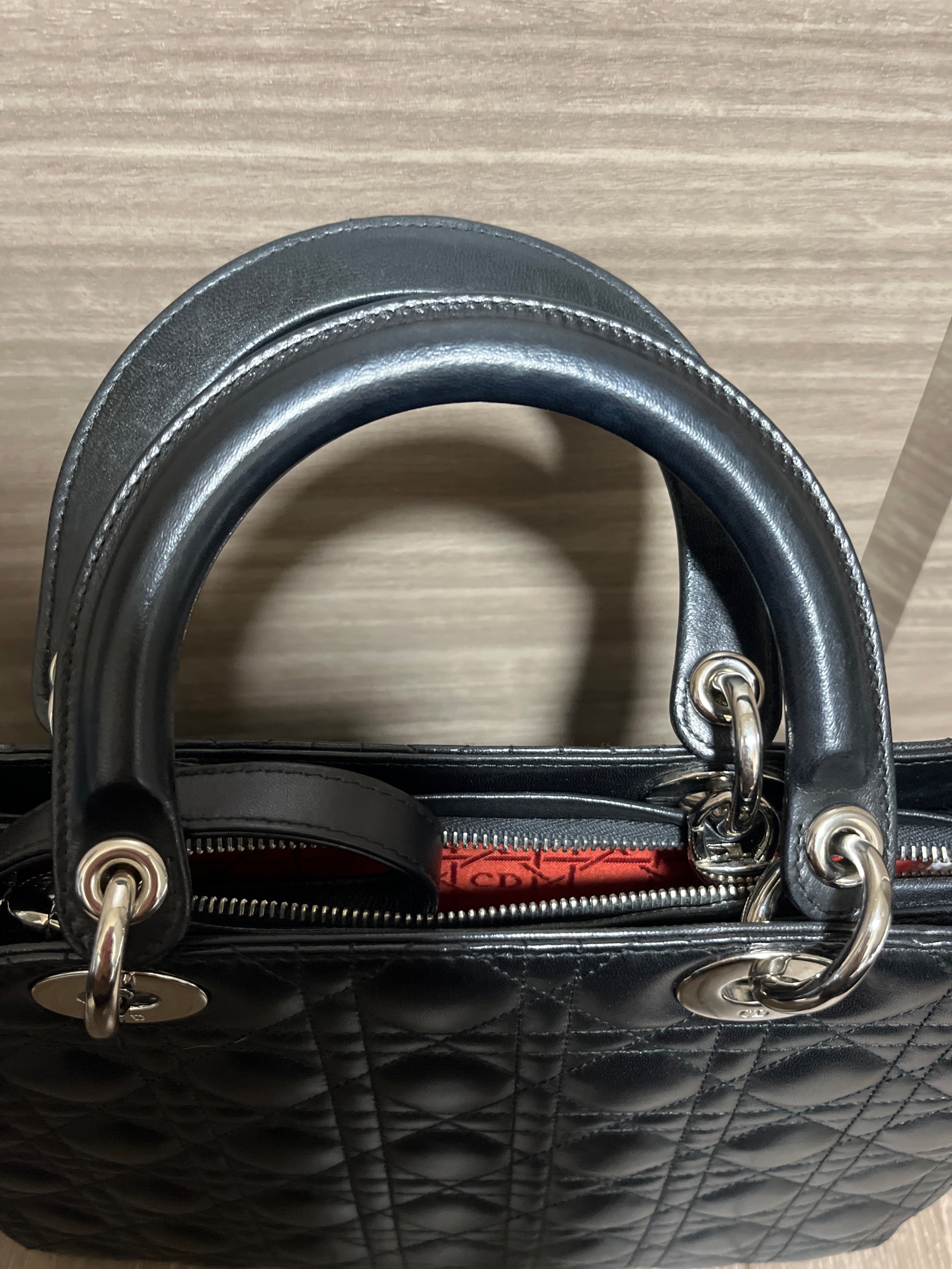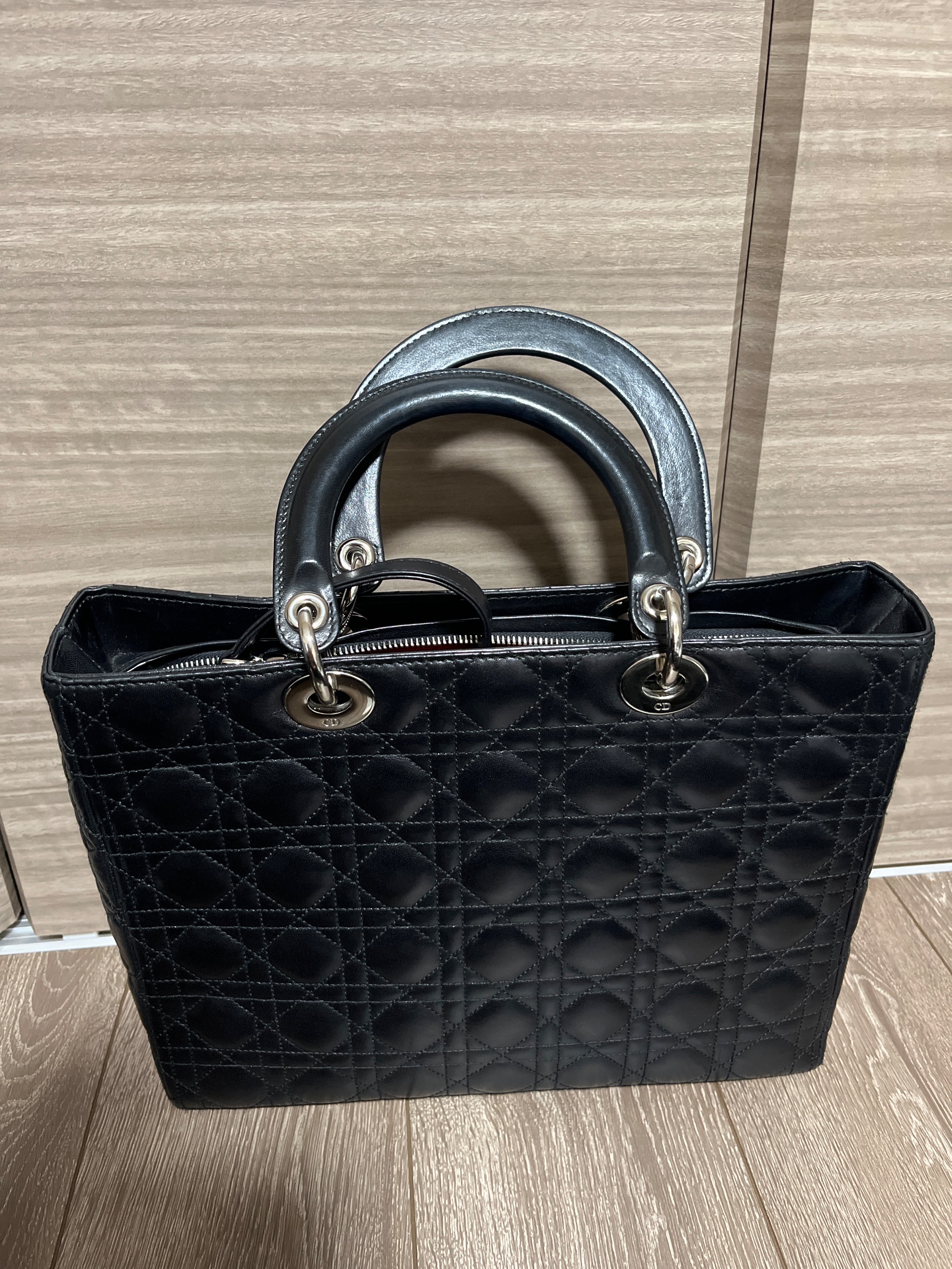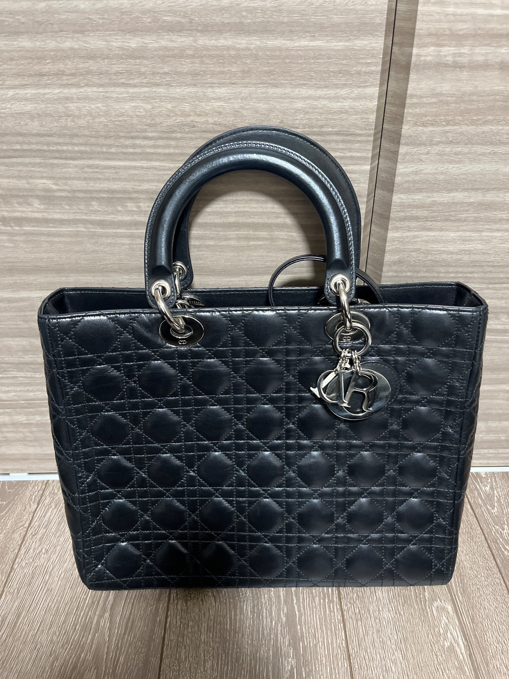 Christian Dior レディディオール ラージ 2way ハンド ショルダー バッグ レザー ブラック CAL44561 2006年 高島屋正規店での購入カードあり 数回の使用 取手や底面に僅かスレあり
