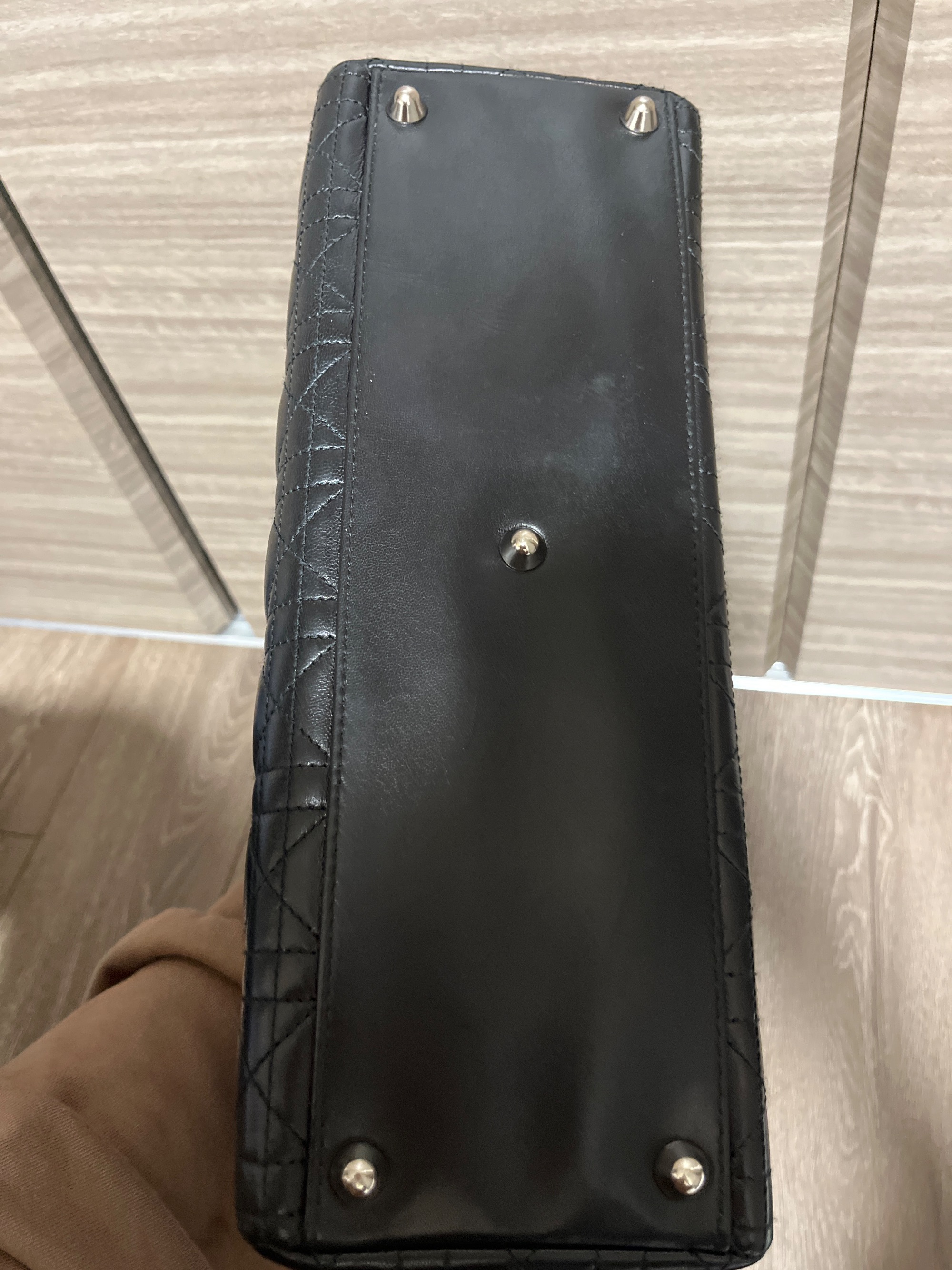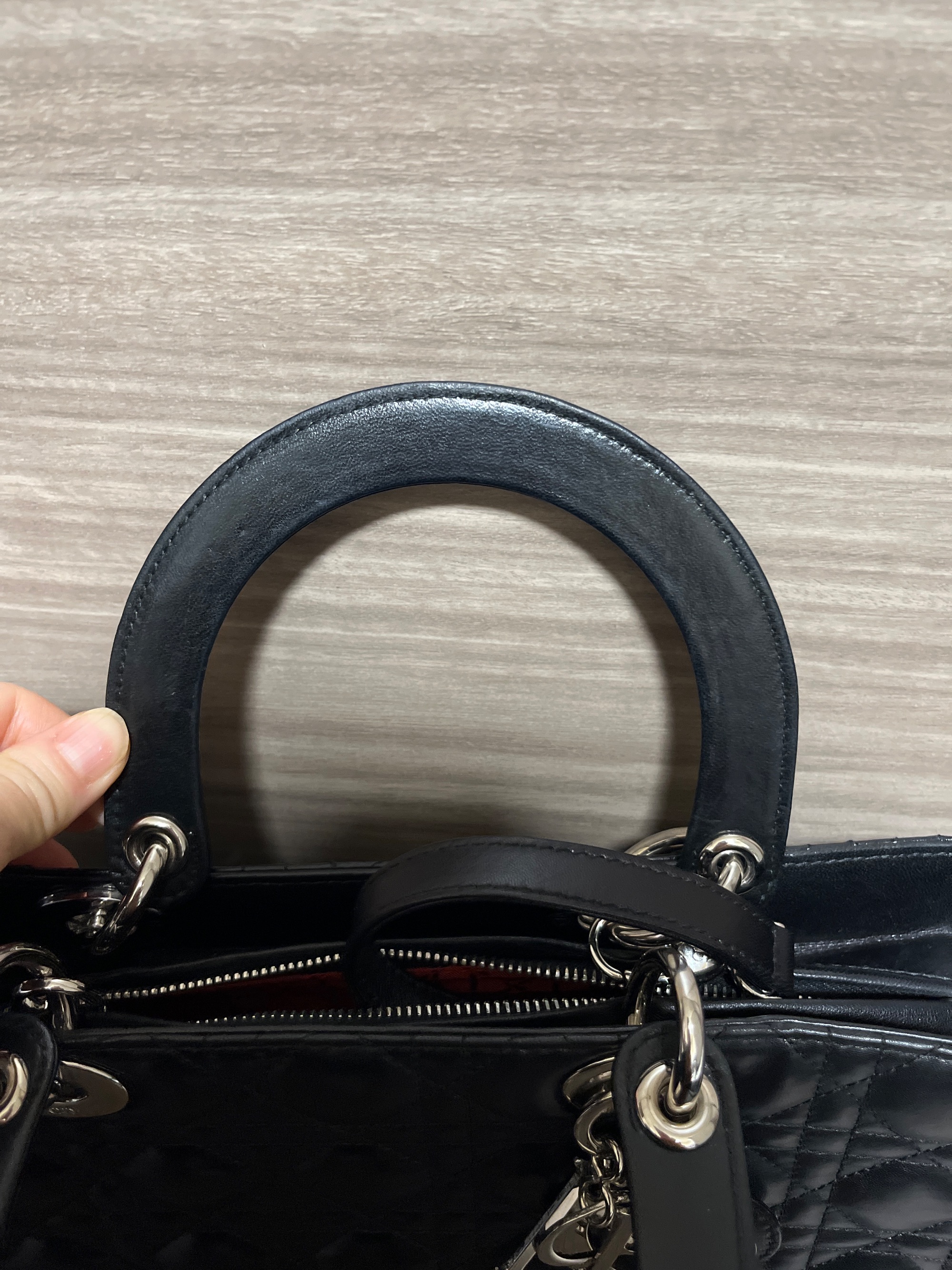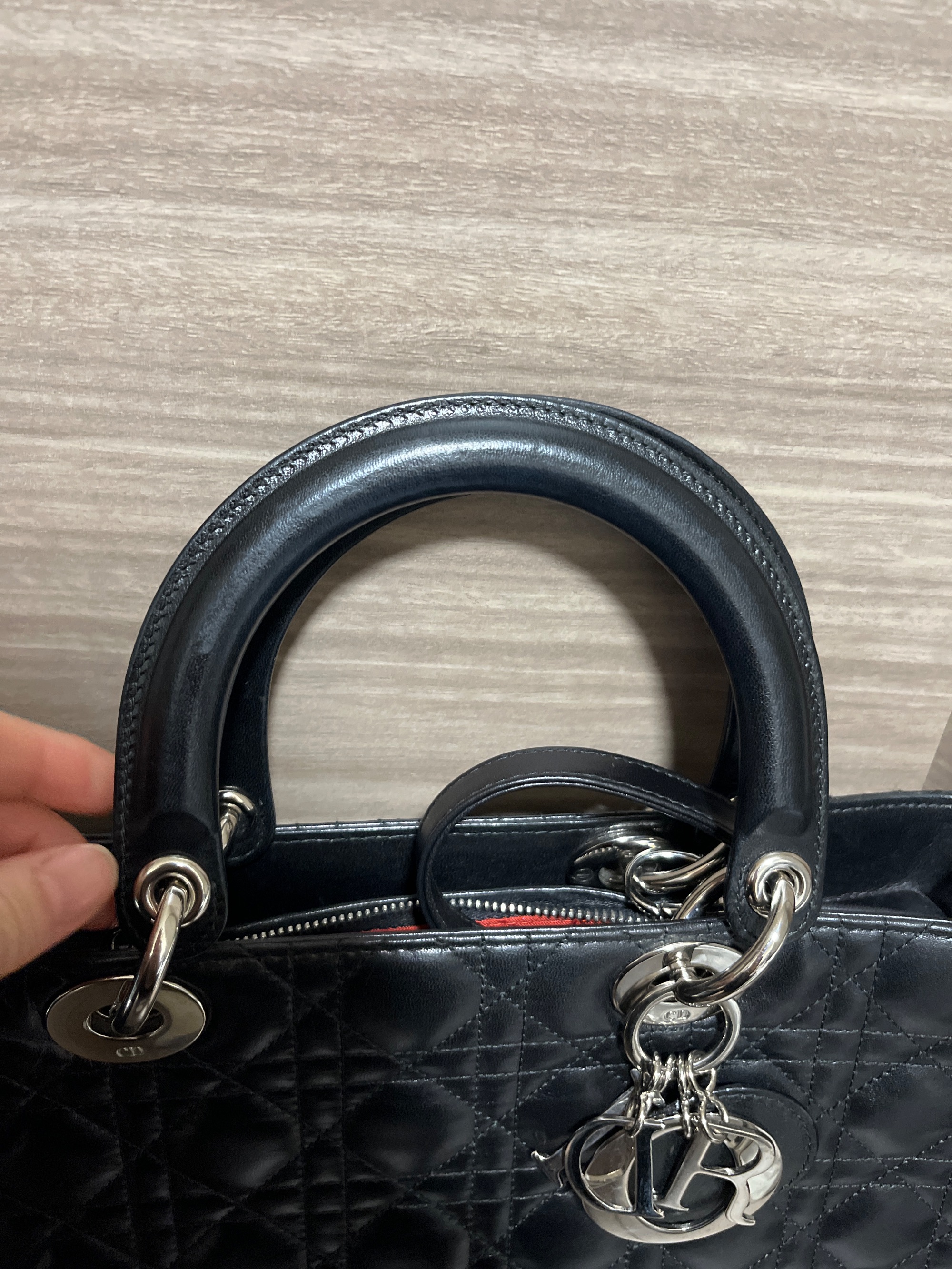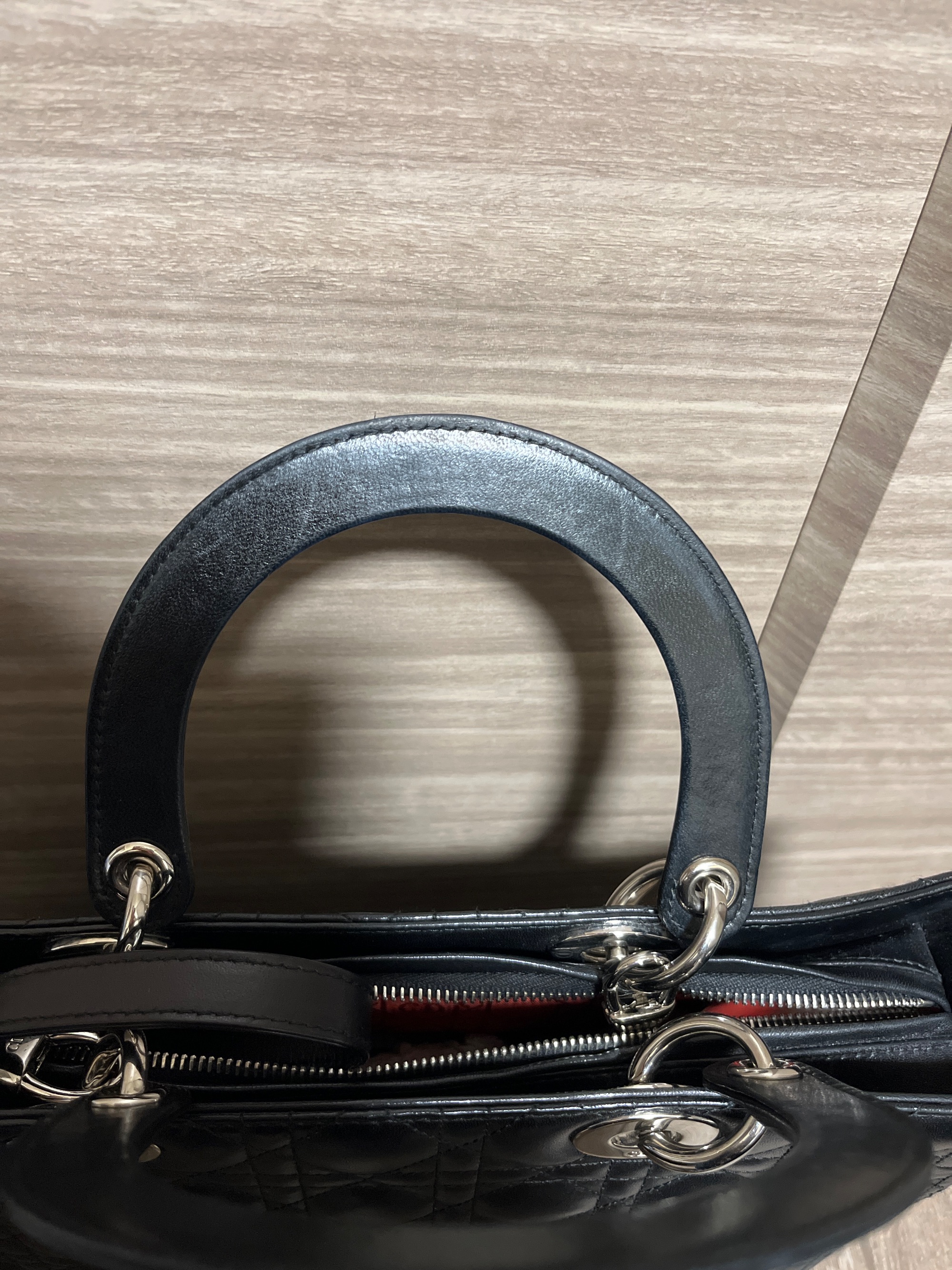 Christian Dior レディディオール ラージ 2way ハンド ショルダー バッグ レザー ブラック CAL44561 2006年 高島屋正規店での購入カードあり 数回の使用 取手や底面に僅かスレあり