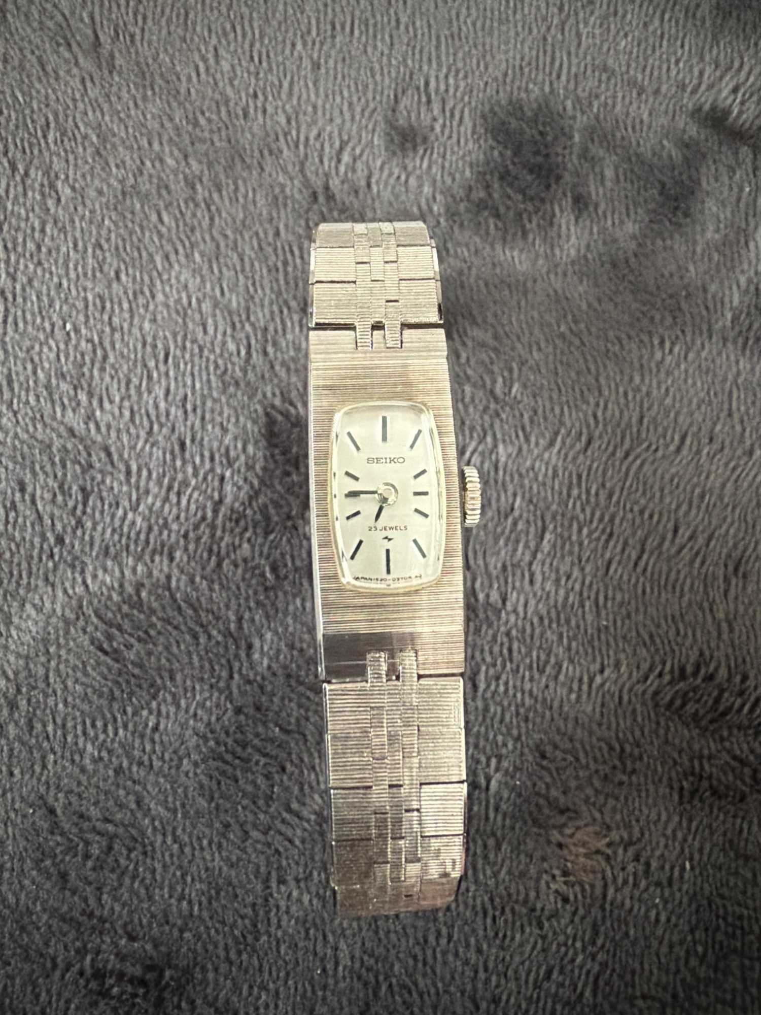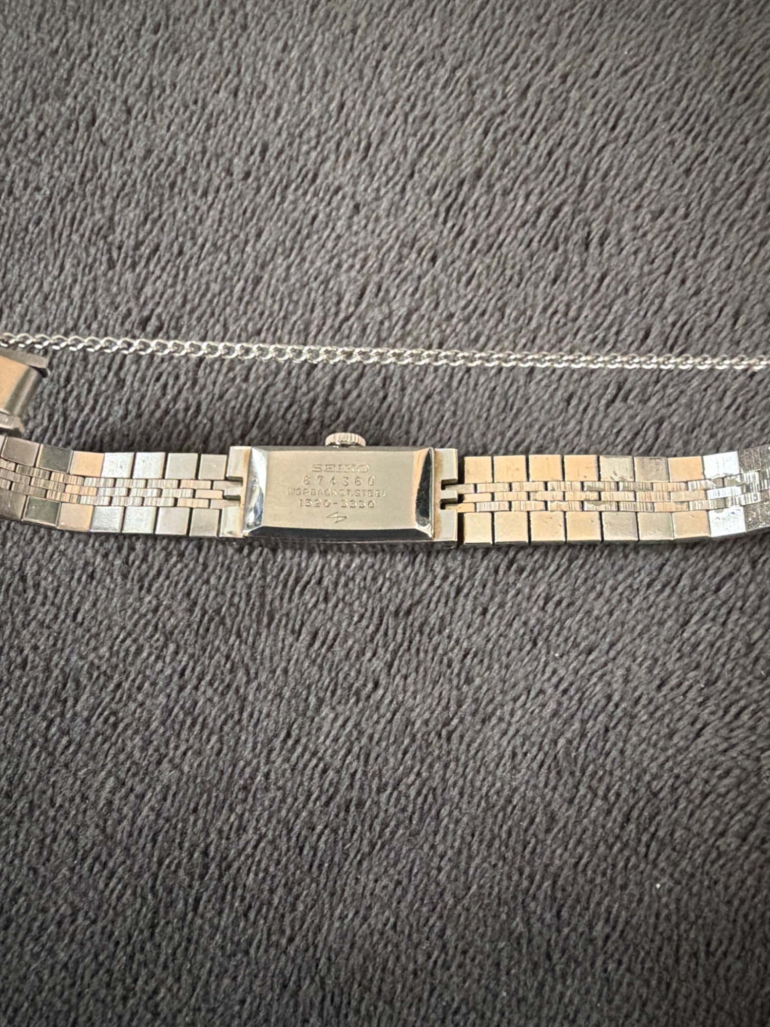 箱はありますが中の商品名が書いてある部分は黄ばんでいます。母が若い頃使用していたもののようで詳しい購入年月や使用回数などは不明です。説明書はありません。時計自体は大きな傷は無いですが、擦れたような感じはあります。付属品は延長ベルトが2列あります。